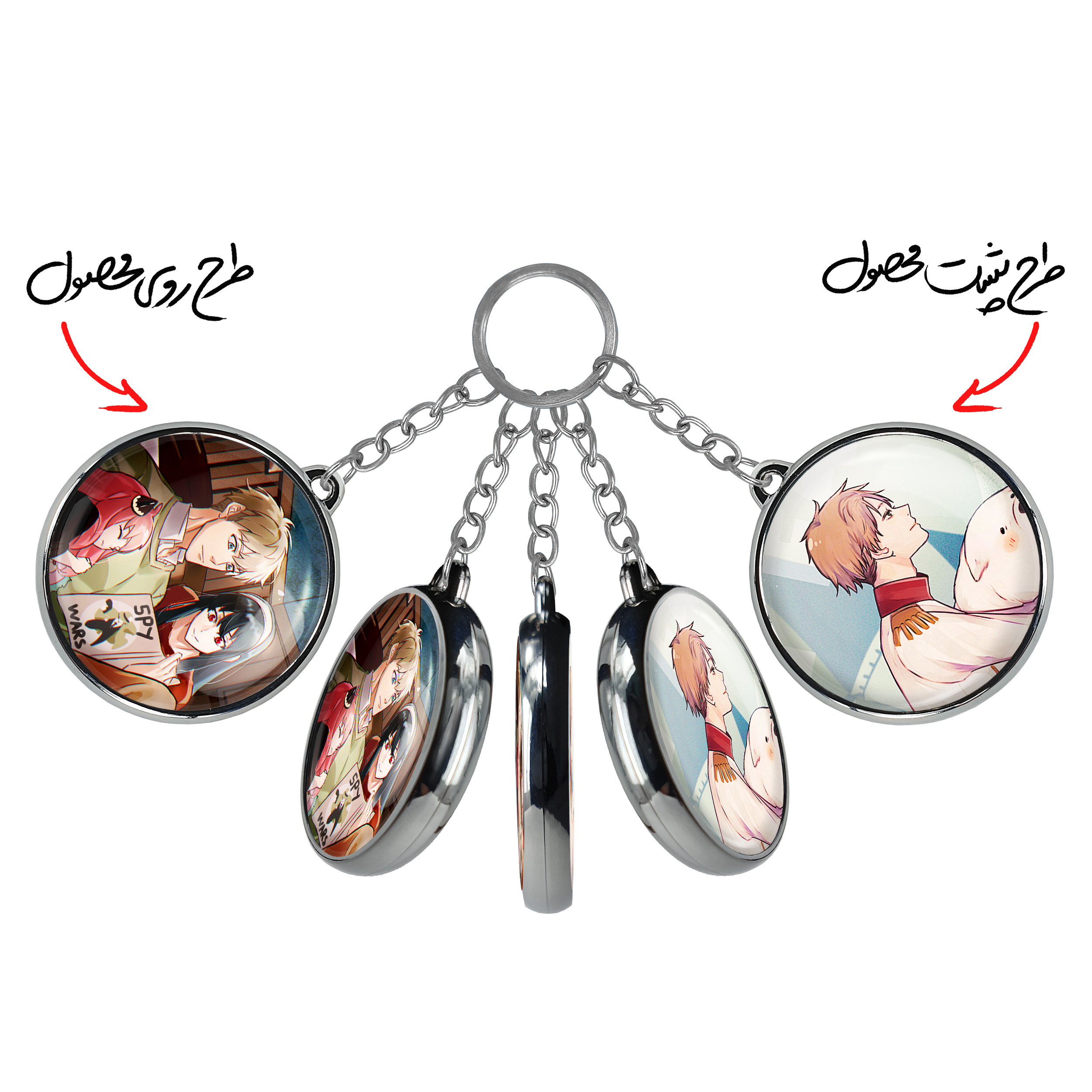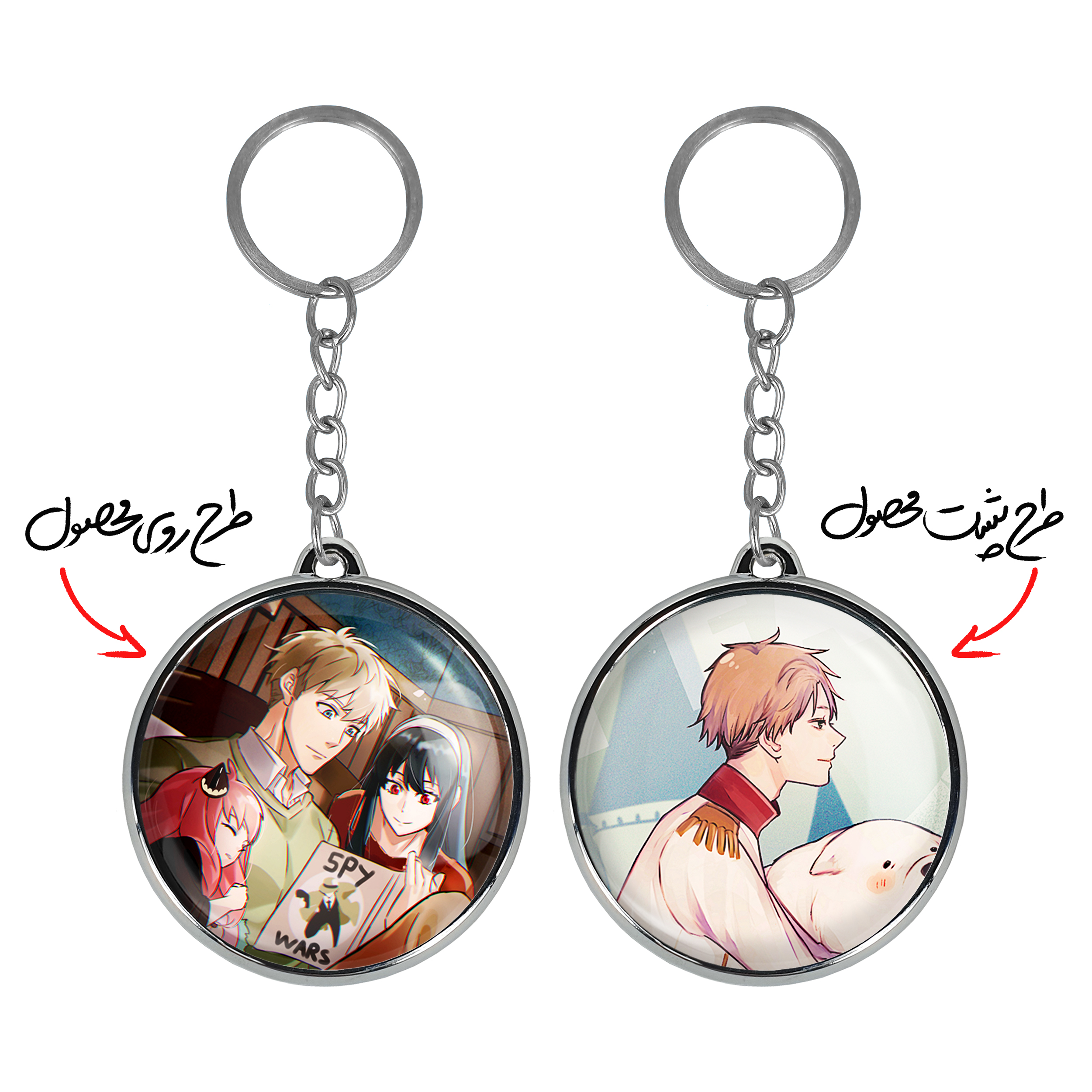 جاکلیدی دوطرفه خانواده فورجر انیمه اسپای ایکس فمیلی Spy x Familyخندالو محصولی کاربردی و جدید است که در هر دو سمت محصول، تصویری متفاوت اما از یک موضوع چاپ شده و تفاوت اصلی آن با جاکلیدی های یک طرفه در همین است که هر دو سمت پشت و روی جاکلیدی، طرحی دیدنی و جذاب دارد. همچنین رینگ بکار برده شده برای دور طرح ها آبکاری کروم درجه یک و رنگ ثابت است و برخلاف سایر محصولات مشابه، از رنگ های متفرقه و یا سفید استفاده نشده، که این مهم، زیبایی محصول نهایی را چند برابر کرده است. جاکلیدی های دوطرفه خانواده فورجر انیمه اسپای ایکس فمیلی Spy x Familyبا استفاده از روکش سلفون براق ضدخش تولید شده که خاصیت ضدخش بودن آن عمر مفید استفاده از جاکلیدی ها را افزایش میدهد. چاپ جاکلیدی ها با دستگاه های استاندارد و با بهترین سطح کیفیت صورت گرفته و طرح با شفافیتی مثال زدنی و با سلفون چسبی تولید شده است که باعث شده محصول نهایی بدون شکست نور دیده شود. همچنین بسته بندی جذاب و مینیمال جاکلیدی دوطرفه خانواده فورجر انیمه اسپای ایکس فمیلی Spy x Family، آنها را محصولی مناسب هدیه کرده است. زنجیر و حلقه بکار برده شده در جاکلیدی خندالو از نوع حلقه ضخیم و محکم بوده و حین استفاده آسیب نمی بیند.