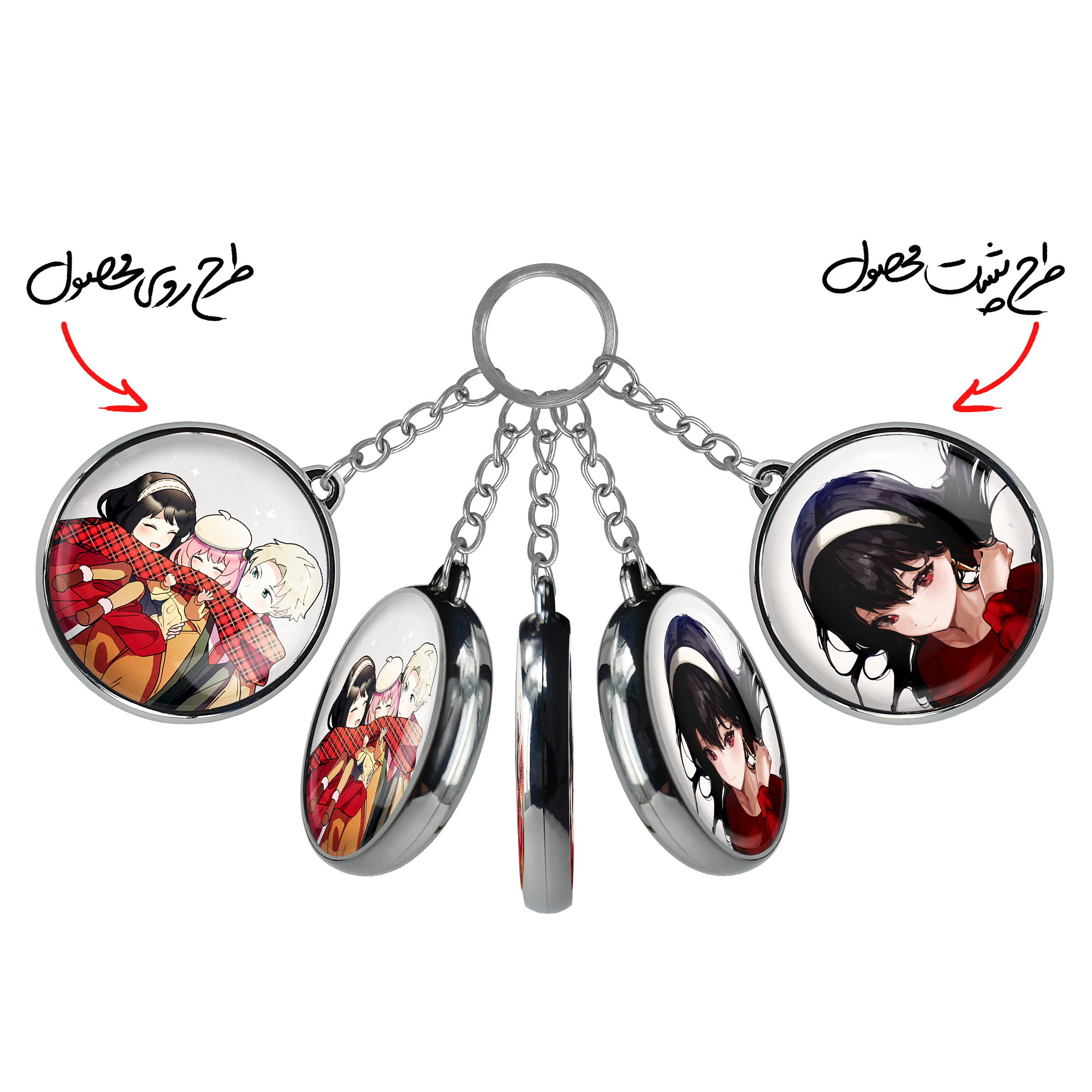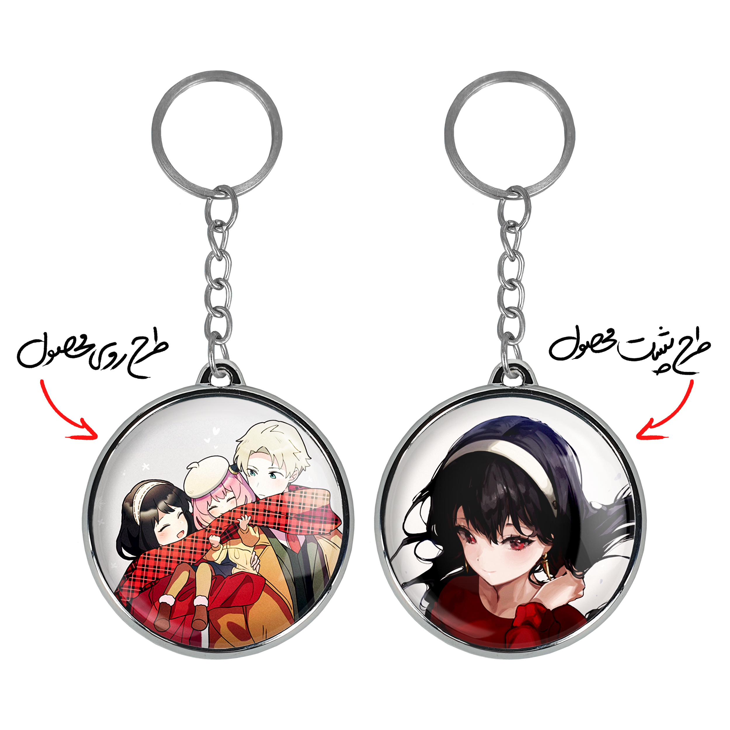 جاکلیدی دوطرفه خانواده فورجر انیمه اسپای ایکس فمیلی Spy x Familyخندالو محصولی کاربردی و جدید است که در هر دو سمت محصول، تصویری متفاوت اما از یک موضوع چاپ شده و تفاوت اصلی آن با جاکلیدی های یک طرفه در همین است که هر دو سمت پشت و روی جاکلیدی، طرحی دیدنی و جذاب دارد. همچنین رینگ بکار برده شده برای دور طرح ها آبکاری کروم درجه یک و رنگ ثابت است و برخلاف سایر محصولات مشابه، از رنگ های متفرقه و یا سفید استفاده نشده، که این مهم، زیبایی محصول نهایی را چند برابر کرده است. جاکلیدی های دوطرفه خانواده فورجر انیمه اسپای ایکس فمیلی Spy x Familyبا استفاده از روکش سلفون براق ضدخش تولید شده که خاصیت ضدخش بودن آن عمر مفید استفاده از جاکلیدی ها را افزایش میدهد. چاپ جاکلیدی ها با دستگاه های استاندارد و با بهترین سطح کیفیت صورت گرفته و طرح با شفافیتی مثال زدنی و با سلفون چسبی تولید شده است که باعث شده محصول نهایی بدون شکست نور دیده شود. همچنین بسته بندی جذاب و مینیمال جاکلیدی دوطرفه خانواده فورجر انیمه اسپای ایکس فمیلی Spy x Family، آنها را محصولی مناسب هدیه کرده است. زنجیر و حلقه بکار برده شده در جاکلیدی خندالو از نوع حلقه ضخیم و محکم بوده و حین استفاده آسیب نمی بیند.