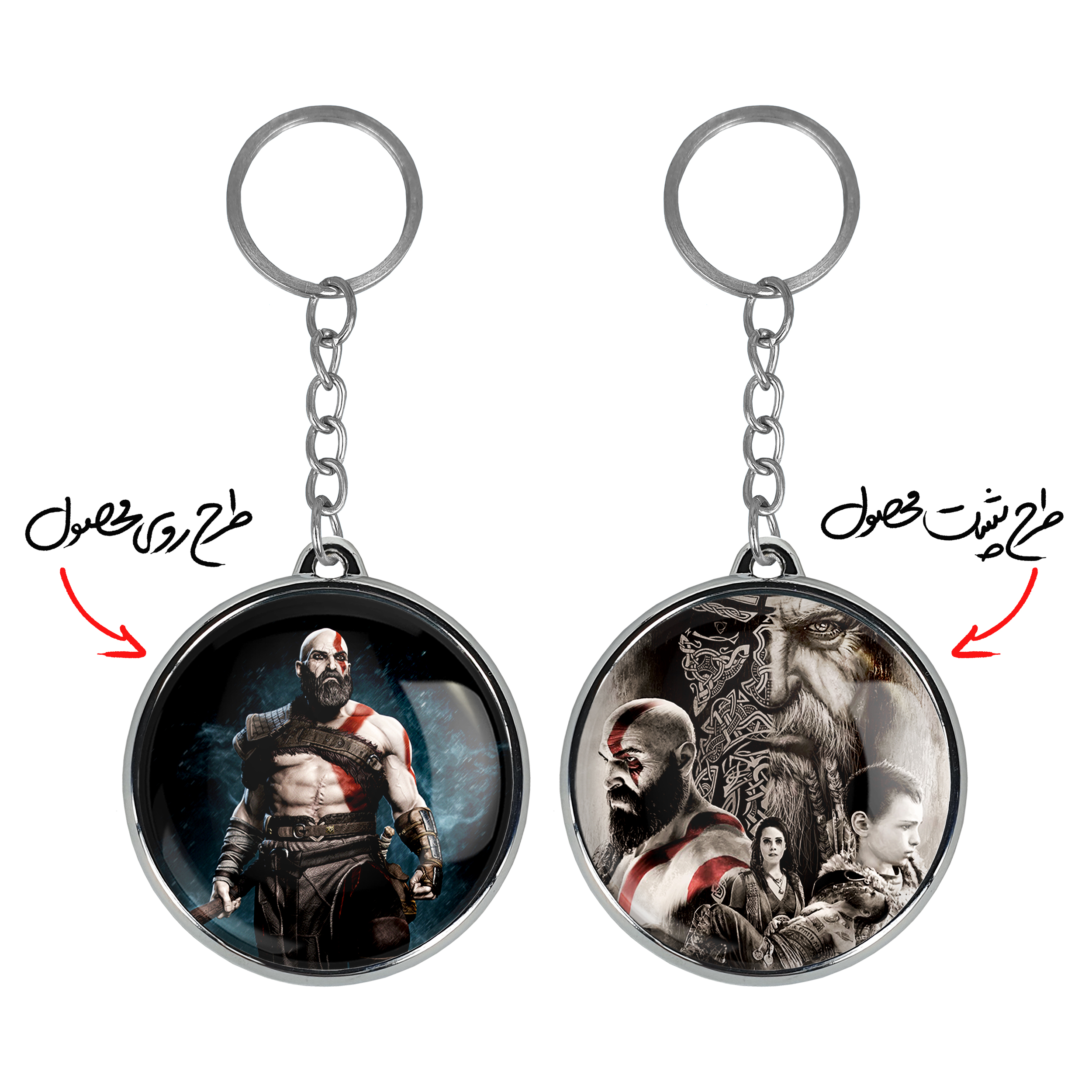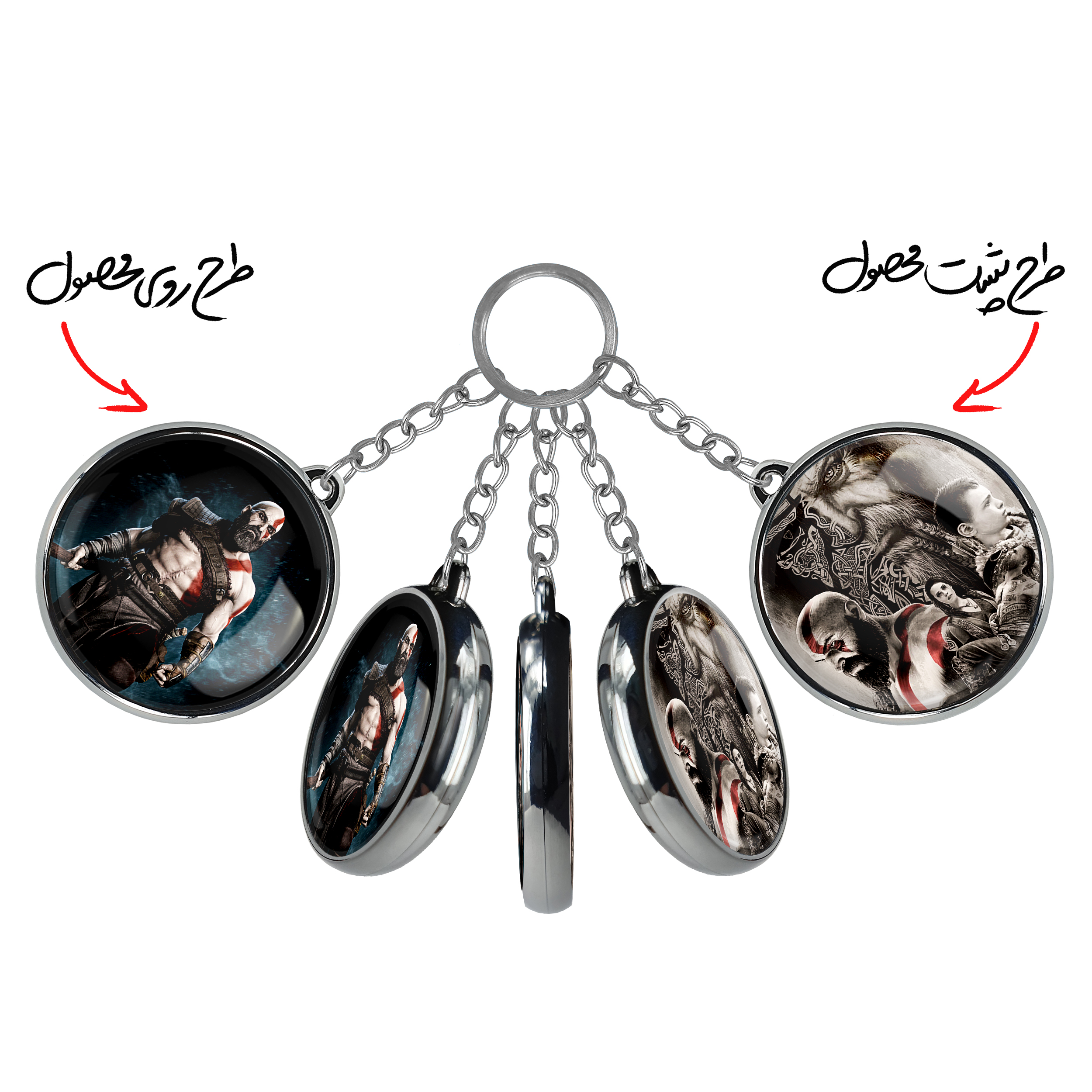 جاکلیدی دوطرفه خدای جنگ God Of War خندالو محصولی کاربردی و جدید است که در هر دو سمت محصول، تصویری متفاوت اما از یک موضوع چاپ شده و تفاوت اصلی آن با جاکلیدی های یک طرفه در همین است که هر دو سمت پشت و روی جاکلیدی، طرحی دیدنی و جذاب دارد. همچنین رینگ بکار برده شده برای دور طرح ها آبکاری کروم درجه یک و رنگ ثابت است و برخلاف سایر محصولات مشابه، از رنگ های متفرقه و یا سفید استفاده نشده، که این مهم، زیبایی محصول نهایی را چند برابر کرده است. جاکلیدی های دوطرفه خدای جنگ God Of War با استفاده از روکش سلفون براق ضدخش تولید شده که خاصیت ضدخش بودن آن عمر مفید استفاده از جاکلیدی ها را افزایش میدهد. چاپ جاکلیدی ها با دستگاه های استاندارد و با بهترین سطح کیفیت صورت گرفته و طرح با شفافیتی مثال زدنی و با سلفون چسبی تولید شده است که باعث شده محصول نهایی بدون شکست نور دیده شود. همچنین بسته بندی جذاب و مینیمال جاکلیدی دوطرفه خدای جنگ God Of War ، آنها را محصولی مناسب هدیه کرده است. زنجیر و حلقه بکار برده شده در جاکلیدی خندالو از نوع حلقه ضخیم و محکم بوده و حین استفاده آسیب نمی بیند.