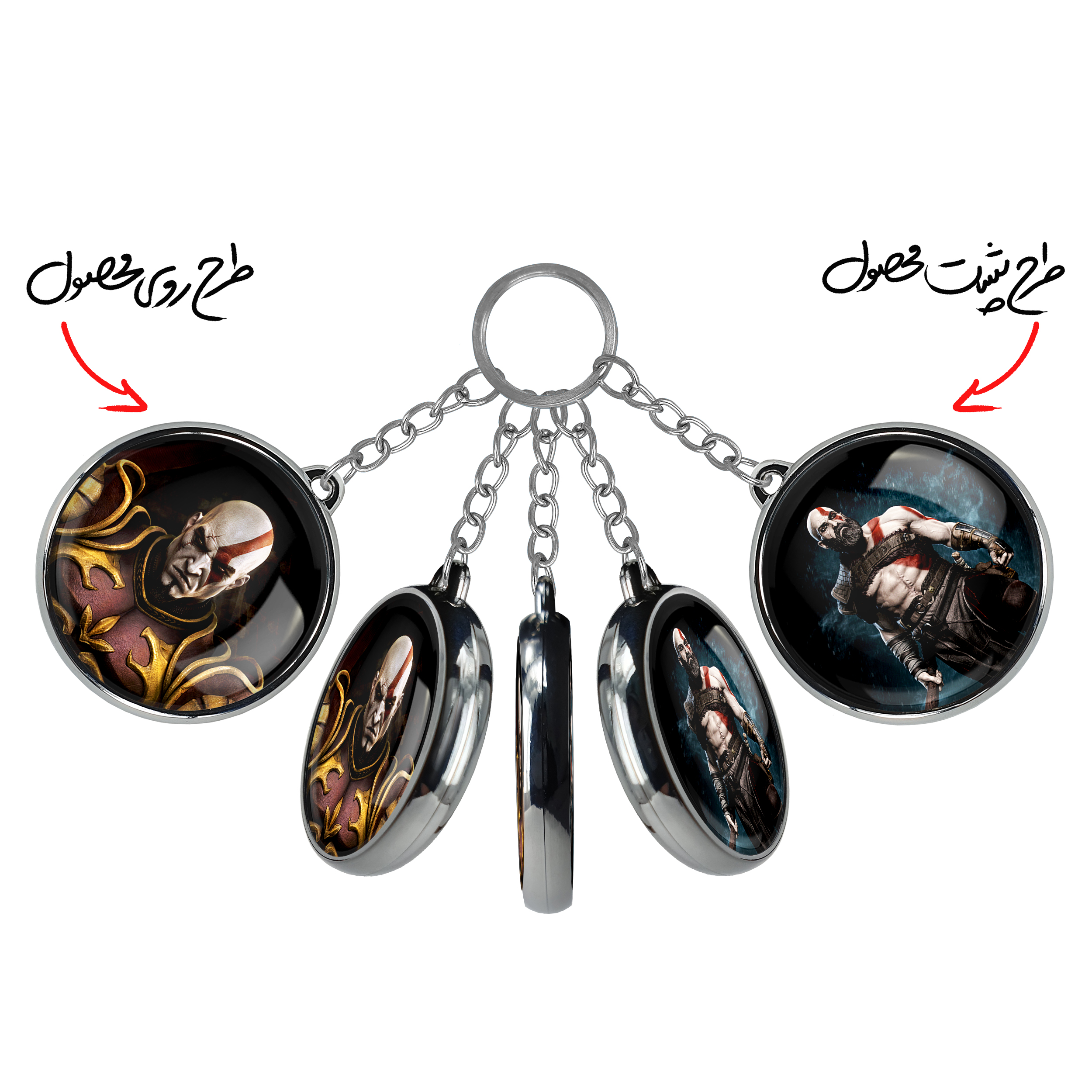 جاکلیدی دوطرفه خدای جنگ God Of War خندالو محصولی کاربردی و جدید است که در هر دو سمت محصول، تصویری متفاوت اما از یک موضوع چاپ شده و تفاوت اصلی آن با جاکلیدی های یک طرفه در همین است که هر دو سمت پشت و روی جاکلیدی، طرحی دیدنی و جذاب دارد. همچنین رینگ بکار برده شده برای دور طرح ها آبکاری کروم درجه یک و رنگ ثابت است و برخلاف سایر محصولات مشابه، از رنگ های متفرقه و یا سفید استفاده نشده، که این مهم، زیبایی محصول نهایی را چند برابر کرده است. جاکلیدی های دوطرفه خدای جنگ God Of War با استفاده از روکش سلفون براق ضدخش تولید شده که خاصیت ضدخش بودن آن عمر مفید استفاده از جاکلیدی ها را افزایش میدهد. چاپ جاکلیدی ها با دستگاه های استاندارد و با بهترین سطح کیفیت صورت گرفته و طرح با شفافیتی مثال زدنی و با سلفون چسبی تولید شده است که باعث شده محصول نهایی بدون شکست نور دیده شود. همچنین بسته بندی جذاب و مینیمال جاکلیدی دوطرفه خدای جنگ God Of War ، آنها را محصولی مناسب هدیه کرده است. زنجیر و حلقه بکار برده شده در جاکلیدی خندالو از نوع حلقه ضخیم و محکم بوده و حین استفاده آسیب نمی بیند.