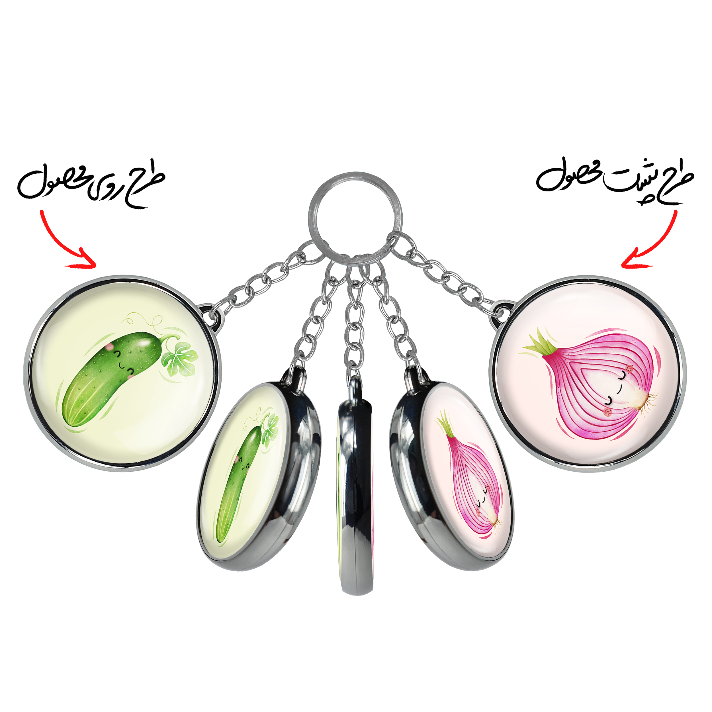 جاکلیدی دوطرفه خیارخندالو محصولی کاربردی و جدید است که در هر دو سمت محصول، تصویری متفاوت اما از یک موضوع چاپ شده و تفاوت اصلی آن با جاکلیدی های یک طرفه در همین است که هر دو سمت پشت و روی جاکلیدی، طرحی دیدنی و جذاب دارد. همچنین رینگ بکار برده شده برای دور طرح ها آبکاری کروم درجه یک و رنگ ثابت است و برخلاف سایر محصولات مشابه، از رنگ های متفرقه و یا سفید استفاده نشده، که این مهم، زیبایی محصول نهایی را چند برابر کرده است. جاکلیدی های دوطرفه خیاربا استفاده از روکش سلفون براق ضدخش تولید شده که خاصیت ضدخش بودن آن عمر مفید استفاده از جاکلیدی ها را افزایش میدهد. چاپ جاکلیدی ها با دستگاه های استاندارد و با بهترین سطح کیفیت صورت گرفته و طرح با شفافیتی مثال زدنی و با سلفون چسبی تولید شده است که باعث شده محصول نهایی بدون شکست نور دیده شود. همچنین بسته بندی جذاب و مینیمال جاکلیدی دوطرفه خیار، آنها را محصولی مناسب هدیه کرده است. زنجیر و حلقه بکار برده شده در جاکلیدی خندالو از نوع حلقه ضخیم و محکم بوده و حین استفاده آسیب نمی بیند.
