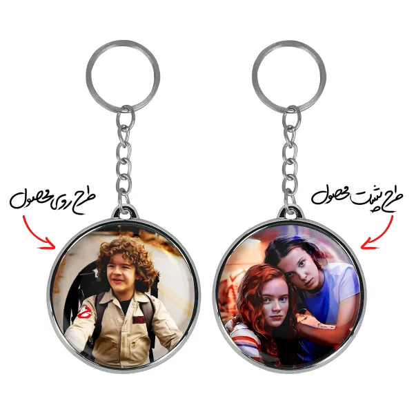 جاکلیدی دوطرفه داستین سریال استرنجر تینگز Stranger Things خندالو محصولی کاربردی و جدید است که در هر دو سمت محصول، تصویری متفاوت اما از یک موضوع چاپ شده و تفاوت اصلی آن با جاکلیدی های یک طرفه در همین است که هر دو سمت پشت و روی جاکلیدی، طرحی دیدنی و جذاب دارد. همچنین رینگ بکار برده شده برای دور طرح ها آبکاری کروم درجه یک و رنگ ثابت است و برخلاف سایر محصولات مشابه، از رنگ های متفرقه و یا سفید استفاده نشده، که این مهم، زیبایی محصول نهایی را چند برابر کرده است. جاکلیدی های دوطرفه داستین سریال استرنجر تینگز Stranger Things با استفاده از روکش سلفون براق ضدخش تولید شده که خاصیت ضدخش بودن آن عمر مفید استفاده از جاکلیدی ها را افزایش میدهد. چاپ جاکلیدی ها با دستگاه های استاندارد و با بهترین سطح کیفیت صورت گرفته و طرح با شفافیتی مثال زدنی و با سلفون چسبی تولید شده است که باعث شده محصول نهایی بدون شکست نور دیده شود. همچنین بسته بندی جذاب و مینیمال جاکلیدی دوطرفه داستین سریال استرنجر تینگز Stranger Things ، آنها را محصولی مناسب هدیه کرده است. زنجیر و حلقه بکار برده شده در جاکلیدی خندالو از نوع حلقه ضخیم و محکم بوده و حین استفاده آسیب نمی بیند.