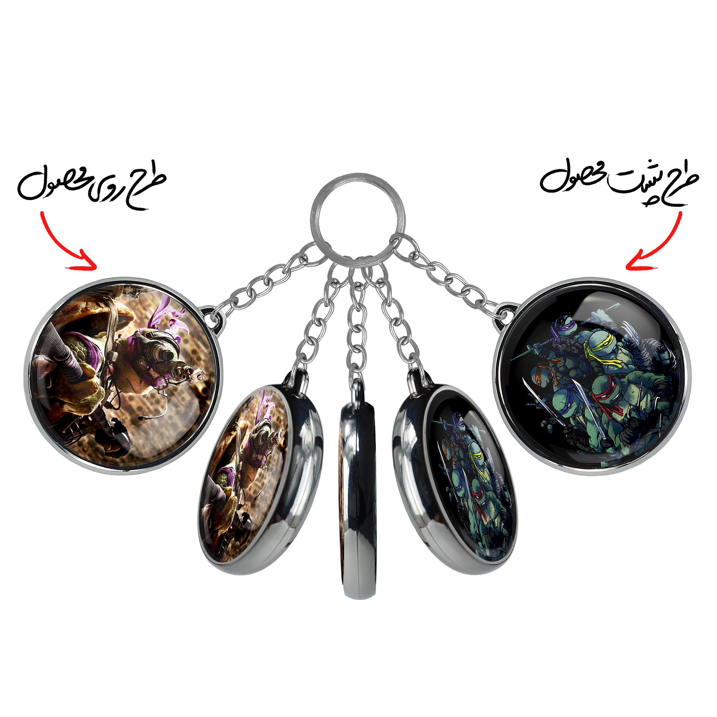 جاکلیدی دوطرفه داناتلو لاکپشت های نینجا خندالو محصولی کاربردی و جدید است که در هر دو سمت محصول، تصویری متفاوت اما از یک موضوع چاپ شده و تفاوت اصلی آن با جاکلیدی های یک طرفه در همین است که هر دو سمت پشت و روی جاکلیدی، طرحی دیدنی و جذاب دارد.