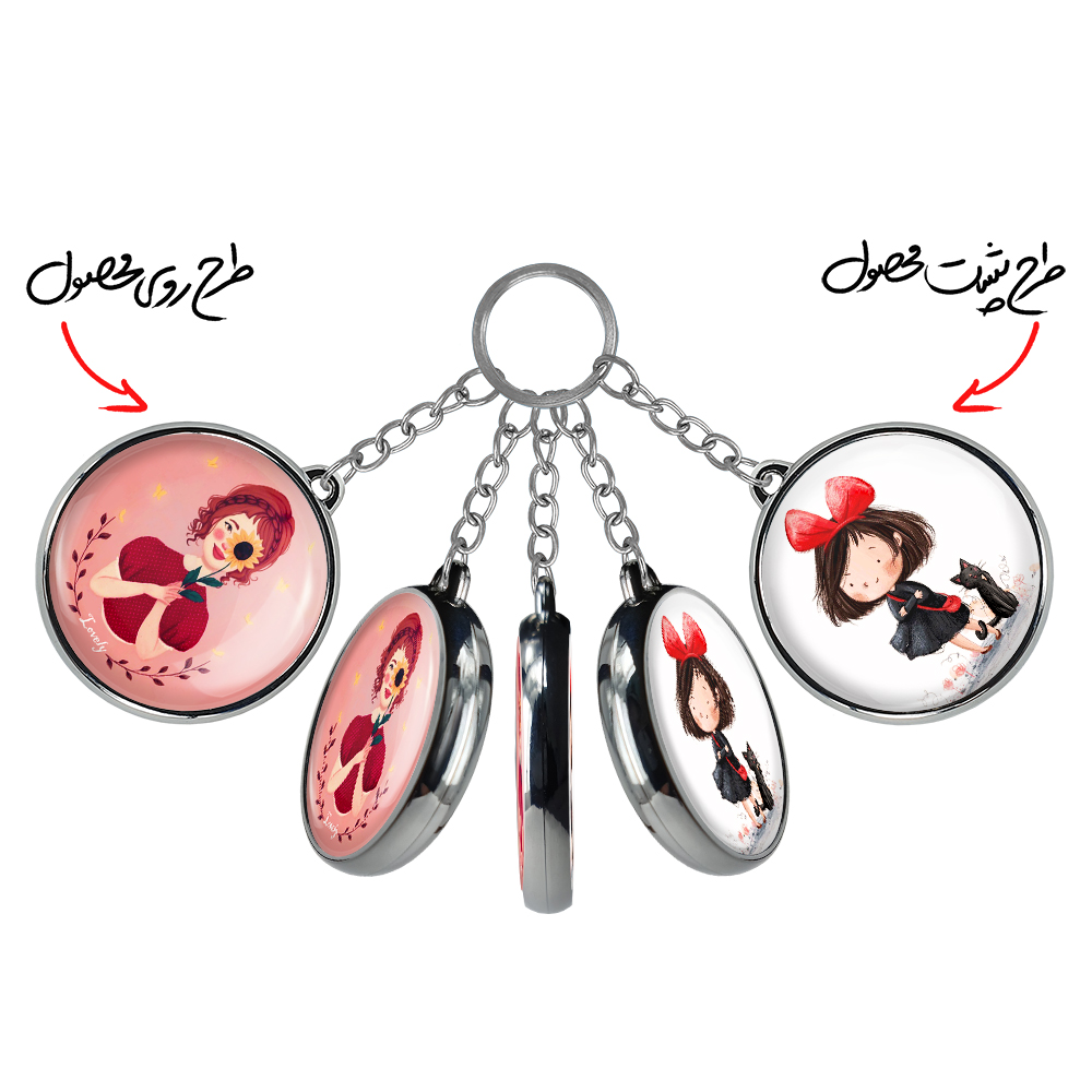 جاکلیدی دوطرفه دخترونه خندالو محصولی کاربردی و جدید است که در هر دو سمت محصول، تصویری متفاوت اما از یک موضوع چاپ شده و تفاوت اصلی آن با جاکلیدی های یک طرفه در همین است که هر دو سمت پشت و روی جاکلیدی، طرحی دیدنی و جذاب دارد. همچنین رینگ بکار برده شده برای دور طرح ها آبکاری کروم درجه یک و رنگ ثابت است و برخلاف سایر محصولات مشابه، از رنگ های متفرقه و یا سفید استفاده نشده، که این مهم، زیبایی محصول نهایی را چند برابر کرده است. جاکلیدی های دوطرفه دخترونه با استفاده از روکش سلفون براق ضدخش تولید شده که خاصیت ضدخش بودن آن عمر مفید استفاده از جاکلیدی ها را افزایش میدهد. چاپ جاکلیدی ها با دستگاه های استاندارد و با بهترین سطح کیفیت صورت گرفته و طرح با شفافیتی مثال زدنی و با سلفون چسبی تولید شده است که باعث شده محصول نهایی بدون شکست نور دیده شود. همچنین بسته بندی جذاب و مینیمال جاکلیدی دوطرفه دخترونه ، آنها را محصولی مناسب هدیه کرده است. زنجیر و حلقه بکار برده شده در جاکلیدی خندالو از نوع حلقه ضخیم و محکم بوده و حین استفاده آسیب نمی بیند.