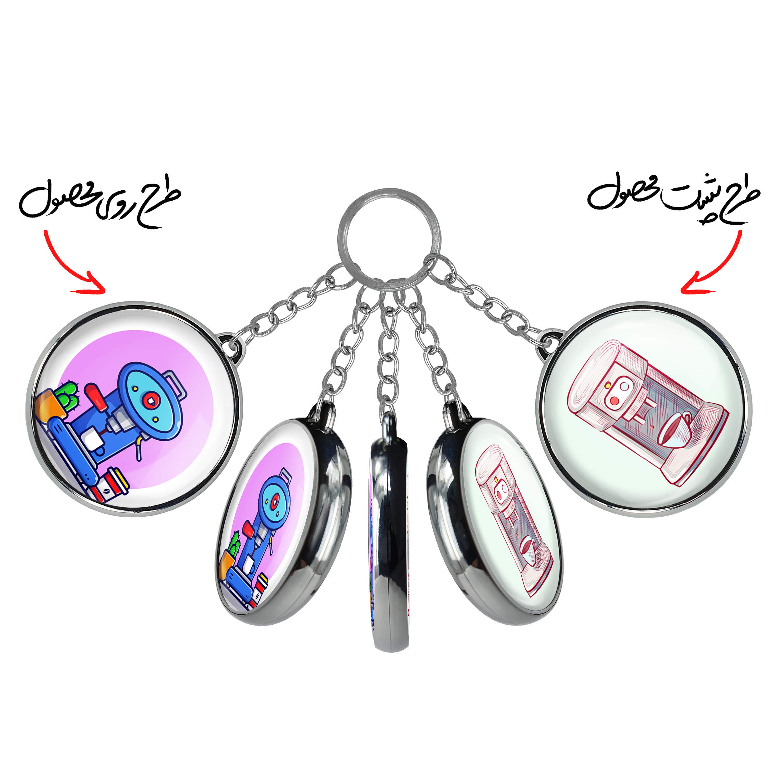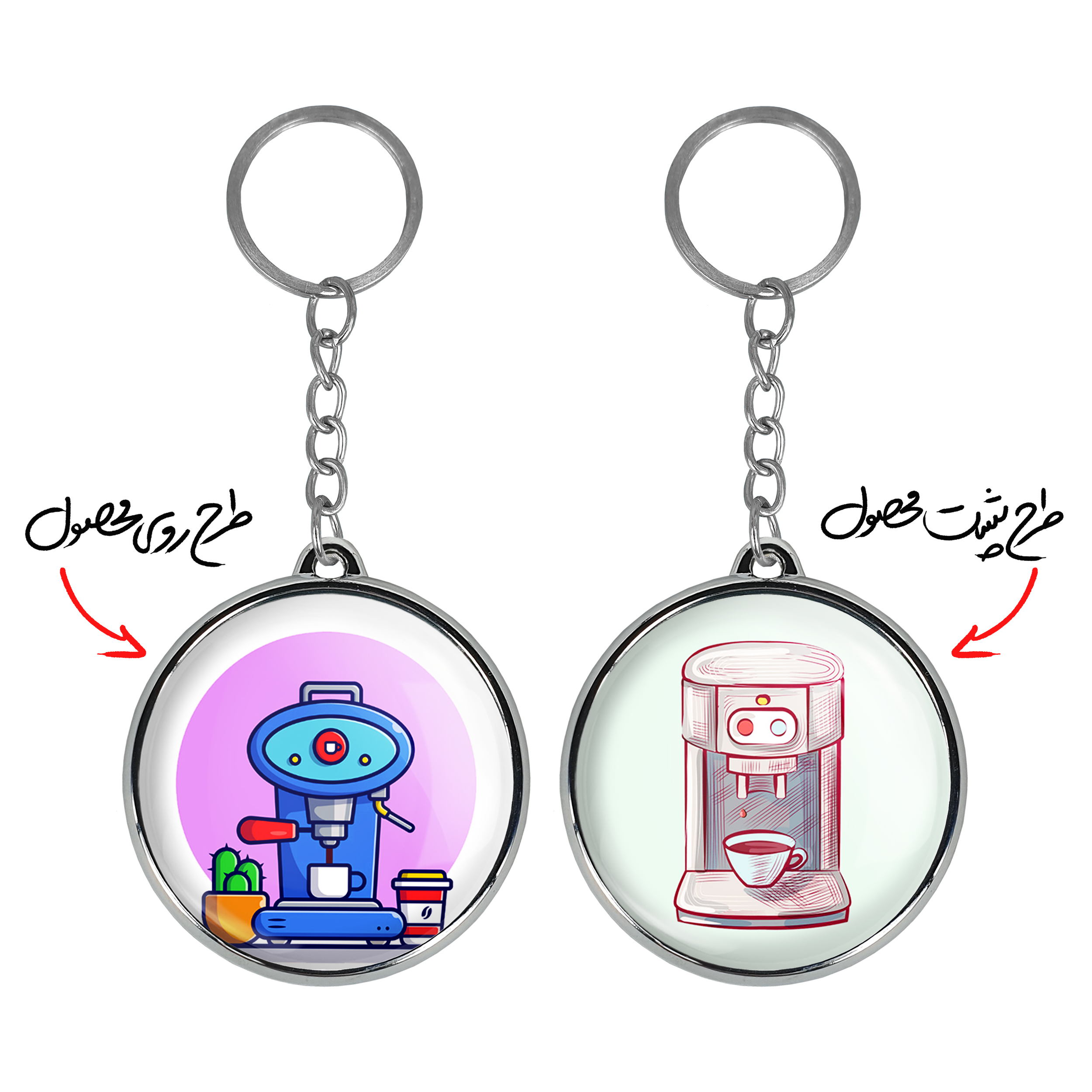 جاکلیدی دوطرفه دستگاه قهوه سازخندالو محصولی کاربردی و جدید است که در هر دو سمت محصول، تصویری متفاوت اما از یک موضوع چاپ شده و تفاوت اصلی آن با جاکلیدی های یک طرفه در همین است که هر دو سمت پشت و روی جاکلیدی، طرحی دیدنی و جذاب دارد.