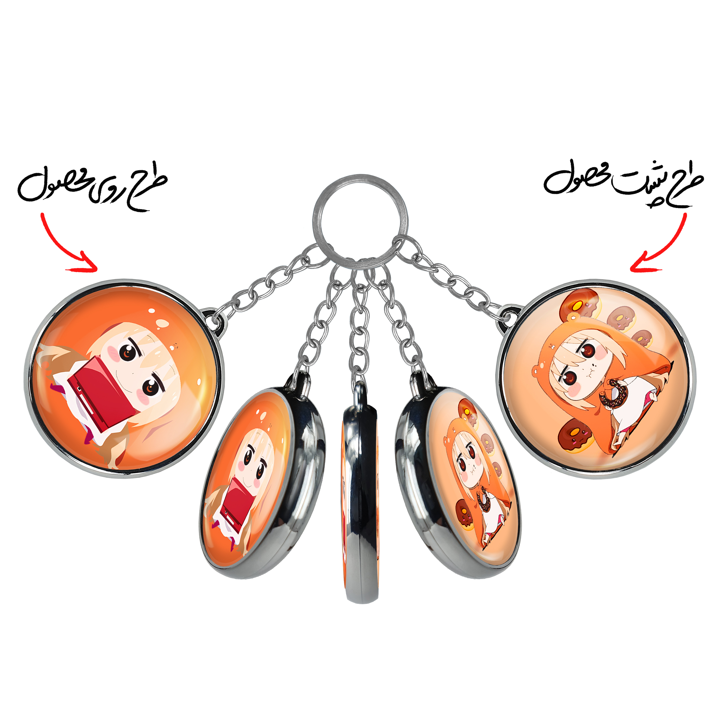 جاکلیدی دوطرفه دوما اومارو انیمه اوماروچان Umaru Chan خندالو محصولی کاربردی و جدید است که در هر دو سمت محصول، تصویری متفاوت اما از یک موضوع چاپ شده و تفاوت اصلی آن با جاکلیدی های یک طرفه در همین است که هر دو سمت پشت و روی جاکلیدی، طرحی دیدنی و جذاب دارد.
