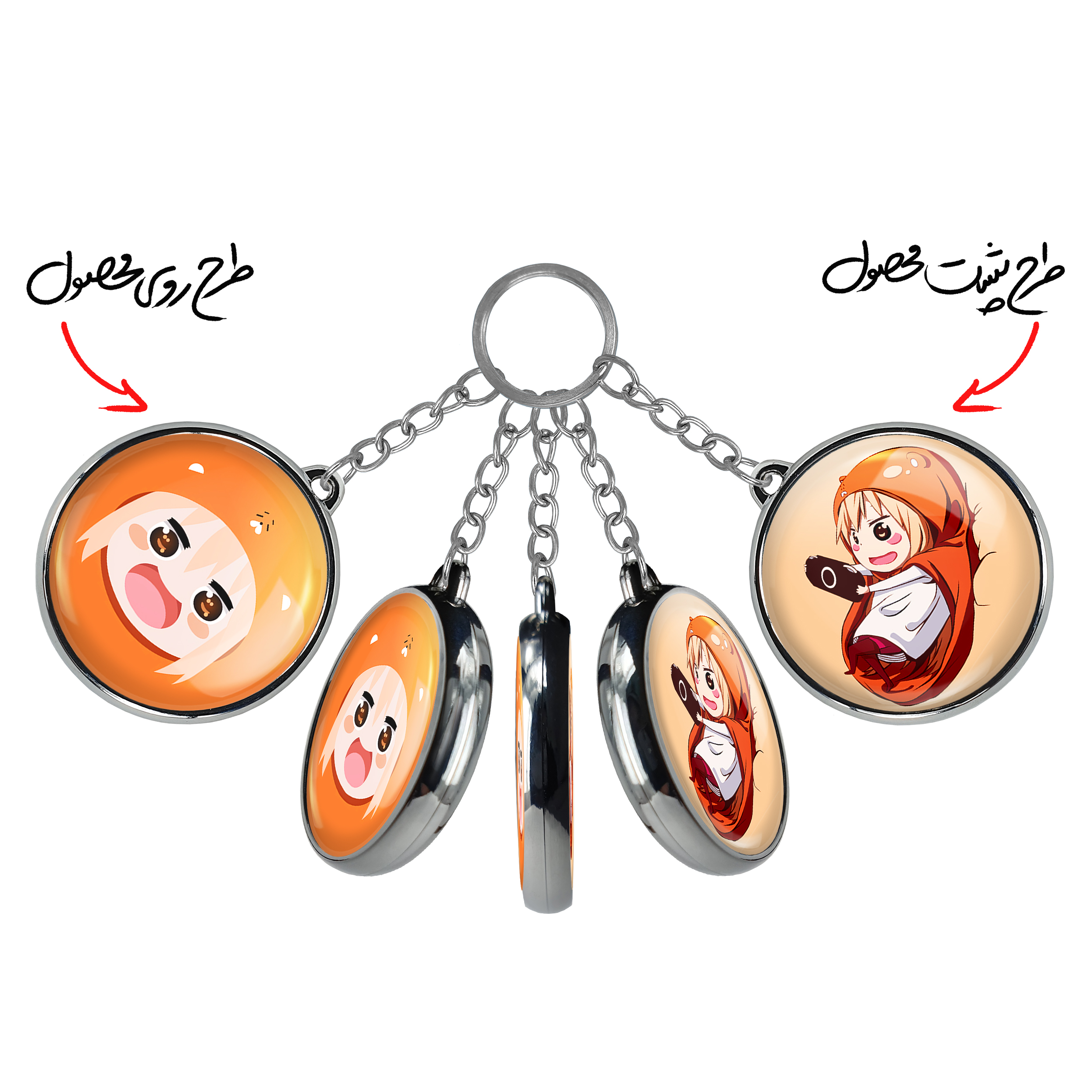 جاکلیدی دوطرفه دوما اومارو انیمه اوماروچان Umaru Chan خندالو محصولی کاربردی و جدید است که در هر دو سمت محصول، تصویری متفاوت اما از یک موضوع چاپ شده و تفاوت اصلی آن با جاکلیدی های یک طرفه در همین است که هر دو سمت پشت و روی جاکلیدی، طرحی دیدنی و جذاب دارد.