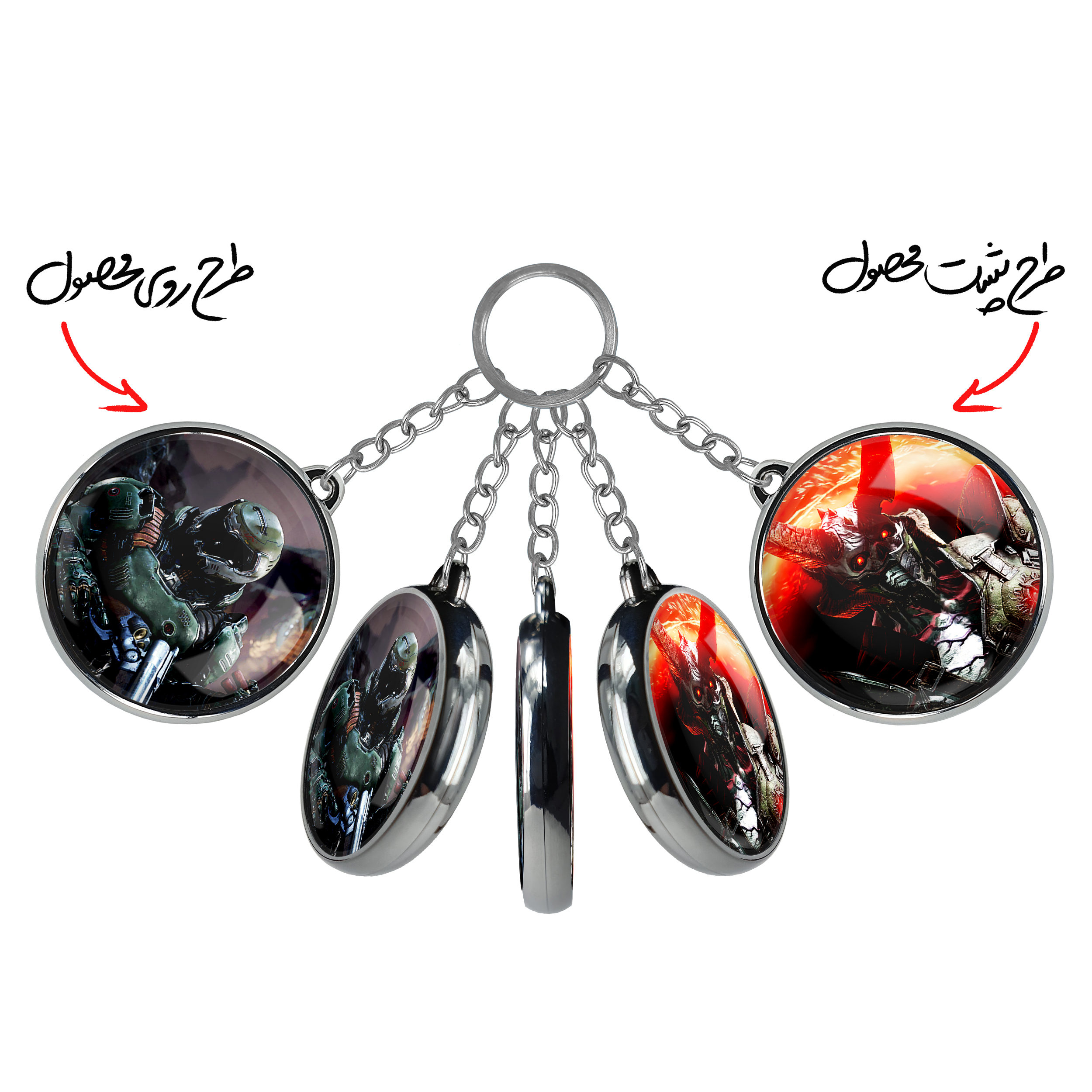 جاکلیدی دوطرفه دووم اسلیر دووم اترنالخندالو محصولی کاربردی و جدید است که در هر دو سمت محصول، تصویری متفاوت اما از یک موضوع چاپ شده و تفاوت اصلی آن با جاکلیدی های یک طرفه در همین است که هر دو سمت پشت و روی جاکلیدی، طرحی دیدنی و جذاب دارد.