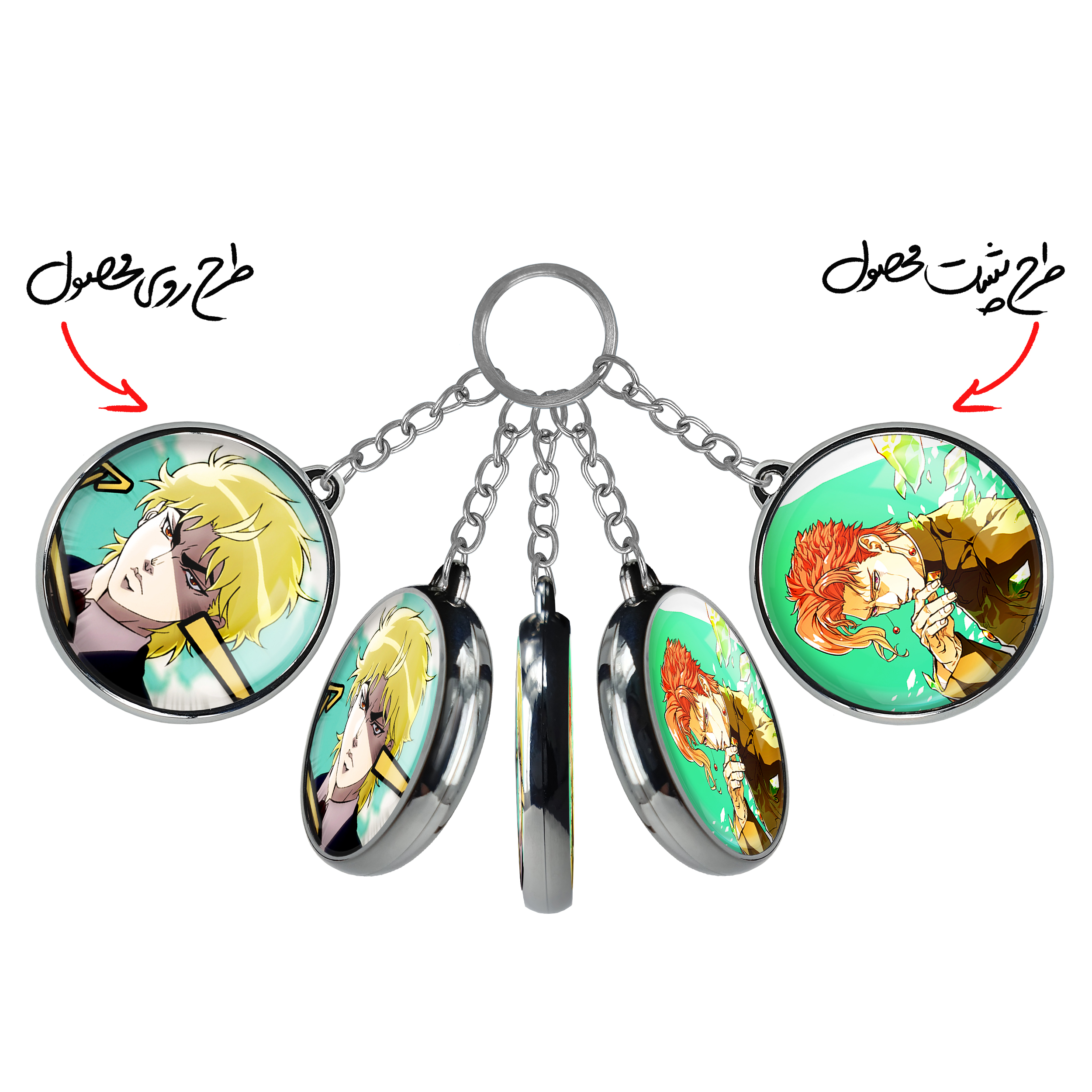 جاکلیدی دوطرفه دیو براندو انیمه جوجو Jojo خندالو محصولی کاربردی و جدید است که در هر دو سمت محصول، تصویری متفاوت اما از یک موضوع چاپ شده و تفاوت اصلی آن با جاکلیدی های یک طرفه در همین است که هر دو سمت پشت و روی جاکلیدی، طرحی دیدنی و جذاب دارد. همچنین رینگ بکار برده شده برای دور طرح ها آبکاری کروم درجه یک و رنگ ثابت است و برخلاف سایر محصولات مشابه، از رنگ های متفرقه و یا سفید استفاده نشده، که این مهم، زیبایی محصول نهایی را چند برابر کرده است. جاکلیدی های دوطرفه دیو براندو انیمه جوجو Jojo با استفاده از روکش سلفون براق ضدخش تولید شده که خاصیت ضدخش بودن آن عمر مفید استفاده از جاکلیدی ها را افزایش میدهد. چاپ جاکلیدی ها با دستگاه های استاندارد و با بهترین سطح کیفیت صورت گرفته و طرح با شفافیتی مثال زدنی و با سلفون چسبی تولید شده است که باعث شده محصول نهایی بدون شکست نور دیده شود. همچنین بسته بندی جذاب و مینیمال جاکلیدی دوطرفه دیو براندو انیمه جوجو Jojo ، آنها را محصولی مناسب هدیه کرده است. زنجیر و حلقه بکار برده شده در جاکلیدی خندالو از نوع حلقه ضخیم و محکم بوده و حین استفاده آسیب نمی بیند.