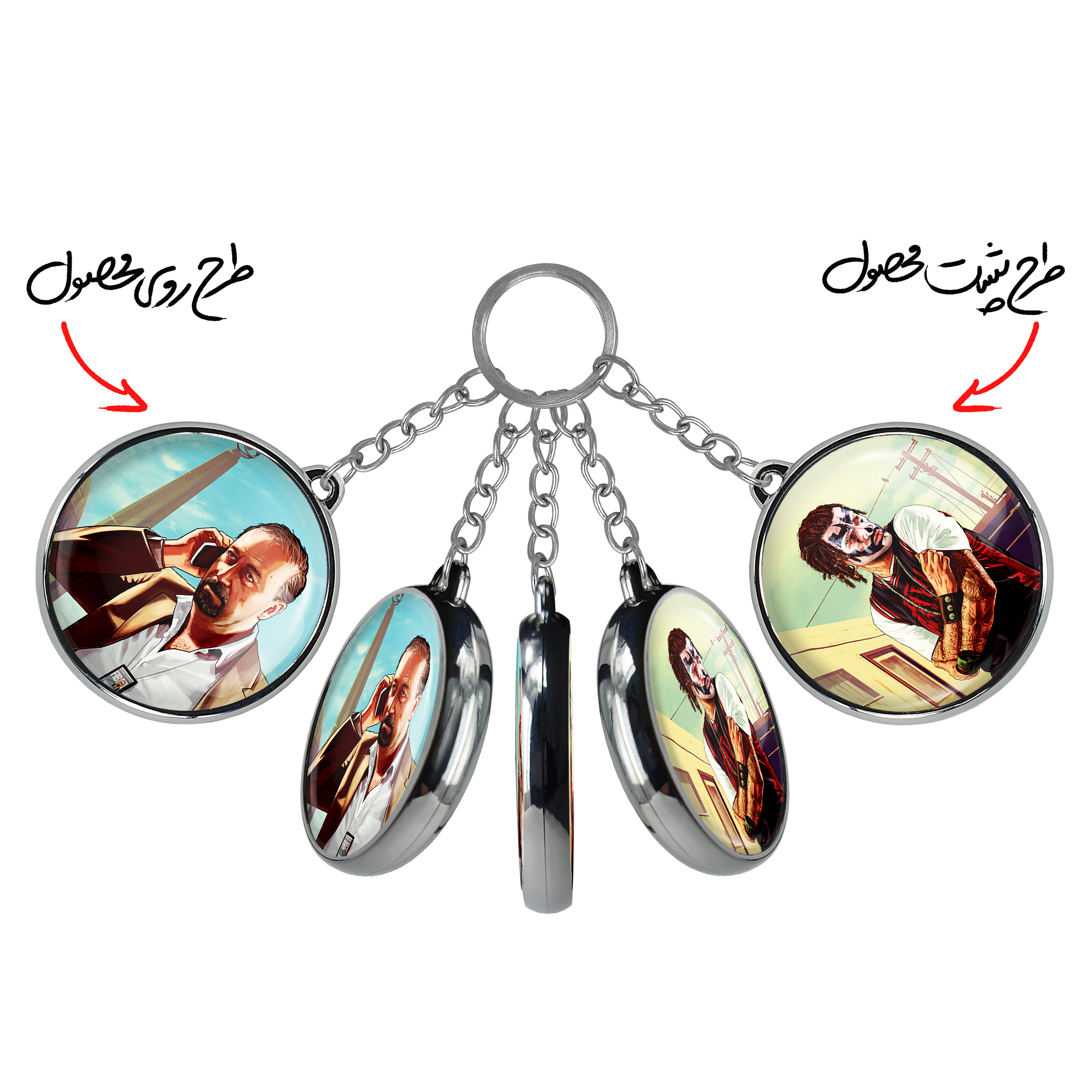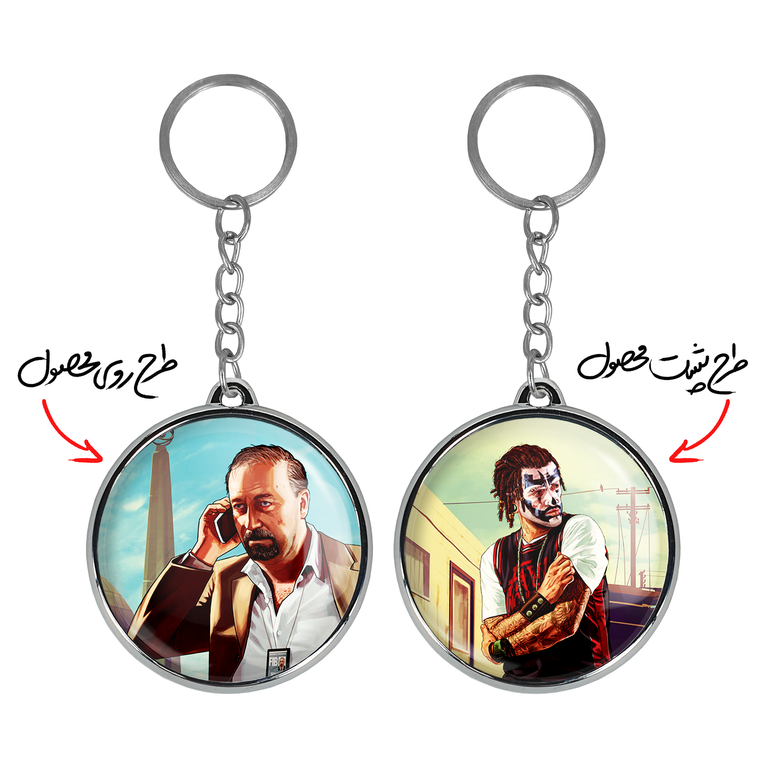 جاکلیدی دوطرفه دیو نورتون جی تی ای GTAخندالو محصولی کاربردی و جدید است که در هر دو سمت محصول، تصویری متفاوت اما از یک موضوع چاپ شده و تفاوت اصلی آن با جاکلیدی های یک طرفه در همین است که هر دو سمت پشت و روی جاکلیدی، طرحی دیدنی و جذاب دارد. همچنین رینگ بکار برده شده برای دور طرح ها آبکاری کروم درجه یک و رنگ ثابت است و برخلاف سایر محصولات مشابه، از رنگ های متفرقه و یا سفید استفاده نشده، که این مهم، زیبایی محصول نهایی را چند برابر کرده است. جاکلیدی های دوطرفه دیو نورتون جی تی ای GTAبا استفاده از روکش سلفون براق ضدخش تولید شده که خاصیت ضدخش بودن آن عمر مفید استفاده از جاکلیدی ها را افزایش میدهد. چاپ جاکلیدی ها با دستگاه های استاندارد و با بهترین سطح کیفیت صورت گرفته و طرح با شفافیتی مثال زدنی و با سلفون چسبی تولید شده است که باعث شده محصول نهایی بدون شکست نور دیده شود. همچنین بسته بندی جذاب و مینیمال جاکلیدی دوطرفه دیو نورتون جی تی ای GTA، آنها را محصولی مناسب هدیه کرده است. زنجیر و حلقه بکار برده شده در جاکلیدی خندالو از نوع حلقه ضخیم و محکم بوده و حین استفاده آسیب نمی بیند.