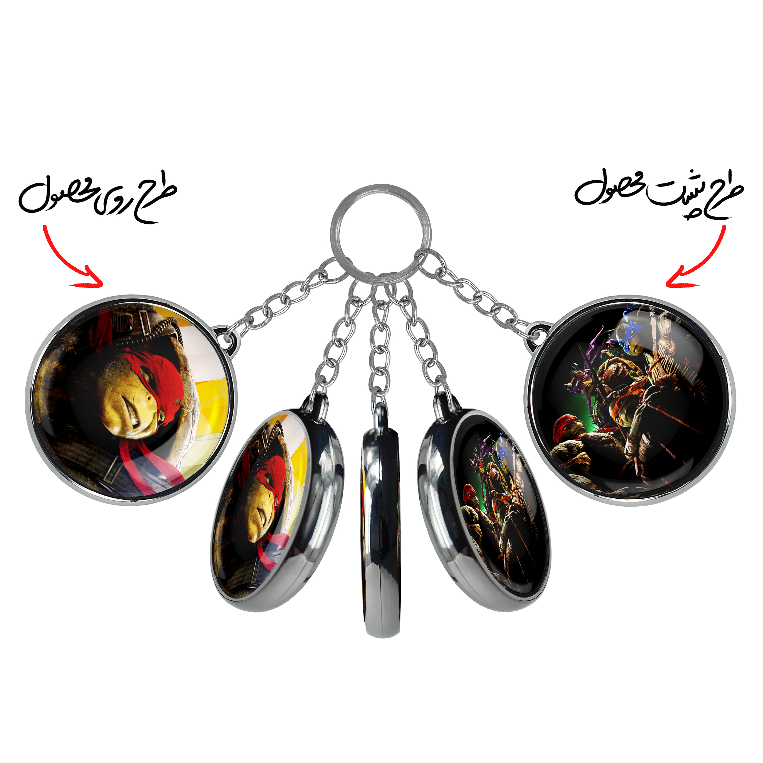 جاکلیدی دوطرفه رافائل لاکپشت های نینجاخندالو محصولی کاربردی و جدید است که در هر دو سمت محصول، تصویری متفاوت اما از یک موضوع چاپ شده و تفاوت اصلی آن با جاکلیدی های یک طرفه در همین است که هر دو سمت پشت و روی جاکلیدی، طرحی دیدنی و جذاب دارد. همچنین رینگ بکار برده شده برای دور طرح ها آبکاری کروم درجه یک و رنگ ثابت است و برخلاف سایر محصولات مشابه، از رنگ های متفرقه و یا سفید استفاده نشده، که این مهم، زیبایی محصول نهایی را چند برابر کرده است. جاکلیدی های دوطرفه رافائل لاکپشت های نینجابا استفاده از روکش سلفون براق ضدخش تولید شده که خاصیت ضدخش بودن آن عمر مفید استفاده از جاکلیدی ها را افزایش میدهد. چاپ جاکلیدی ها با دستگاه های استاندارد و با بهترین سطح کیفیت صورت گرفته و طرح با شفافیتی مثال زدنی و با سلفون چسبی تولید شده است که باعث شده محصول نهایی بدون شکست نور دیده شود. همچنین بسته بندی جذاب و مینیمال جاکلیدی دوطرفه رافائل لاکپشت های نینجا، آنها را محصولی مناسب هدیه کرده است. زنجیر و حلقه بکار برده شده در جاکلیدی خندالو از نوع حلقه ضخیم و محکم بوده و حین استفاده آسیب نمی بیند.