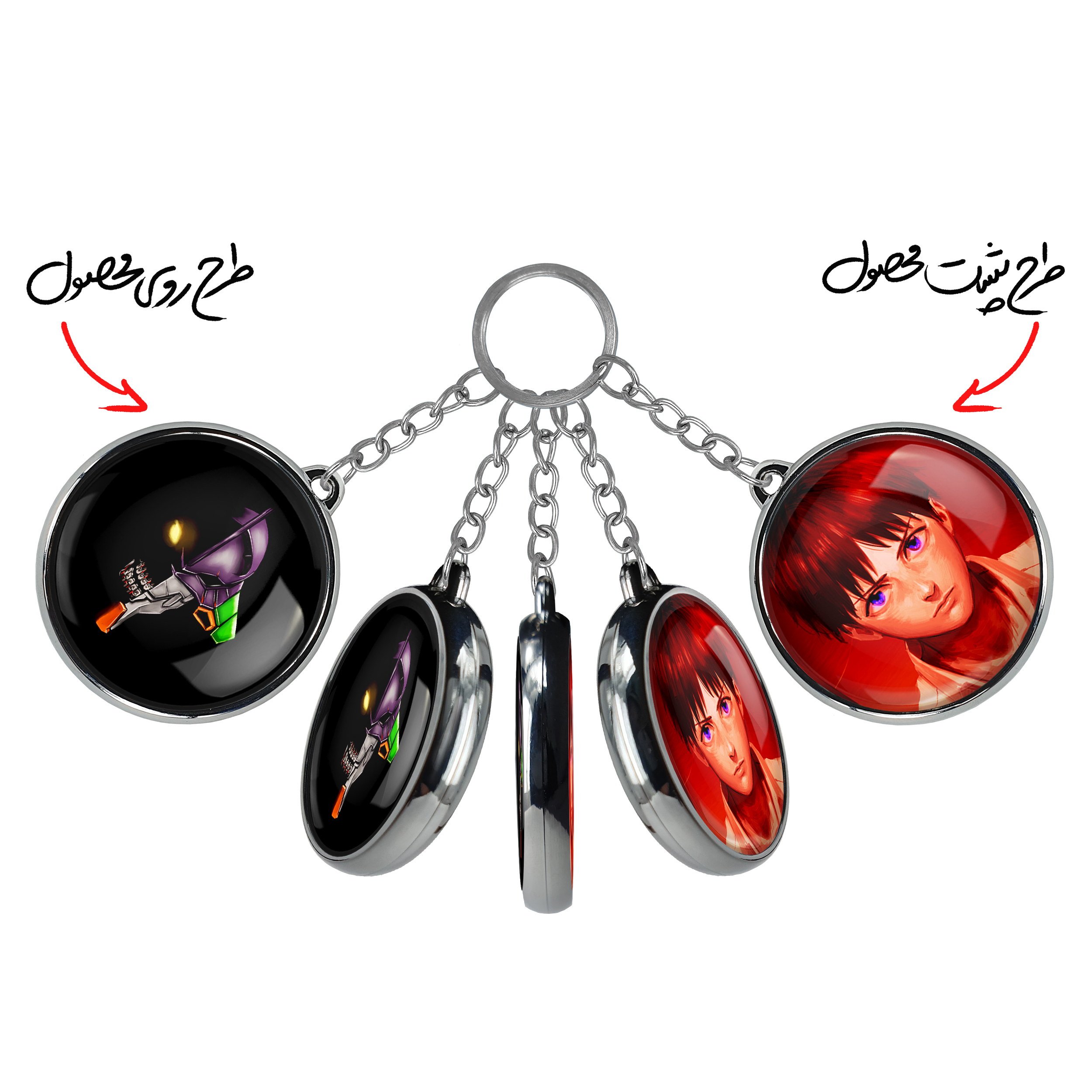جاکلیدی دوطرفه ربات شینجی انیمه اونگلیون خندالو محصولی کاربردی و جدید است که در هر دو سمت محصول، تصویری متفاوت اما از یک موضوع چاپ شده و تفاوت اصلی آن با جاکلیدی های یک طرفه در همین است که هر دو سمت پشت و روی جاکلیدی، طرحی دیدنی و جذاب دارد. همچنین رینگ بکار برده شده برای دور طرح ها آبکاری کروم درجه یک و رنگ ثابت است و برخلاف سایر محصولات مشابه، از رنگ های متفرقه و یا سفید استفاده نشده، که این مهم، زیبایی محصول نهایی را چند برابر کرده است. جاکلیدی های دوطرفه ربات شینجی انیمه اونگلیون با استفاده از روکش سلفون براق ضدخش تولید شده که خاصیت ضدخش بودن آن عمر مفید استفاده از جاکلیدی ها را افزایش میدهد. چاپ جاکلیدی ها با دستگاه های استاندارد و با بهترین سطح کیفیت صورت گرفته و طرح با شفافیتی مثال زدنی و با سلفون چسبی تولید شده است که باعث شده محصول نهایی بدون شکست نور دیده شود. همچنین بسته بندی جذاب و مینیمال جاکلیدی دوطرفه ربات شینجی انیمه اونگلیون ، آنها را محصولی مناسب هدیه کرده است. زنجیر و حلقه بکار برده شده در جاکلیدی خندالو از نوع حلقه ضخیم و محکم بوده و حین استفاده آسیب نمی بیند.