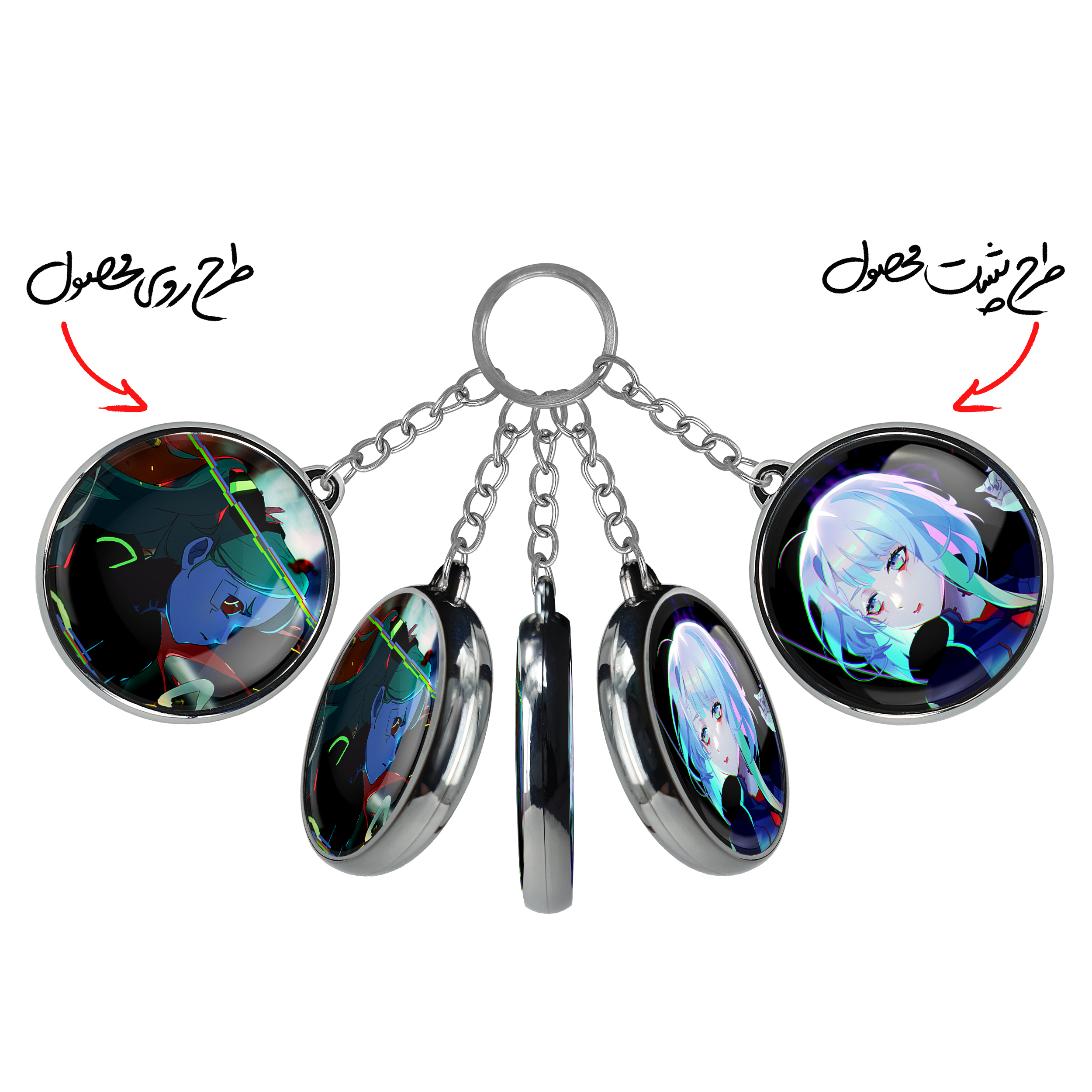 جاکلیدی دوطرفه ربکا انیمه سایبرپانکخندالو محصولی کاربردی و جدید است که در هر دو سمت محصول، تصویری متفاوت اما از یک موضوع چاپ شده و تفاوت اصلی آن با جاکلیدی های یک طرفه در همین است که هر دو سمت پشت و روی جاکلیدی، طرحی دیدنی و جذاب دارد.