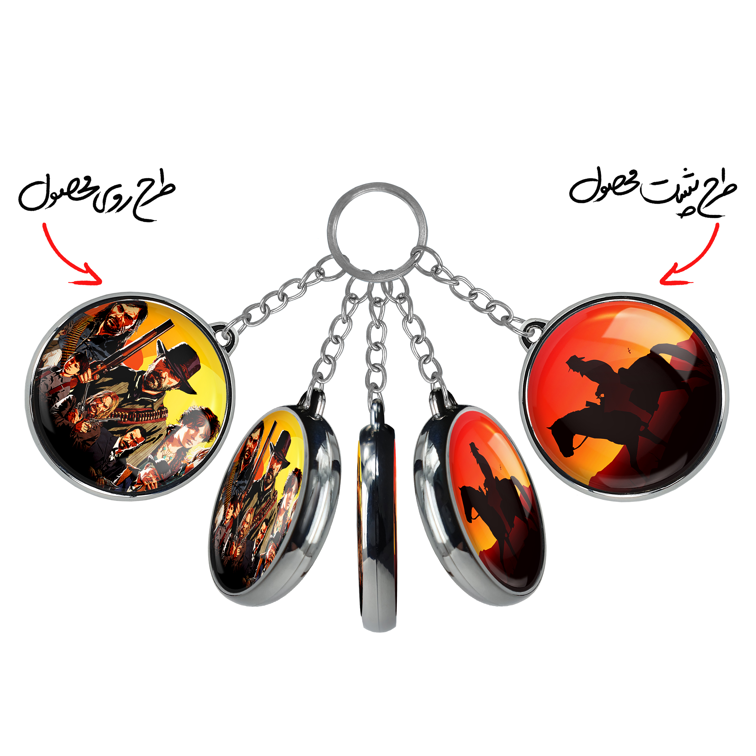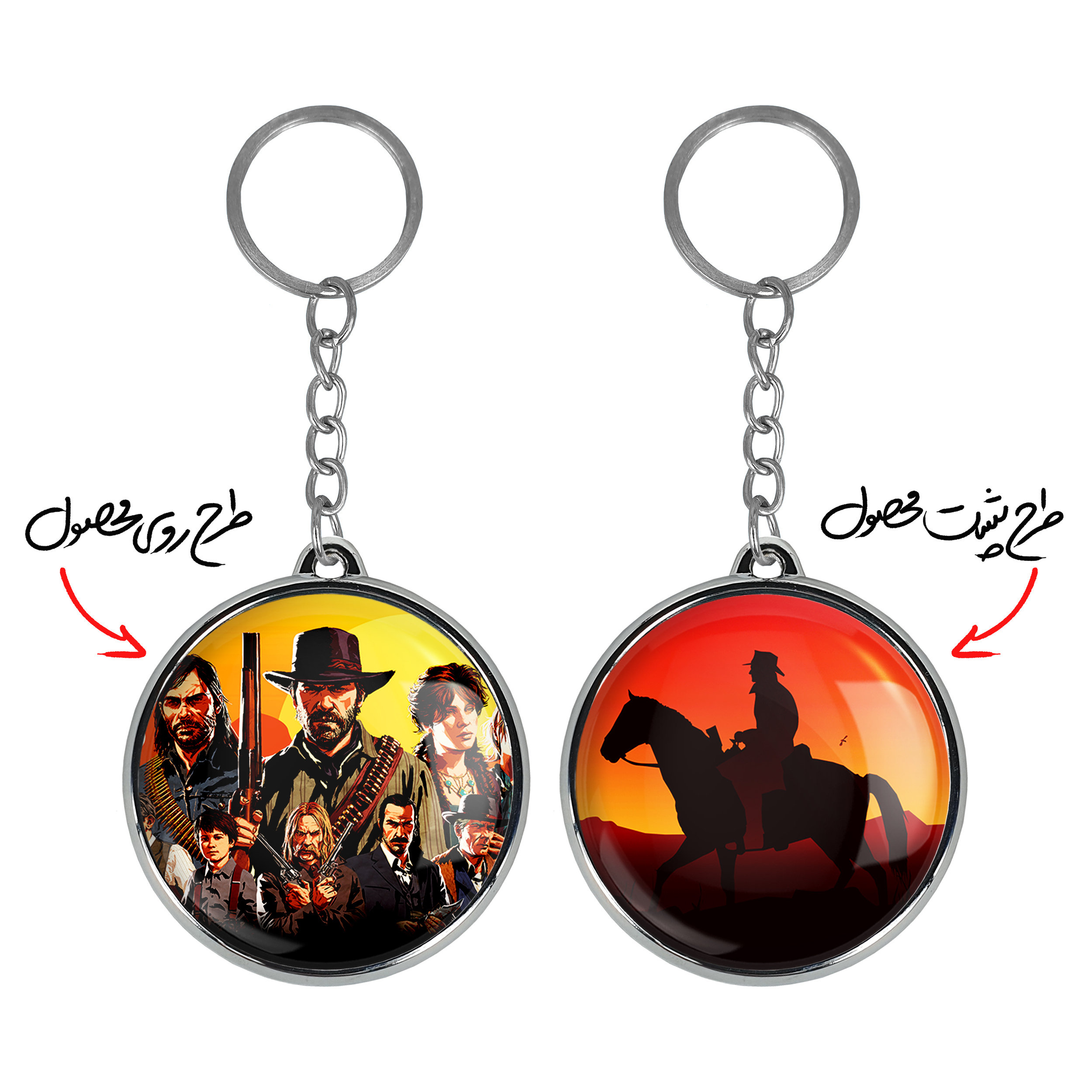 جاکلیدی دوطرفه رد دد Red Dead خندالو محصولی کاربردی و جدید است که در هر دو سمت محصول، تصویری متفاوت اما از یک موضوع چاپ شده و تفاوت اصلی آن با جاکلیدی های یک طرفه در همین است که هر دو سمت پشت و روی جاکلیدی، طرحی دیدنی و جذاب دارد. همچنین رینگ بکار برده شده برای دور طرح ها آبکاری کروم درجه یک و رنگ ثابت است و برخلاف سایر محصولات مشابه، از رنگ های متفرقه و یا سفید استفاده نشده، که این مهم، زیبایی محصول نهایی را چند برابر کرده است. جاکلیدی های دوطرفه رد دد Red Dead با استفاده از روکش سلفون براق ضدخش تولید شده که خاصیت ضدخش بودن آن عمر مفید استفاده از جاکلیدی ها را افزایش میدهد. چاپ جاکلیدی ها با دستگاه های استاندارد و با بهترین سطح کیفیت صورت گرفته و طرح با شفافیتی مثال زدنی و با سلفون چسبی تولید شده است که باعث شده محصول نهایی بدون شکست نور دیده شود. همچنین بسته بندی جذاب و مینیمال جاکلیدی دوطرفه رد دد Red Dead ، آنها را محصولی مناسب هدیه کرده است. زنجیر و حلقه بکار برده شده در جاکلیدی خندالو از نوع حلقه ضخیم و محکم بوده و حین استفاده آسیب نمی بیند.