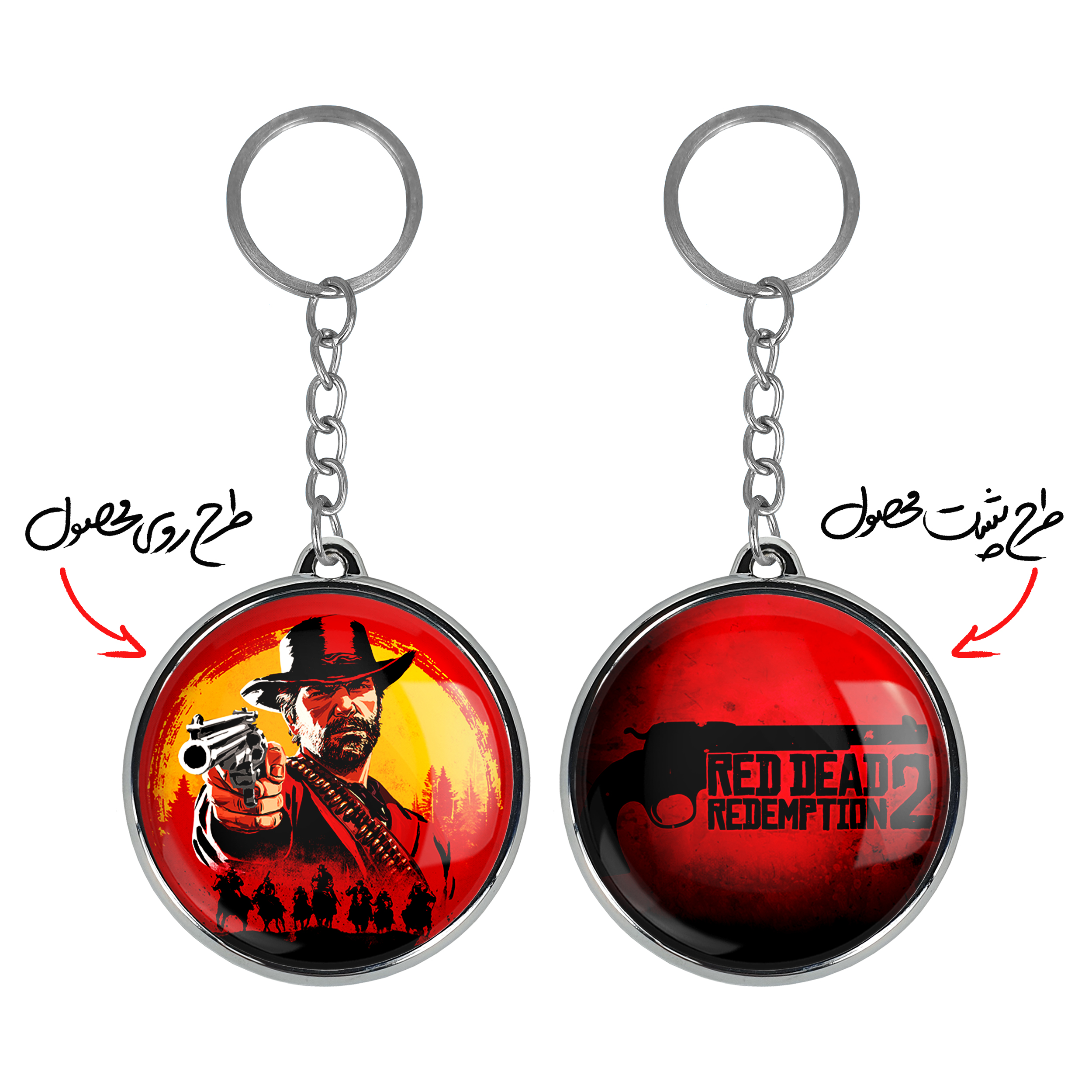 جاکلیدی دوطرفه رد دد Red Dead خندالو محصولی کاربردی و جدید است که در هر دو سمت محصول، تصویری متفاوت اما از یک موضوع چاپ شده و تفاوت اصلی آن با جاکلیدی های یک طرفه در همین است که هر دو سمت پشت و روی جاکلیدی، طرحی دیدنی و جذاب دارد. همچنین رینگ بکار برده شده برای دور طرح ها آبکاری کروم درجه یک و رنگ ثابت است و برخلاف سایر محصولات مشابه، از رنگ های متفرقه و یا سفید استفاده نشده، که این مهم، زیبایی محصول نهایی را چند برابر کرده است. جاکلیدی های دوطرفه رد دد Red Dead با استفاده از روکش سلفون براق ضدخش تولید شده که خاصیت ضدخش بودن آن عمر مفید استفاده از جاکلیدی ها را افزایش میدهد. چاپ جاکلیدی ها با دستگاه های استاندارد و با بهترین سطح کیفیت صورت گرفته و طرح با شفافیتی مثال زدنی و با سلفون چسبی تولید شده است که باعث شده محصول نهایی بدون شکست نور دیده شود. همچنین بسته بندی جذاب و مینیمال جاکلیدی دوطرفه رد دد Red Dead ، آنها را محصولی مناسب هدیه کرده است. زنجیر و حلقه بکار برده شده در جاکلیدی خندالو از نوع حلقه ضخیم و محکم بوده و حین استفاده آسیب نمی بیند.