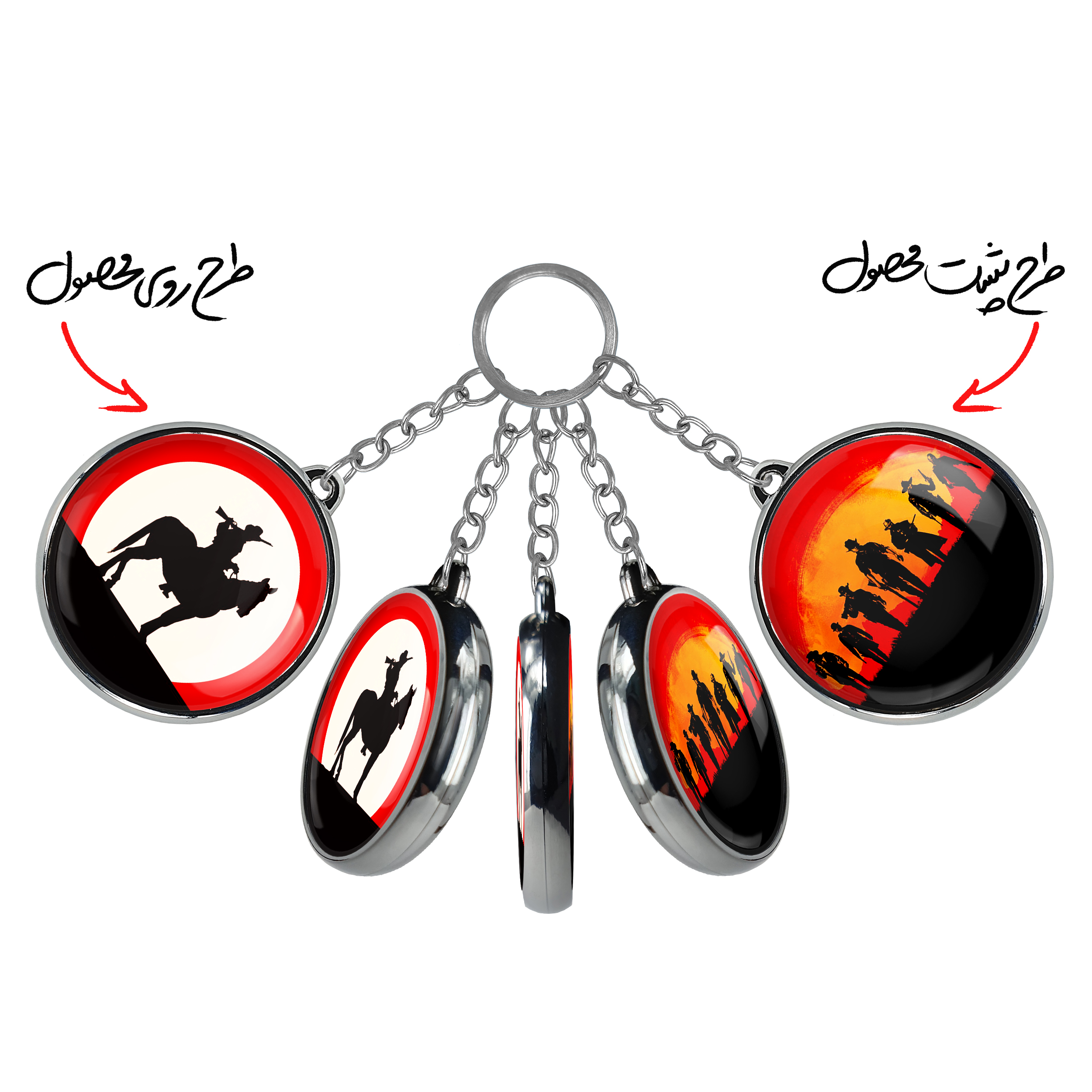 جاکلیدی دوطرفه رد دد Red Dead خندالو محصولی کاربردی و جدید است که در هر دو سمت محصول، تصویری متفاوت اما از یک موضوع چاپ شده و تفاوت اصلی آن با جاکلیدی های یک طرفه در همین است که هر دو سمت پشت و روی جاکلیدی، طرحی دیدنی و جذاب دارد. همچنین رینگ بکار برده شده برای دور طرح ها آبکاری کروم درجه یک و رنگ ثابت است و برخلاف سایر محصولات مشابه، از رنگ های متفرقه و یا سفید استفاده نشده، که این مهم، زیبایی محصول نهایی را چند برابر کرده است. جاکلیدی های دوطرفه رد دد Red Dead با استفاده از روکش سلفون براق ضدخش تولید شده که خاصیت ضدخش بودن آن عمر مفید استفاده از جاکلیدی ها را افزایش میدهد. چاپ جاکلیدی ها با دستگاه های استاندارد و با بهترین سطح کیفیت صورت گرفته و طرح با شفافیتی مثال زدنی و با سلفون چسبی تولید شده است که باعث شده محصول نهایی بدون شکست نور دیده شود. همچنین بسته بندی جذاب و مینیمال جاکلیدی دوطرفه رد دد Red Dead ، آنها را محصولی مناسب هدیه کرده است. زنجیر و حلقه بکار برده شده در جاکلیدی خندالو از نوع حلقه ضخیم و محکم بوده و حین استفاده آسیب نمی بیند.