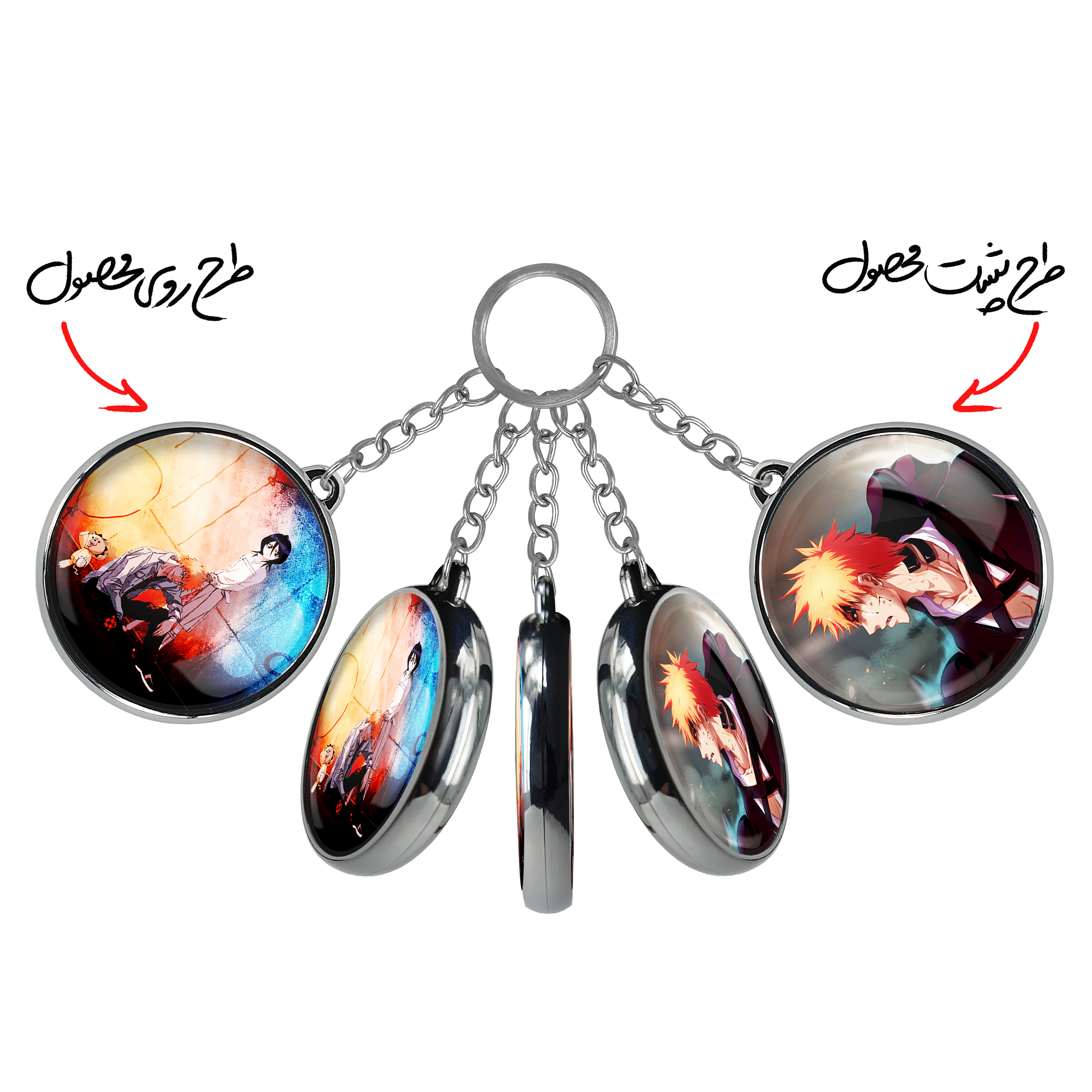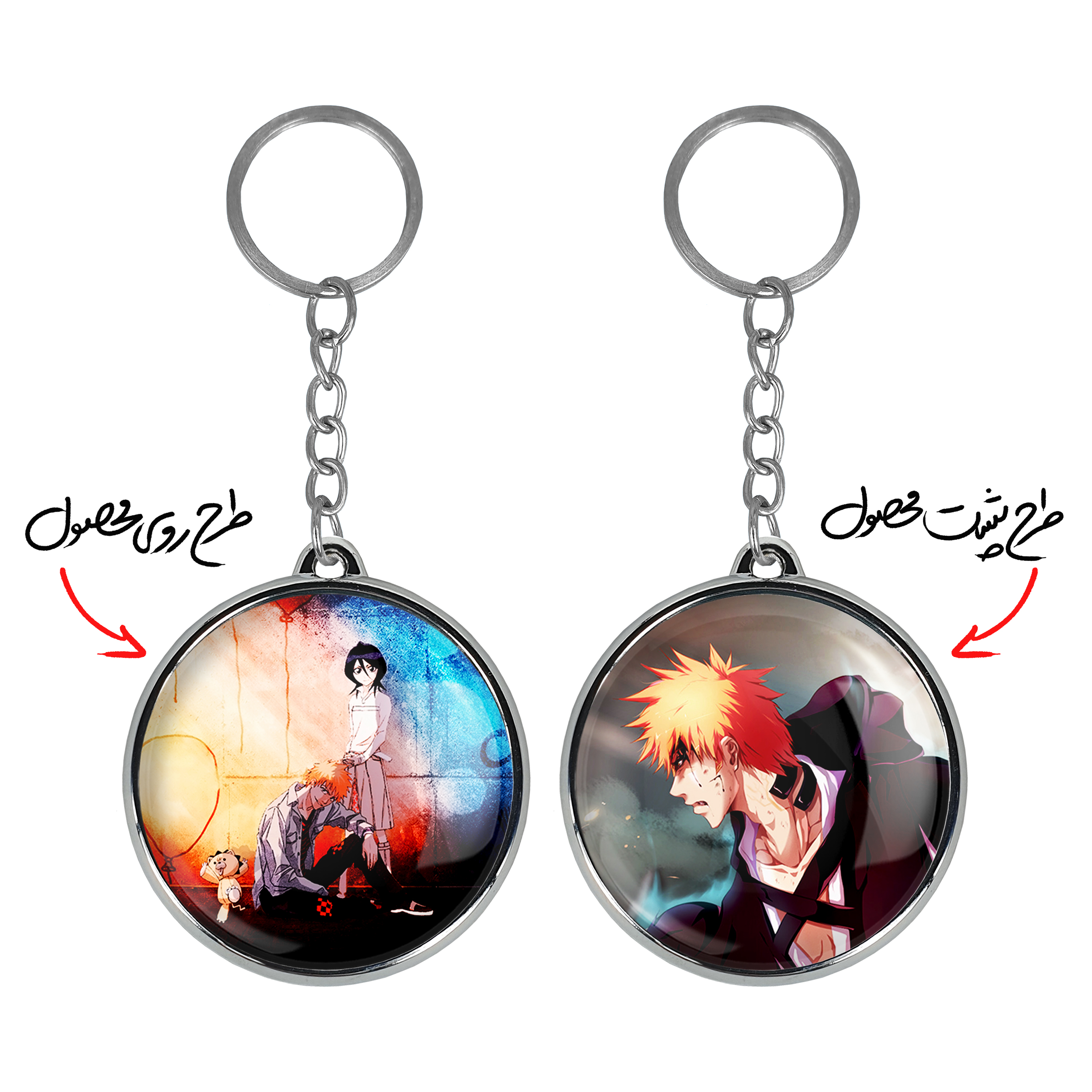 جاکلیدی دوطرفه روکیا و ایچیگو انیمه بلیچ Bleach خندالو محصولی کاربردی و جدید است که در هر دو سمت محصول، تصویری متفاوت اما از یک موضوع چاپ شده و تفاوت اصلی آن با جاکلیدی های یک طرفه در همین است که هر دو سمت پشت و روی جاکلیدی، طرحی دیدنی و جذاب دارد. همچنین رینگ بکار برده شده برای دور طرح ها آبکاری کروم درجه یک و رنگ ثابت است و برخلاف سایر محصولات مشابه، از رنگ های متفرقه و یا سفید استفاده نشده، که این مهم، زیبایی محصول نهایی را چند برابر کرده است. جاکلیدی های دوطرفه روکیا و ایچیگو انیمه بلیچ Bleach با استفاده از روکش سلفون براق ضدخش تولید شده که خاصیت ضدخش بودن آن عمر مفید استفاده از جاکلیدی ها را افزایش میدهد. چاپ جاکلیدی ها با دستگاه های استاندارد و با بهترین سطح کیفیت صورت گرفته و طرح با شفافیتی مثال زدنی و با سلفون چسبی تولید شده است که باعث شده محصول نهایی بدون شکست نور دیده شود. همچنین بسته بندی جذاب و مینیمال جاکلیدی دوطرفه روکیا و ایچیگو انیمه بلیچ Bleach ، آنها را محصولی مناسب هدیه کرده است. زنجیر و حلقه بکار برده شده در جاکلیدی خندالو از نوع حلقه ضخیم و محکم بوده و حین استفاده آسیب نمی بیند.