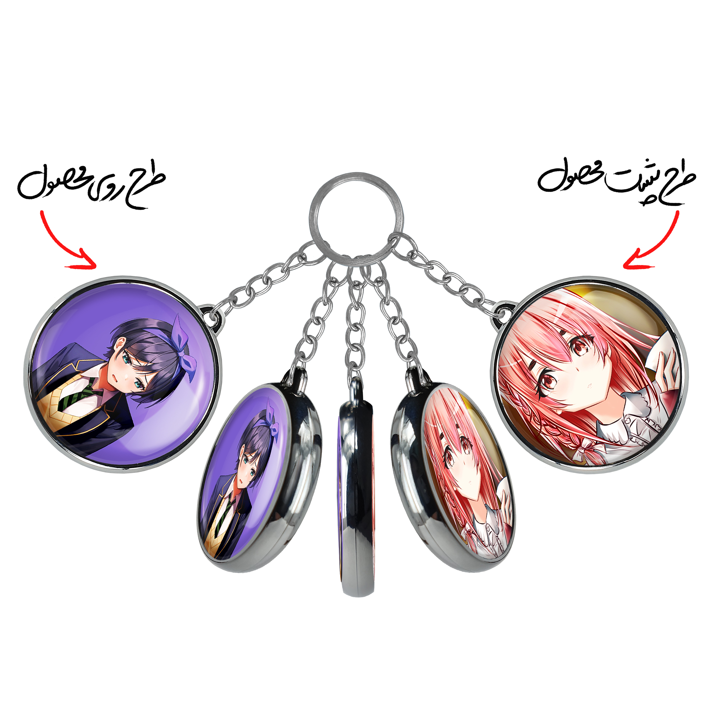 جاکلیدی دوطرفه رکا انیمه کانوجواوکاری خندالو محصولی کاربردی و جدید است که در هر دو سمت محصول، تصویری متفاوت اما از یک موضوع چاپ شده و تفاوت اصلی آن با جاکلیدی های یک طرفه در همین است که هر دو سمت پشت و روی جاکلیدی، طرحی دیدنی و جذاب دارد.