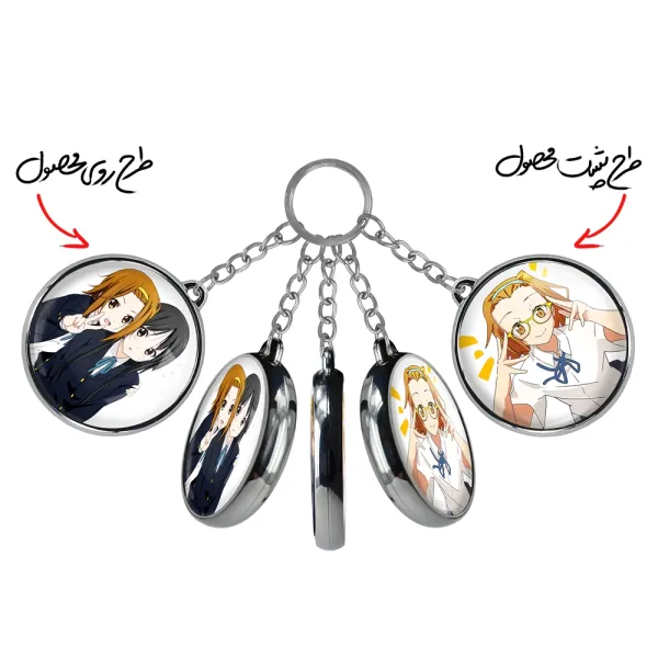 جاکلیدی دوطرفه ریتسو و میو انیمه كي اون خندالو محصولی کاربردی و جدید است که در هر دو سمت محصول، تصویری متفاوت اما از یک موضوع چاپ شده و تفاوت اصلی آن با جاکلیدی های یک طرفه در همین است که هر دو سمت پشت و روی جاکلیدی، طرحی دیدنی و جذاب دارد. همچنین رینگ بکار برده شده برای دور طرح ها آبکاری کروم درجه یک و رنگ ثابت است و برخلاف سایر محصولات مشابه، از رنگ های متفرقه و یا سفید استفاده نشده، که این مهم، زیبایی محصول نهایی را چند برابر کرده است. جاکلیدی های دوطرفه ریتسو و میو انیمه كي اون با استفاده از روکش سلفون براق ضدخش تولید شده که خاصیت ضدخش بودن آن عمر مفید استفاده از جاکلیدی ها را افزایش میدهد. چاپ جاکلیدی ها با دستگاه های استاندارد و با بهترین سطح کیفیت صورت گرفته و طرح با شفافیتی مثال زدنی و با سلفون چسبی تولید شده است که باعث شده محصول نهایی بدون شکست نور دیده شود. همچنین بسته بندی جذاب و مینیمال جاکلیدی دوطرفه ریتسو و میو انیمه كي اون، آنها را محصولی مناسب هدیه کرده است. زنجیر و حلقه بکار برده شده در جاکلیدی خندالو از نوع حلقه ضخیم و محکم بوده و حین استفاده آسیب نمی بیند.