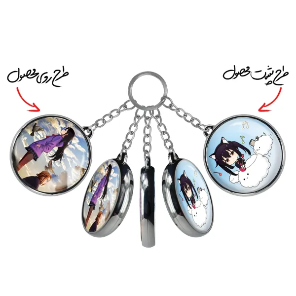 جاکلیدی دوطرفه ریتسو و میو انیمه كي اون خندالو محصولی کاربردی و جدید است که در هر دو سمت محصول، تصویری متفاوت اما از یک موضوع چاپ شده و تفاوت اصلی آن با جاکلیدی های یک طرفه در همین است که هر دو سمت پشت و روی جاکلیدی، طرحی دیدنی و جذاب دارد. همچنین رینگ بکار برده شده برای دور طرح ها آبکاری کروم درجه یک و رنگ ثابت است و برخلاف سایر محصولات مشابه، از رنگ های متفرقه و یا سفید استفاده نشده، که این مهم، زیبایی محصول نهایی را چند برابر کرده است. جاکلیدی های دوطرفه ریتسو و میو انیمه كي اون با استفاده از روکش سلفون براق ضدخش تولید شده که خاصیت ضدخش بودن آن عمر مفید استفاده از جاکلیدی ها را افزایش میدهد. چاپ جاکلیدی ها با دستگاه های استاندارد و با بهترین سطح کیفیت صورت گرفته و طرح با شفافیتی مثال زدنی و با سلفون چسبی تولید شده است که باعث شده محصول نهایی بدون شکست نور دیده شود. همچنین بسته بندی جذاب و مینیمال جاکلیدی دوطرفه ریتسو و میو انیمه كي اون، آنها را محصولی مناسب هدیه کرده است. زنجیر و حلقه بکار برده شده در جاکلیدی خندالو از نوع حلقه ضخیم و محکم بوده و حین استفاده آسیب نمی بیند.