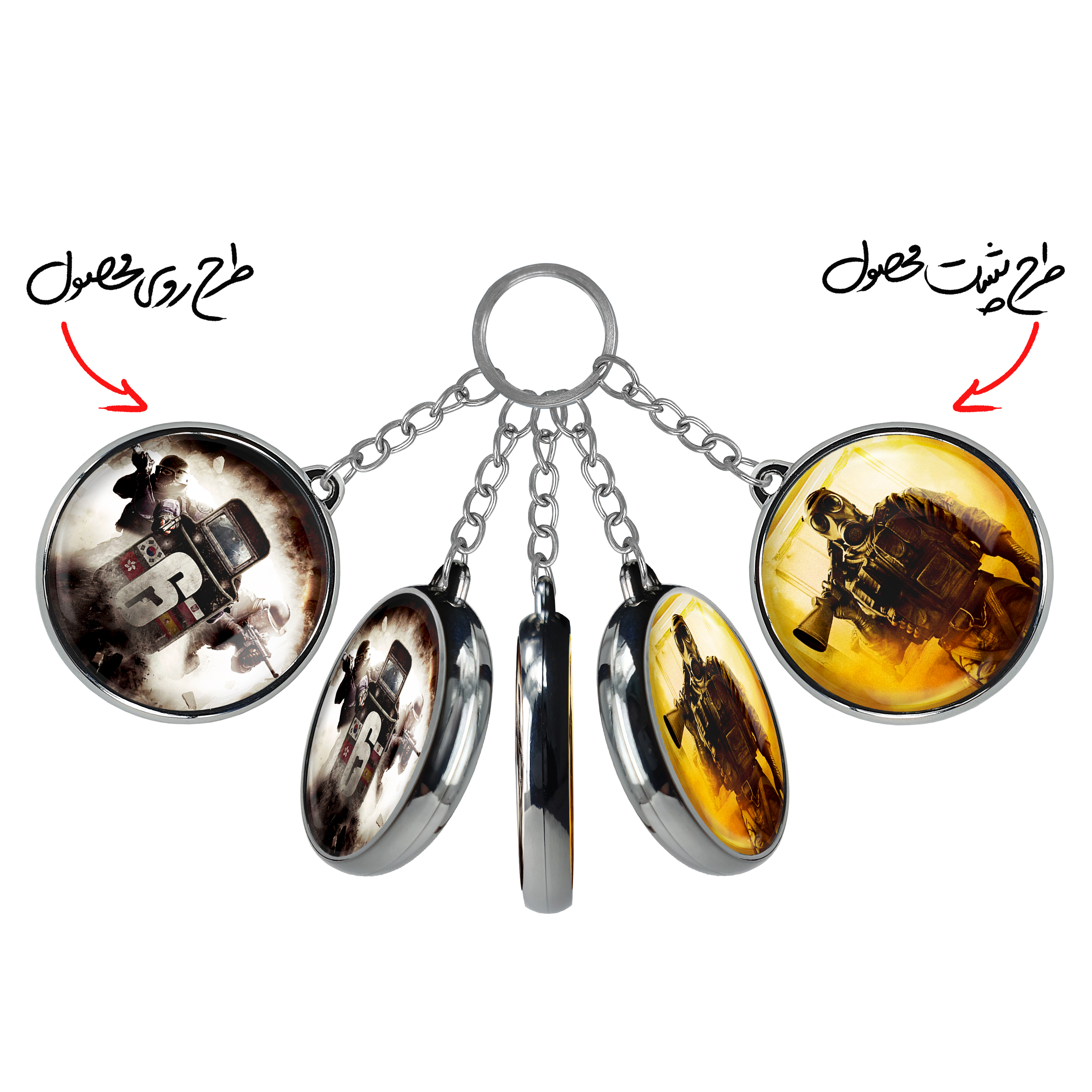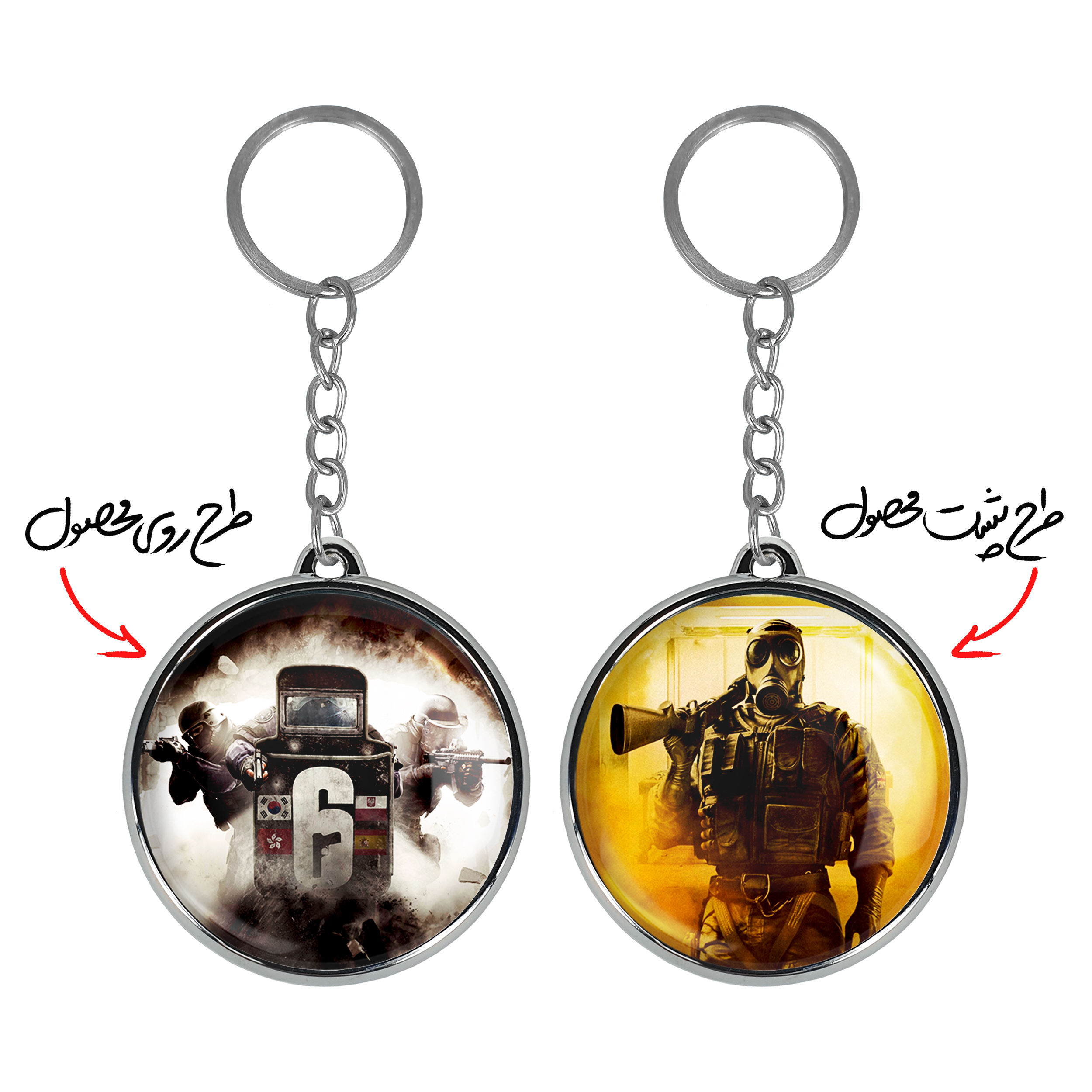 جاکلیدی دوطرفه رینبو سیکس Rainbow Six خندالو محصولی کاربردی و جدید است که در هر دو سمت محصول، تصویری متفاوت اما از یک موضوع چاپ شده و تفاوت اصلی آن با جاکلیدی های یک طرفه در همین است که هر دو سمت پشت و روی جاکلیدی، طرحی دیدنی و جذاب دارد.
