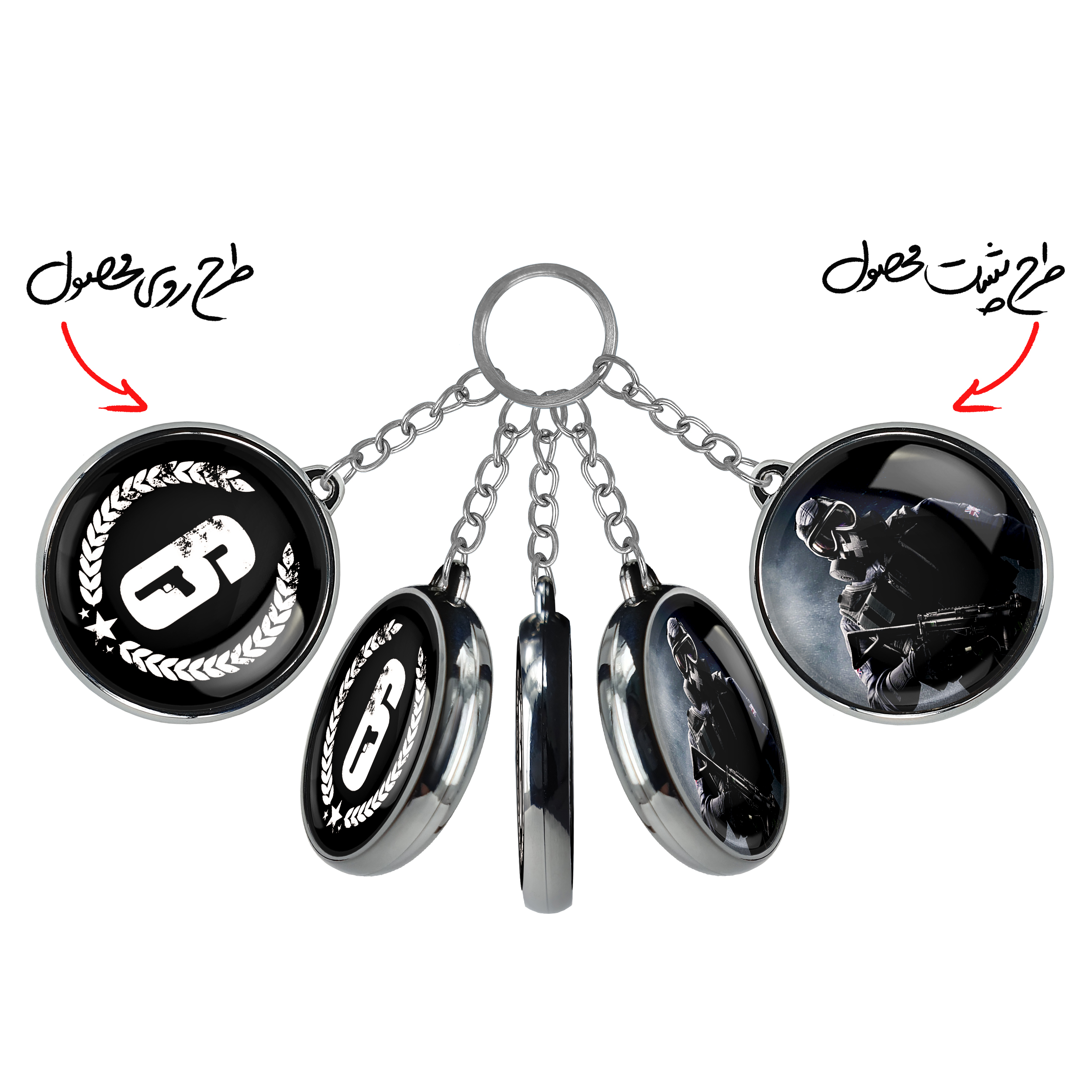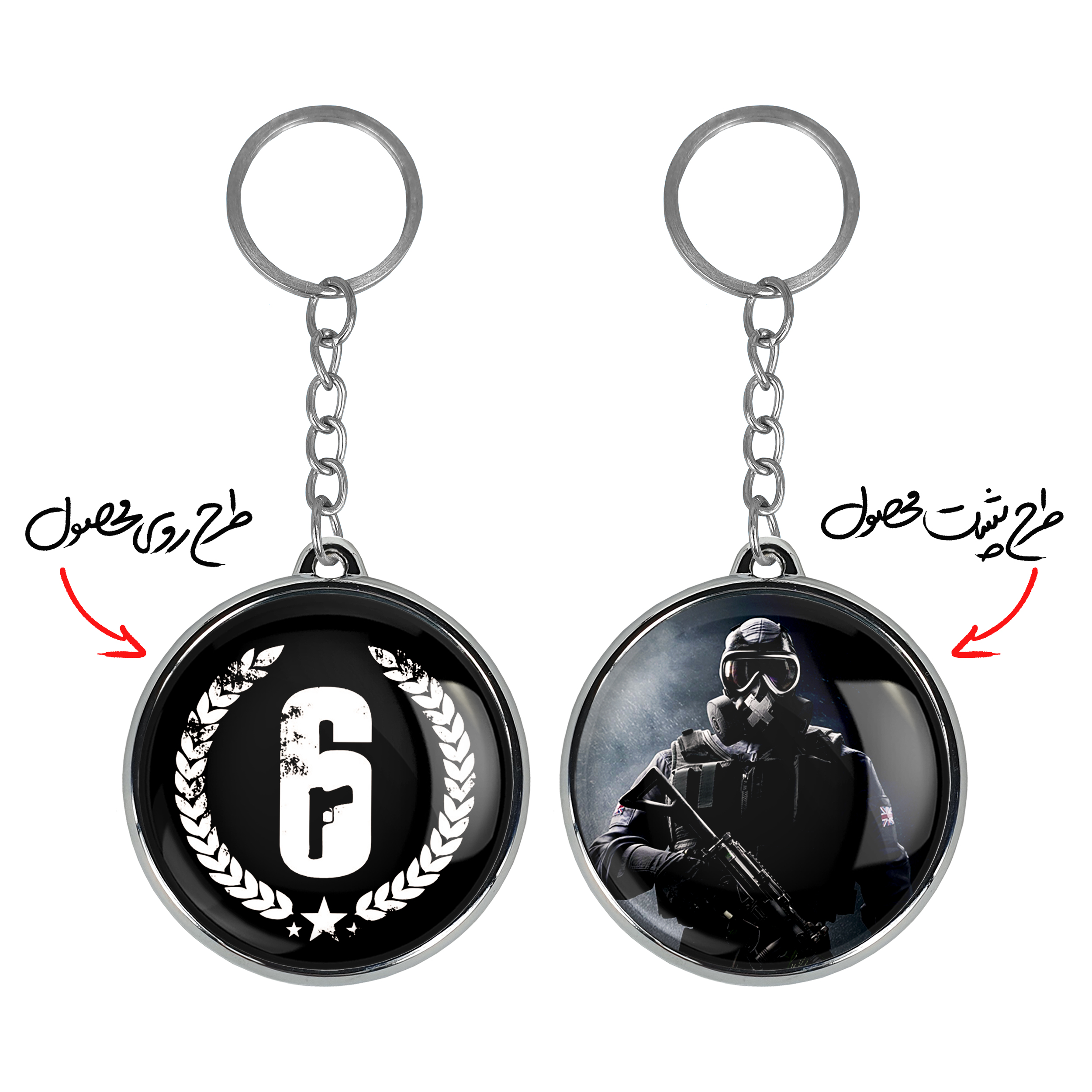 جاکلیدی دوطرفه رینبو سیکس Rainbow Six خندالو محصولی کاربردی و جدید است که در هر دو سمت محصول، تصویری متفاوت اما از یک موضوع چاپ شده و تفاوت اصلی آن با جاکلیدی های یک طرفه در همین است که هر دو سمت پشت و روی جاکلیدی، طرحی دیدنی و جذاب دارد.