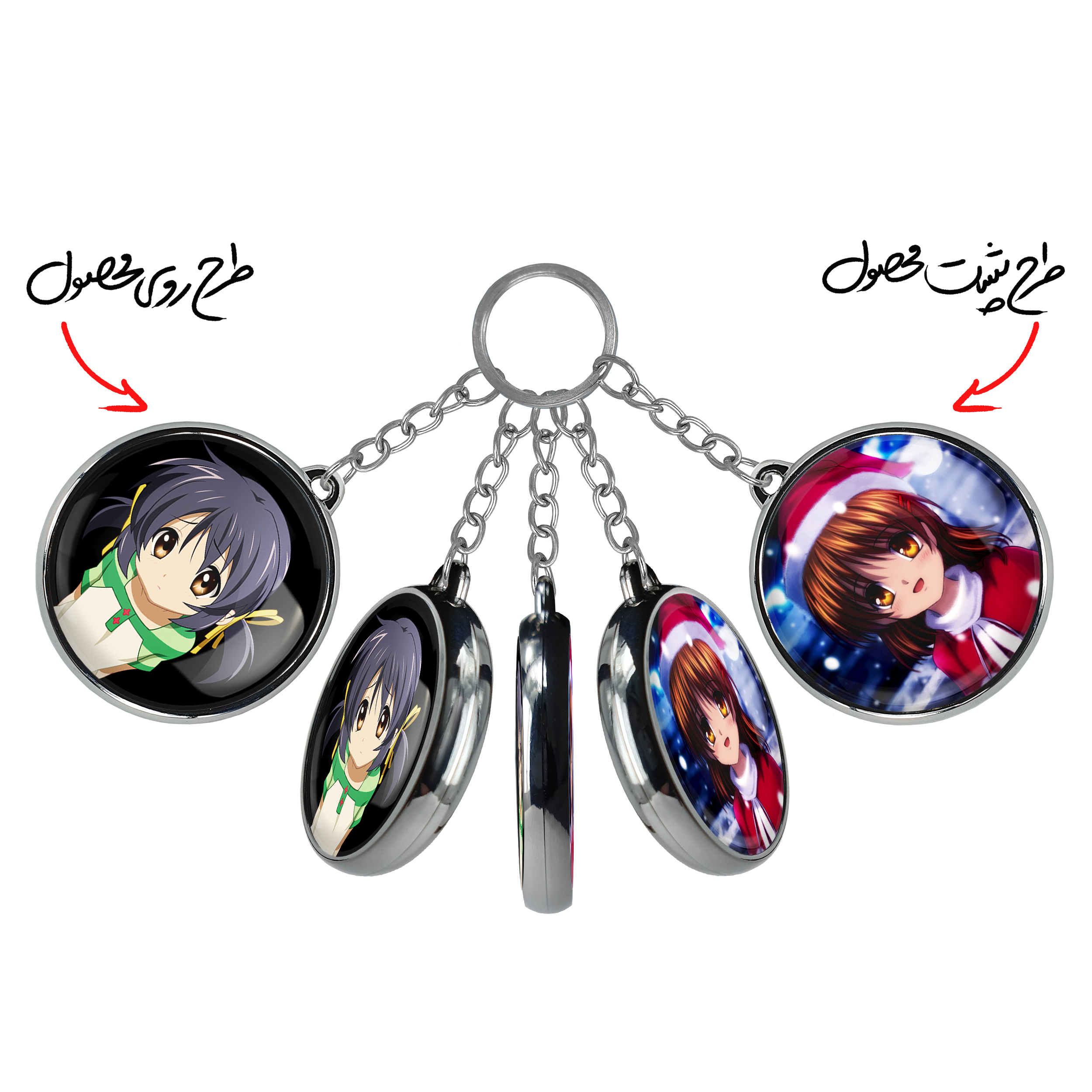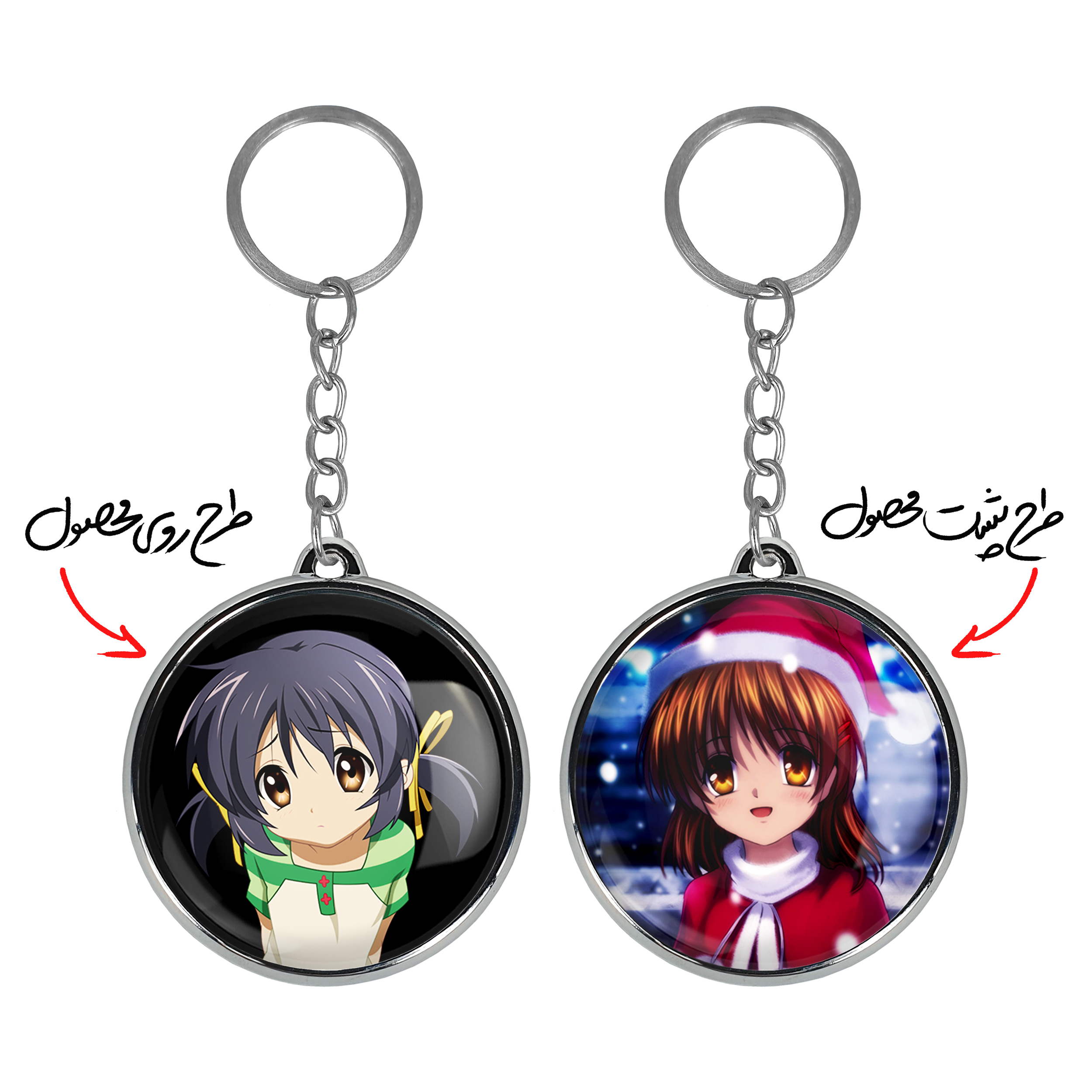 جاکلیدی دوطرفه ریو انیمه کلاناد Clannad خندالو محصولی کاربردی و جدید است که در هر دو سمت محصول، تصویری متفاوت اما از یک موضوع چاپ شده و تفاوت اصلی آن با جاکلیدی های یک طرفه در همین است که هر دو سمت پشت و روی جاکلیدی، طرحی دیدنی و جذاب دارد. همچنین رینگ بکار برده شده برای دور طرح ها آبکاری کروم درجه یک و رنگ ثابت است و برخلاف سایر محصولات مشابه، از رنگ های متفرقه و یا سفید استفاده نشده، که این مهم، زیبایی محصول نهایی را چند برابر کرده است. جاکلیدی های دوطرفه ریو انیمه کلاناد Clannad با استفاده از روکش سلفون براق ضدخش تولید شده که خاصیت ضدخش بودن آن عمر مفید استفاده از جاکلیدی ها را افزایش میدهد. چاپ جاکلیدی ها با دستگاه های استاندارد و با بهترین سطح کیفیت صورت گرفته و طرح با شفافیتی مثال زدنی و با سلفون چسبی تولید شده است که باعث شده محصول نهایی بدون شکست نور دیده شود. همچنین بسته بندی جذاب و مینیمال جاکلیدی دوطرفه ریو انیمه کلاناد Clannad ، آنها را محصولی مناسب هدیه کرده است. زنجیر و حلقه بکار برده شده در جاکلیدی خندالو از نوع حلقه ضخیم و محکم بوده و حین استفاده آسیب نمی بیند.
