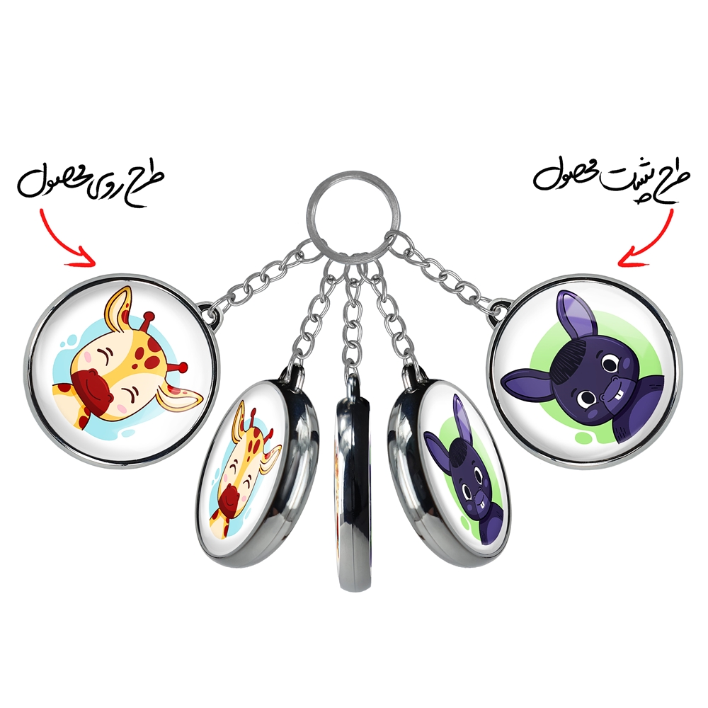 جاکلیدی دوطرفه زرافه حیوانات بامزه خندالو محصولی کاربردی و جدید است که در هر دو سمت محصول، تصویری متفاوت اما از یک موضوع چاپ شده و تفاوت اصلی آن با جاکلیدی های یک طرفه در همین است که هر دو سمت پشت و روی جاکلیدی، طرحی دیدنی و جذاب دارد. همچنین رینگ بکار برده شده برای دور طرح ها آبکاری کروم درجه یک و رنگ ثابت است و برخلاف سایر محصولات مشابه، از رنگ های متفرقه و یا سفید استفاده نشده، که این مهم، زیبایی محصول نهایی را چند برابر کرده است. جاکلیدی های دوطرفه زرافه حیوانات بامزه با استفاده از روکش سلفون براق ضدخش تولید شده که خاصیت ضدخش بودن آن عمر مفید استفاده از جاکلیدی ها را افزایش میدهد. چاپ جاکلیدی ها با دستگاه های استاندارد و با بهترین سطح کیفیت صورت گرفته و طرح با شفافیتی مثال زدنی و با سلفون چسبی تولید شده است که باعث شده محصول نهایی بدون شکست نور دیده شود. همچنین بسته بندی جذاب و مینیمال جاکلیدی دوطرفه زرافه حیوانات بامزه، آنها را محصولی مناسب هدیه کرده است. زنجیر و حلقه بکار برده شده در جاکلیدی خندالو از نوع حلقه ضخیم و محکم بوده و حین استفاده آسیب نمی بیند.