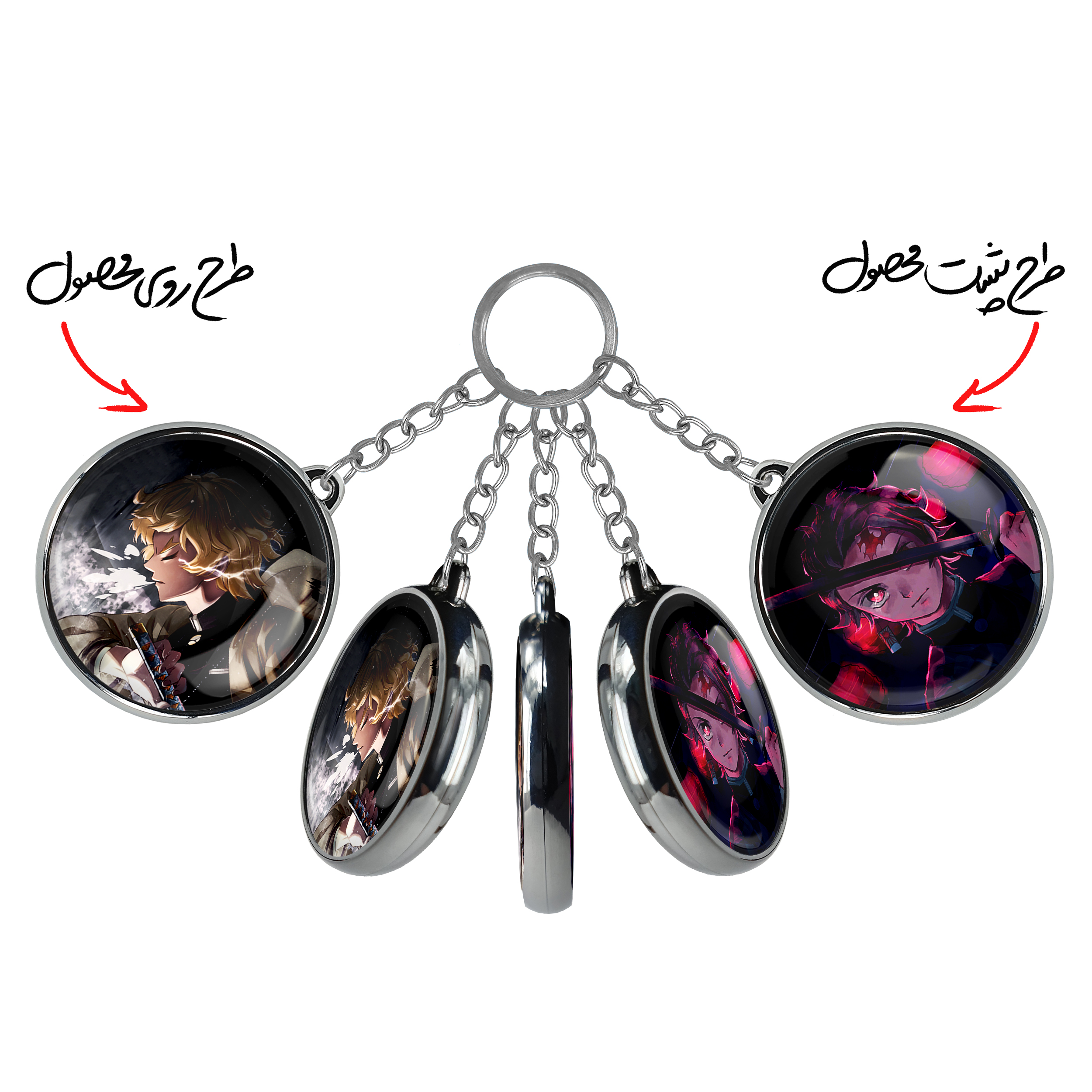 جاکلیدی دوطرفه زنیتسو انیمه شیطان کش خندالو محصولی کاربردی و جدید است که در هر دو سمت محصول، تصویری متفاوت اما از یک موضوع چاپ شده و تفاوت اصلی آن با جاکلیدی های یک طرفه در همین است که هر دو سمت پشت و روی جاکلیدی، طرحی دیدنی و جذاب دارد.
