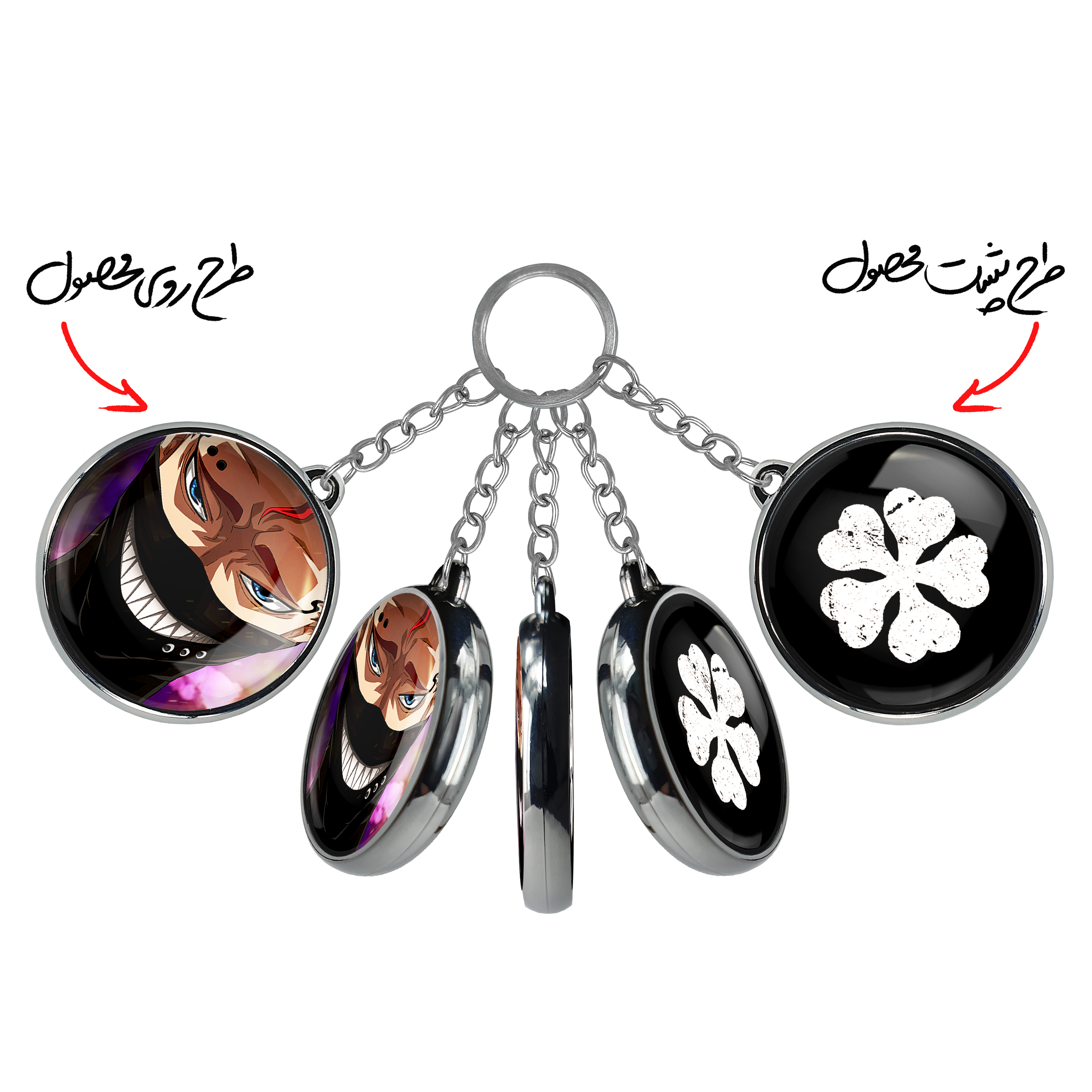 جاکلیدی دوطرفه زورا آییدئل انیمه بلک کلاور Black Clover خندالو محصولی کاربردی و جدید است که در هر دو سمت محصول، تصویری متفاوت اما از یک موضوع چاپ شده و تفاوت اصلی آن با جاکلیدی های یک طرفه در همین است که هر دو سمت پشت و روی جاکلیدی، طرحی دیدنی و جذاب دارد. همچنین رینگ بکار برده شده برای دور طرح ها آبکاری کروم درجه یک و رنگ ثابت است و برخلاف سایر محصولات مشابه، از رنگ های متفرقه و یا سفید استفاده نشده، که این مهم، زیبایی محصول نهایی را چند برابر کرده است. جاکلیدی های دوطرفه زورا آییدئل انیمه بلک کلاور Black Clover با استفاده از روکش سلفون براق ضدخش تولید شده که خاصیت ضدخش بودن آن عمر مفید استفاده از جاکلیدی ها را افزایش میدهد. چاپ جاکلیدی ها با دستگاه های استاندارد و با بهترین سطح کیفیت صورت گرفته و طرح با شفافیتی مثال زدنی و با سلفون چسبی تولید شده است که باعث شده محصول نهایی بدون شکست نور دیده شود. همچنین بسته بندی جذاب و مینیمال جاکلیدی دوطرفه زورا آییدئل انیمه بلک کلاور Black Clover ، آنها را محصولی مناسب هدیه کرده است. زنجیر و حلقه بکار برده شده در جاکلیدی خندالو از نوع حلقه ضخیم و محکم بوده و حین استفاده آسیب نمی بیند.