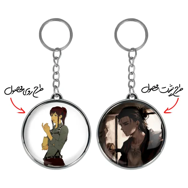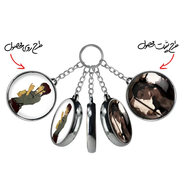 جاکلیدی دوطرفه ساشا انیمه اتک آن تایتان Attack on Titan خندالو محصولی کاربردی و جدید است که در هر دو سمت محصول، تصویری متفاوت اما از یک موضوع چاپ شده و تفاوت اصلی آن با جاکلیدی های یک طرفه در همین است که هر دو سمت پشت و روی جاکلیدی، طرحی دیدنی و جذاب دارد. همچنین رینگ بکار برده شده برای دور طرح ها آبکاری کروم درجه یک و رنگ ثابت است و برخلاف سایر محصولات مشابه، از رنگ های متفرقه و یا سفید استفاده نشده، که این مهم، زیبایی محصول نهایی را چند برابر کرده است. جاکلیدی های دوطرفه ساشا انیمه اتک آن تایتان Attack on Titan با استفاده از روکش سلفون براق ضدخش تولید شده که خاصیت ضدخش بودن آن عمر مفید استفاده از جاکلیدی ها را افزایش میدهد. چاپ جاکلیدی ها با دستگاه های استاندارد و با بهترین سطح کیفیت صورت گرفته و طرح با شفافیتی مثال زدنی و با سلفون چسبی تولید شده است که باعث شده محصول نهایی بدون شکست نور دیده شود. همچنین بسته بندی جذاب و مینیمال جاکلیدی دوطرفه ساشا انیمه اتک آن تایتان Attack on Titan ، آنها را محصولی مناسب هدیه کرده است. زنجیر و حلقه بکار برده شده در جاکلیدی خندالو از نوع حلقه ضخیم و محکم بوده و حین استفاده آسیب نمی بیند.