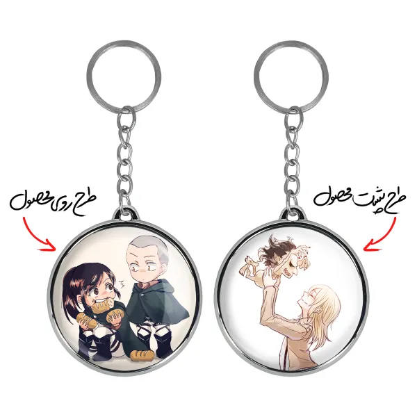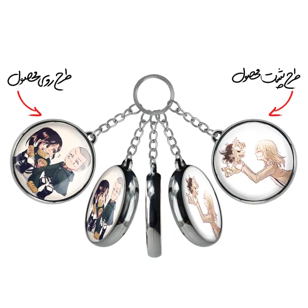 جاکلیدی دوطرفه ساشا و کانی انیمه اتک آن تایتان Attack on Titan خندالو محصولی کاربردی و جدید است که در هر دو سمت محصول، تصویری متفاوت اما از یک موضوع چاپ شده و تفاوت اصلی آن با جاکلیدی های یک طرفه در همین است که هر دو سمت پشت و روی جاکلیدی، طرحی دیدنی و جذاب دارد. همچنین رینگ بکار برده شده برای دور طرح ها آبکاری کروم درجه یک و رنگ ثابت است و برخلاف سایر محصولات مشابه، از رنگ های متفرقه و یا سفید استفاده نشده، که این مهم، زیبایی محصول نهایی را چند برابر کرده است. جاکلیدی های دوطرفه ساشا و کانی انیمه اتک آن تایتان Attack on Titan با استفاده از روکش سلفون براق ضدخش تولید شده که خاصیت ضدخش بودن آن عمر مفید استفاده از جاکلیدی ها را افزایش میدهد. چاپ جاکلیدی ها با دستگاه های استاندارد و با بهترین سطح کیفیت صورت گرفته و طرح با شفافیتی مثال زدنی و با سلفون چسبی تولید شده است که باعث شده محصول نهایی بدون شکست نور دیده شود. همچنین بسته بندی جذاب و مینیمال جاکلیدی دوطرفه ساشا و کانی انیمه اتک آن تایتان Attack on Titan ، آنها را محصولی مناسب هدیه کرده است. زنجیر و حلقه بکار برده شده در جاکلیدی خندالو از نوع حلقه ضخیم و محکم بوده و حین استفاده آسیب نمی بیند.