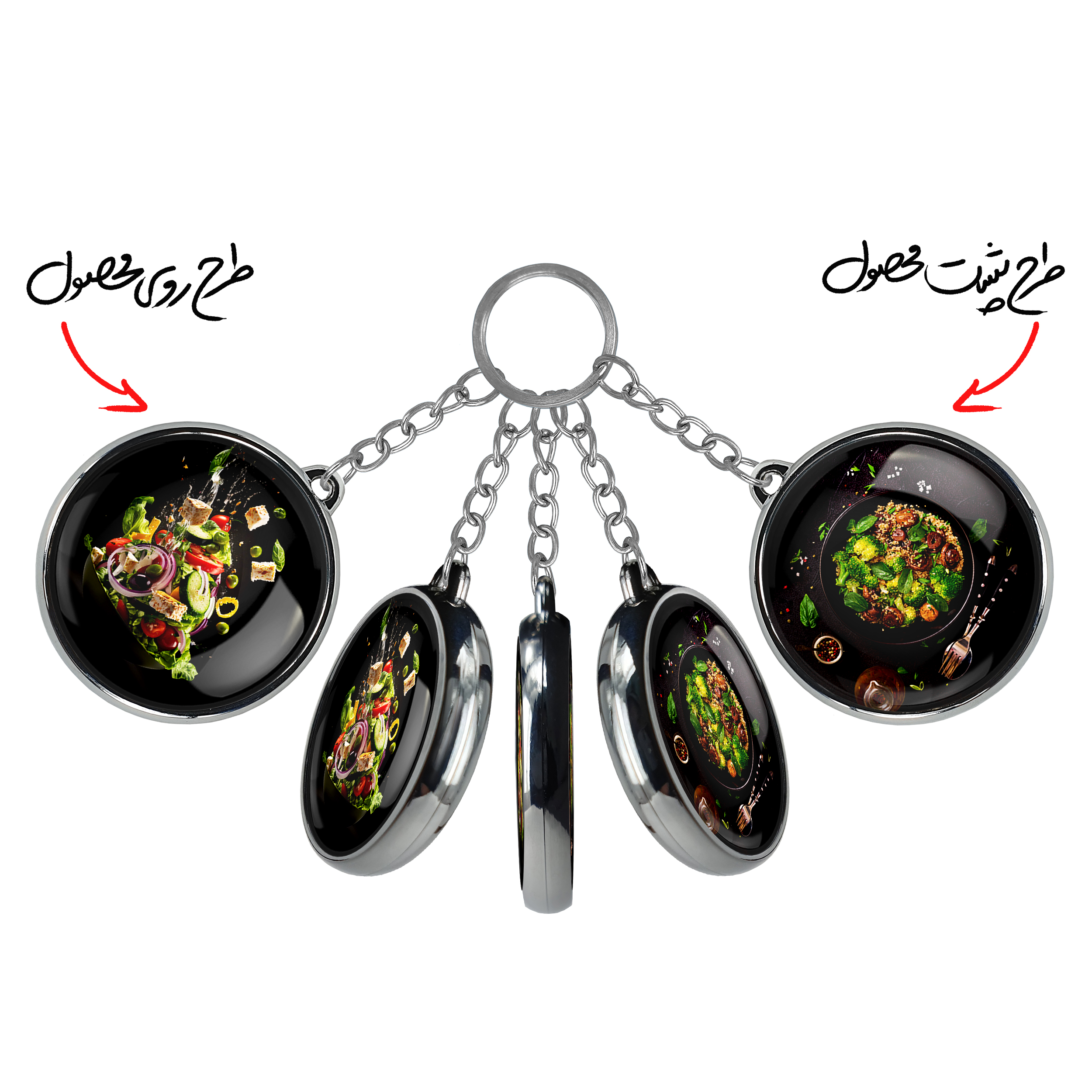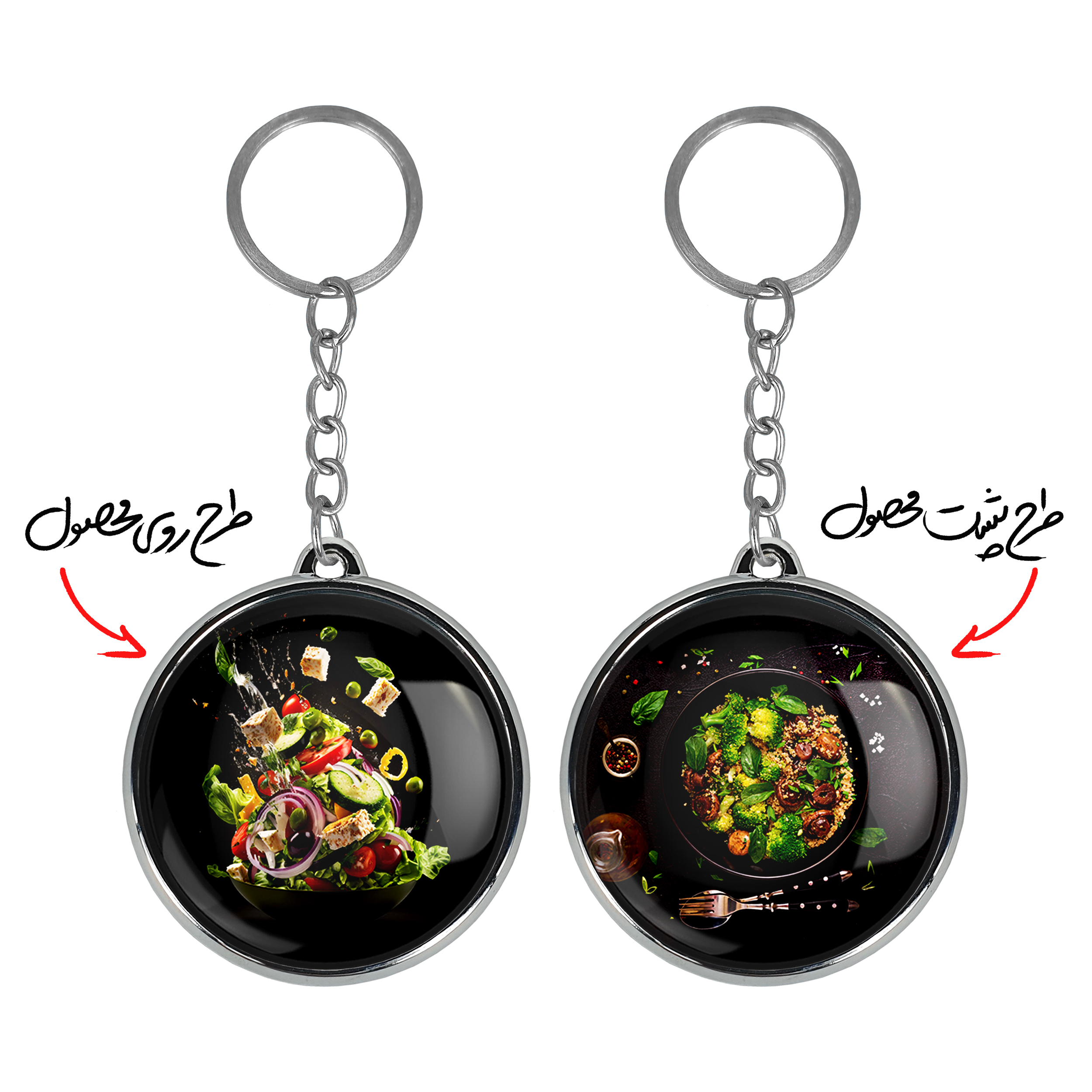جاکلیدی دوطرفه سالاد خندالو محصولی کاربردی و جدید است که در هر دو سمت محصول، تصویری متفاوت اما از یک موضوع چاپ شده و تفاوت اصلی آن با جاکلیدی های یک طرفه در همین است که هر دو سمت پشت و روی جاکلیدی، طرحی دیدنی و جذاب دارد.