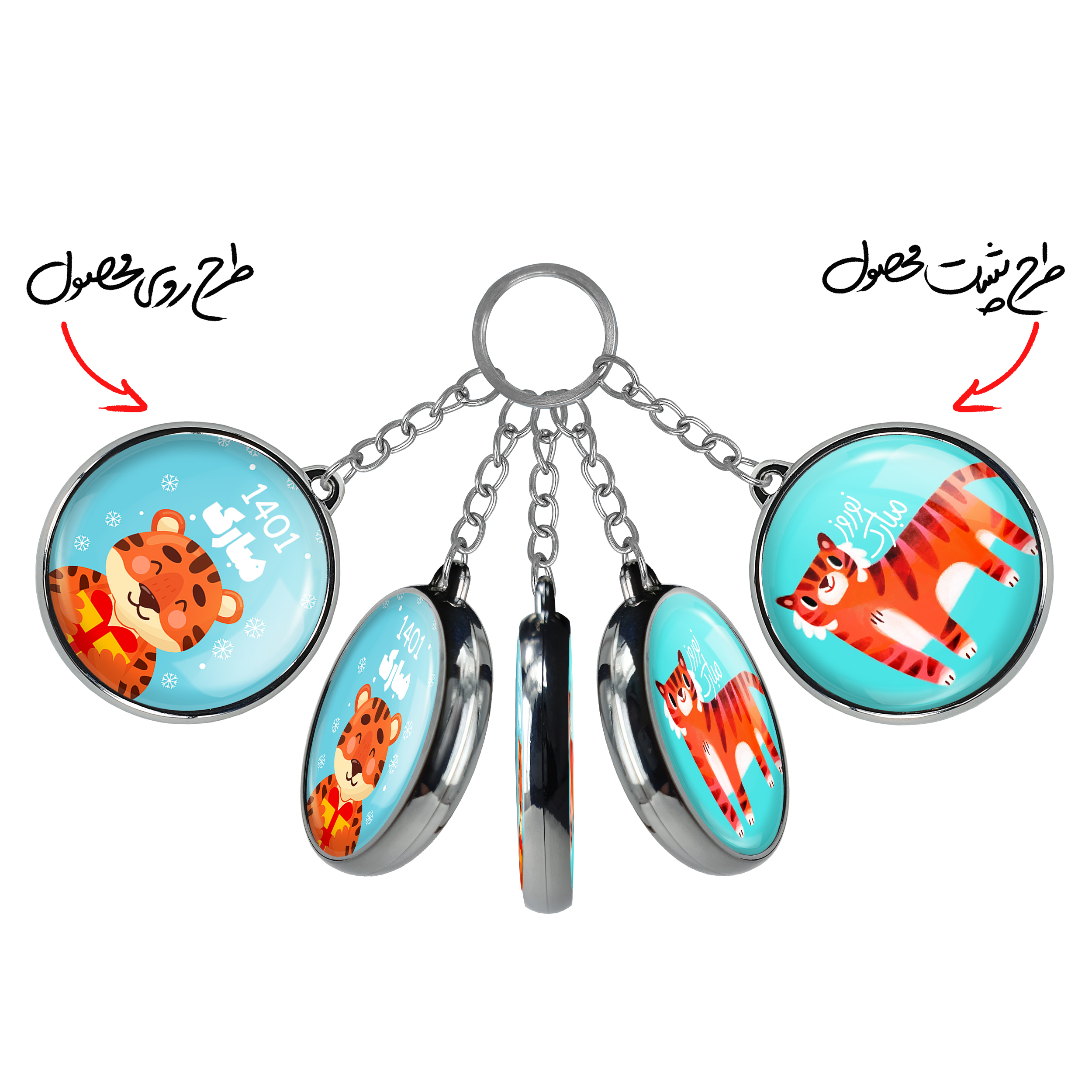 جاکلیدی دوطرفه سال ببر خندالو محصولی کاربردی و جدید است که در هر دو سمت محصول، تصویری متفاوت اما از یک موضوع چاپ شده و تفاوت اصلی آن با جاکلیدی های یک طرفه در همین است که هر دو سمت پشت و روی جاکلیدی، طرحی دیدنی و جذاب دارد.