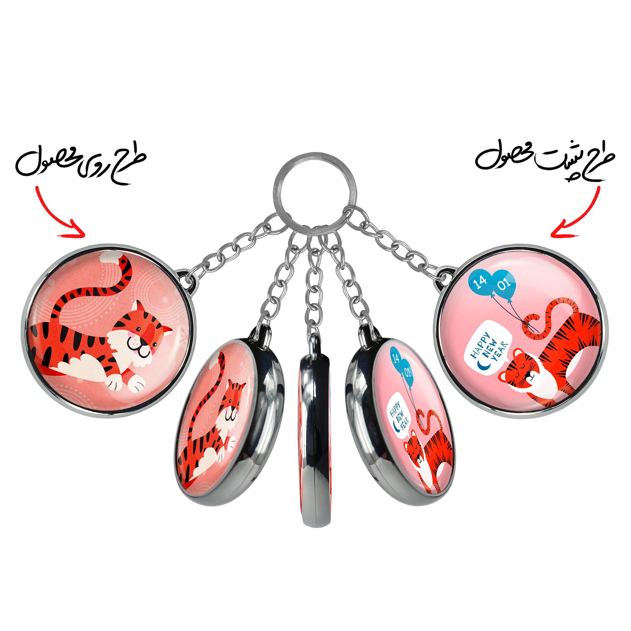 جاکلیدی دوطرفه سال ببر خندالو محصولی کاربردی و جدید است که در هر دو سمت محصول، تصویری متفاوت اما از یک موضوع چاپ شده و تفاوت اصلی آن با جاکلیدی های یک طرفه در همین است که هر دو سمت پشت و روی جاکلیدی، طرحی دیدنی و جذاب دارد.
