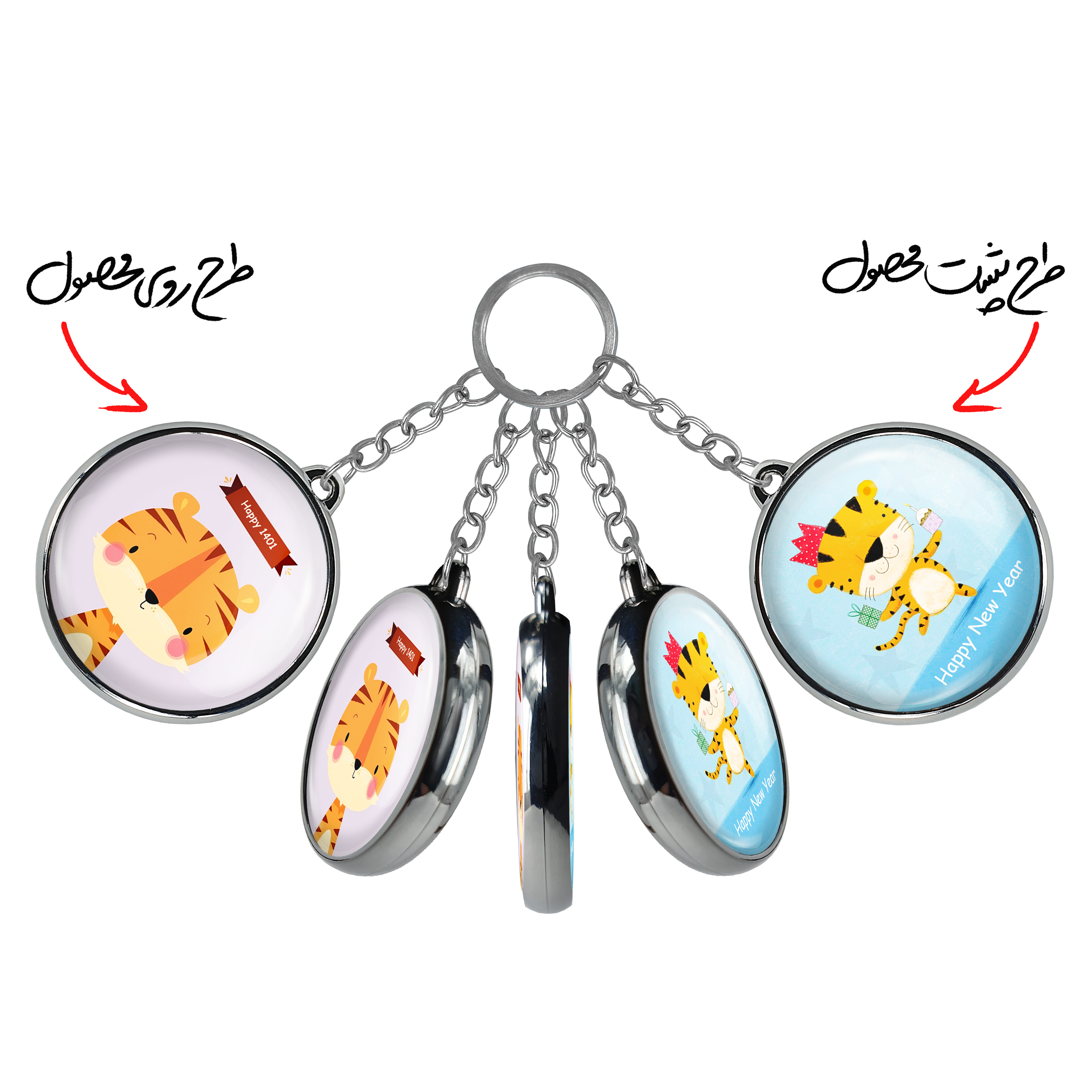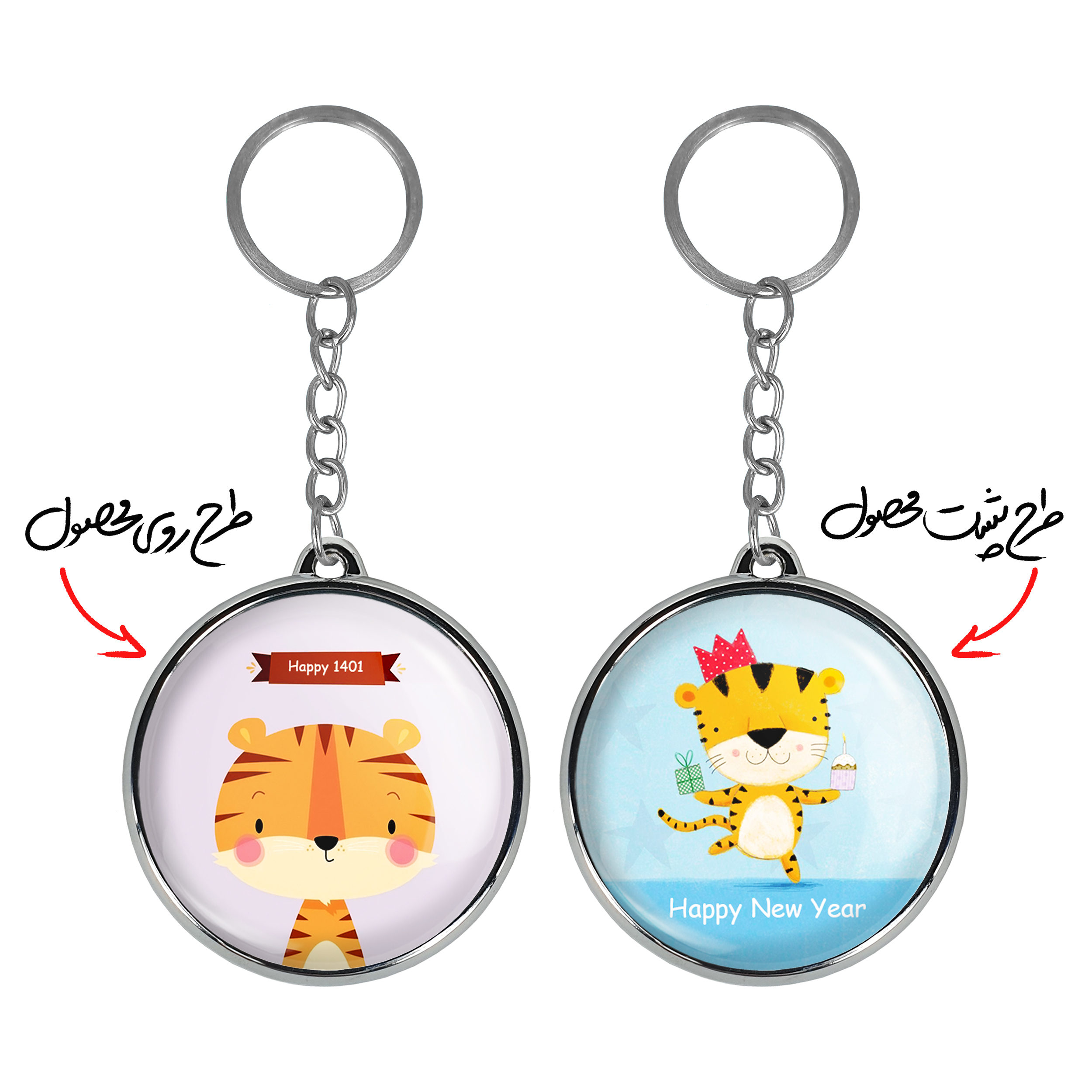جاکلیدی دوطرفه سال ببر خندالو محصولی کاربردی و جدید است که در هر دو سمت محصول، تصویری متفاوت اما از یک موضوع چاپ شده و تفاوت اصلی آن با جاکلیدی های یک طرفه در همین است که هر دو سمت پشت و روی جاکلیدی، طرحی دیدنی و جذاب دارد.