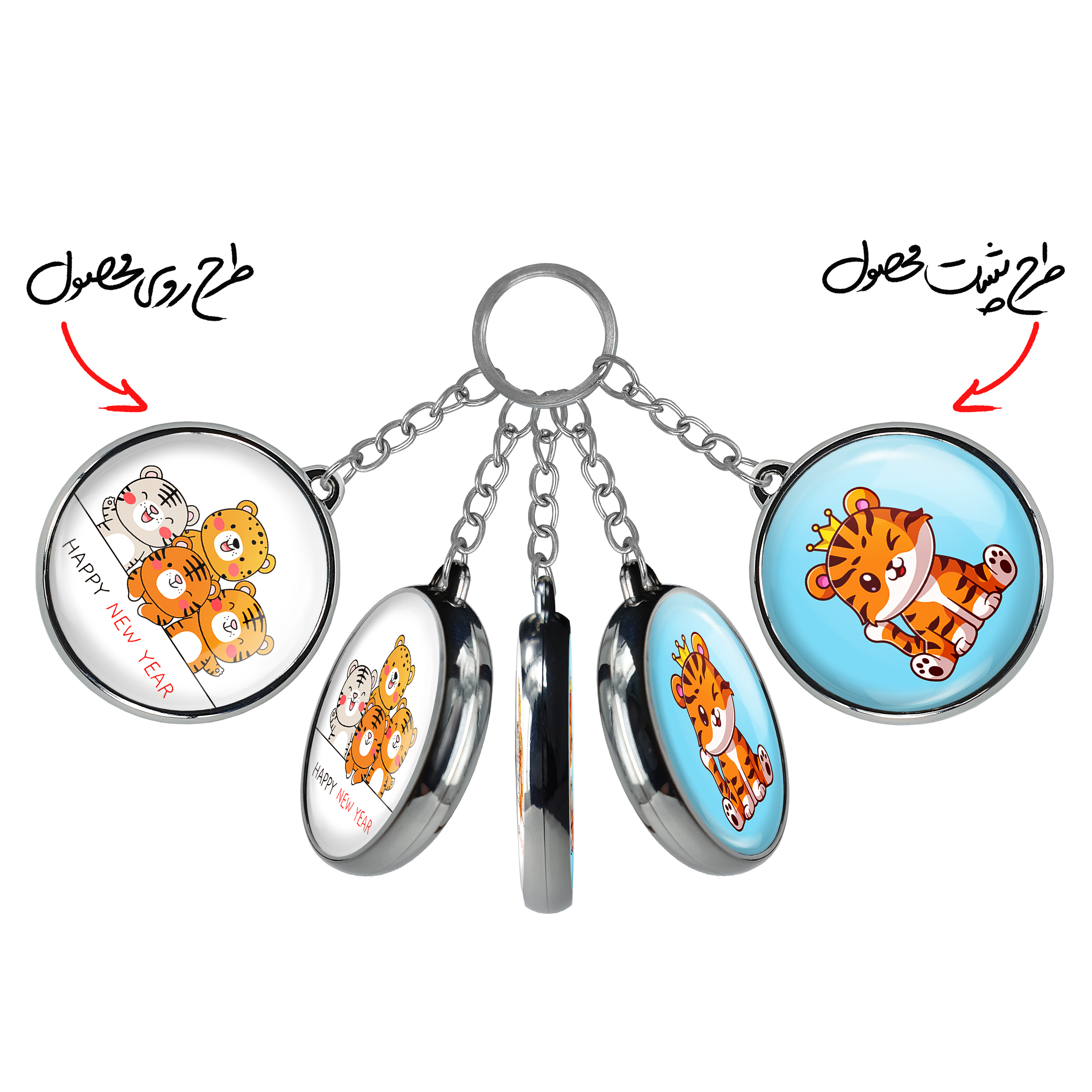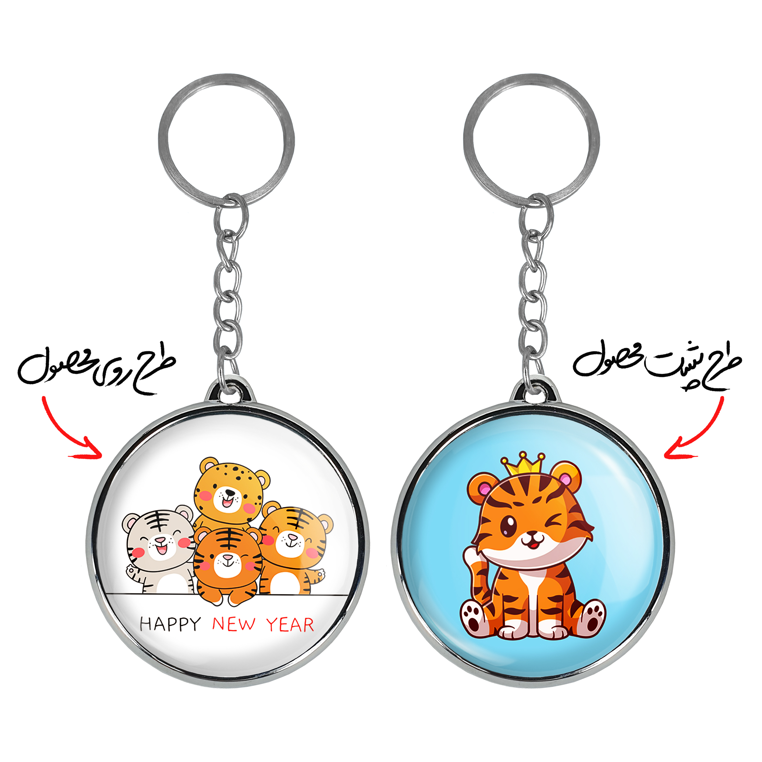 جاکلیدی دوطرفه سال ببر خندالو محصولی کاربردی و جدید است که در هر دو سمت محصول، تصویری متفاوت اما از یک موضوع چاپ شده و تفاوت اصلی آن با جاکلیدی های یک طرفه در همین است که هر دو سمت پشت و روی جاکلیدی، طرحی دیدنی و جذاب دارد.