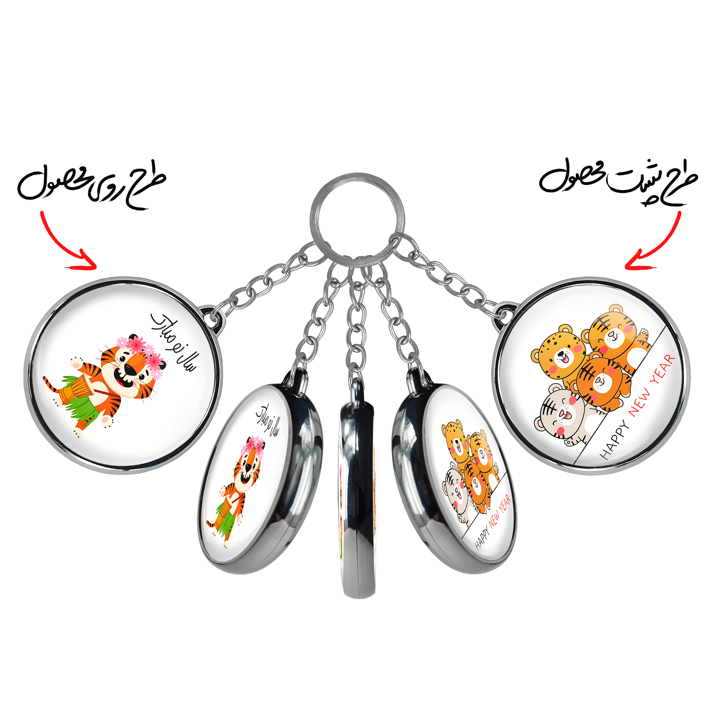 جاکلیدی دوطرفه سال ببر خندالو محصولی کاربردی و جدید است که در هر دو سمت محصول، تصویری متفاوت اما از یک موضوع چاپ شده و تفاوت اصلی آن با جاکلیدی های یک طرفه در همین است که هر دو سمت پشت و روی جاکلیدی، طرحی دیدنی و جذاب دارد.