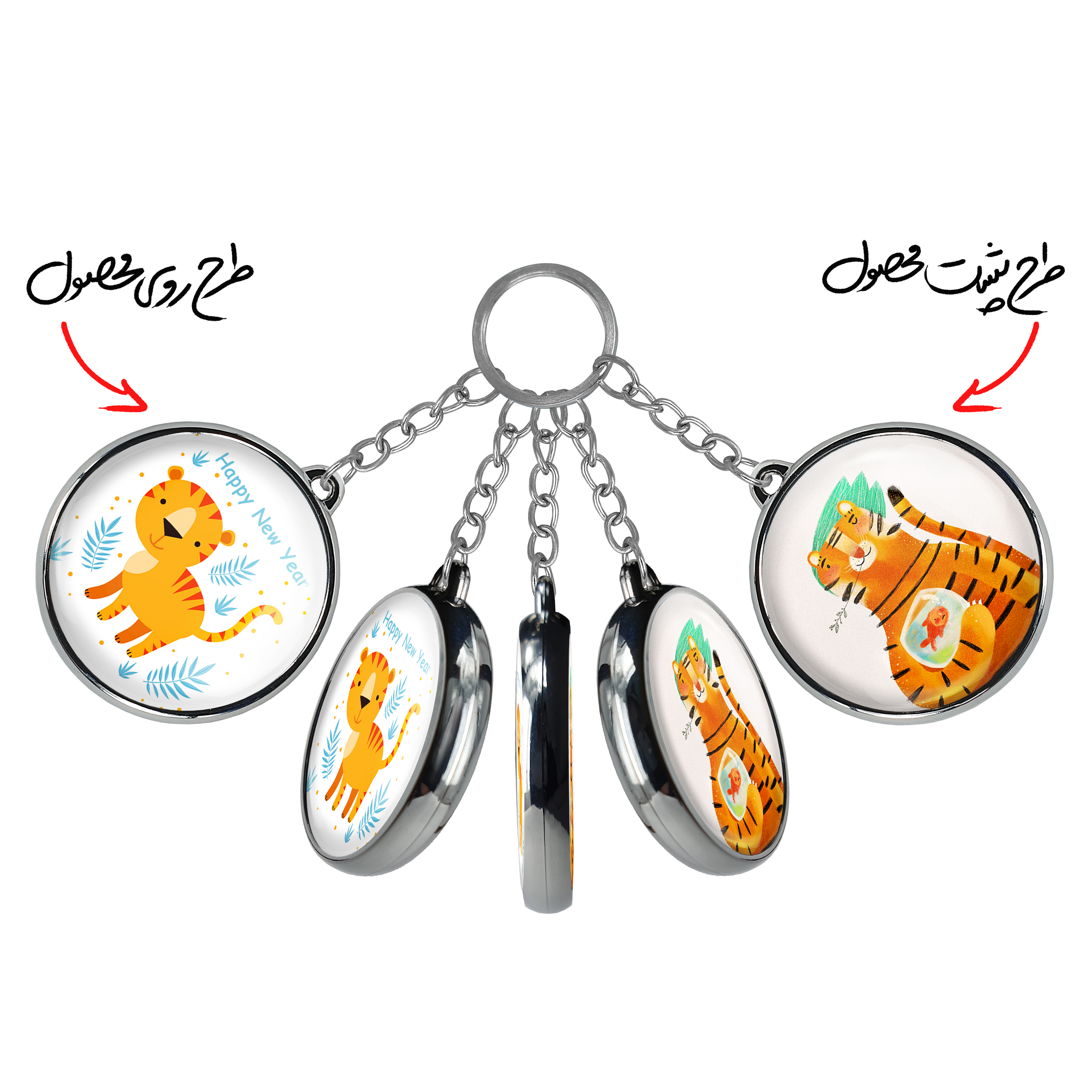 جاکلیدی دوطرفه سال ببر خندالو محصولی کاربردی و جدید است که در هر دو سمت محصول، تصویری متفاوت اما از یک موضوع چاپ شده و تفاوت اصلی آن با جاکلیدی های یک طرفه در همین است که هر دو سمت پشت و روی جاکلیدی، طرحی دیدنی و جذاب دارد.