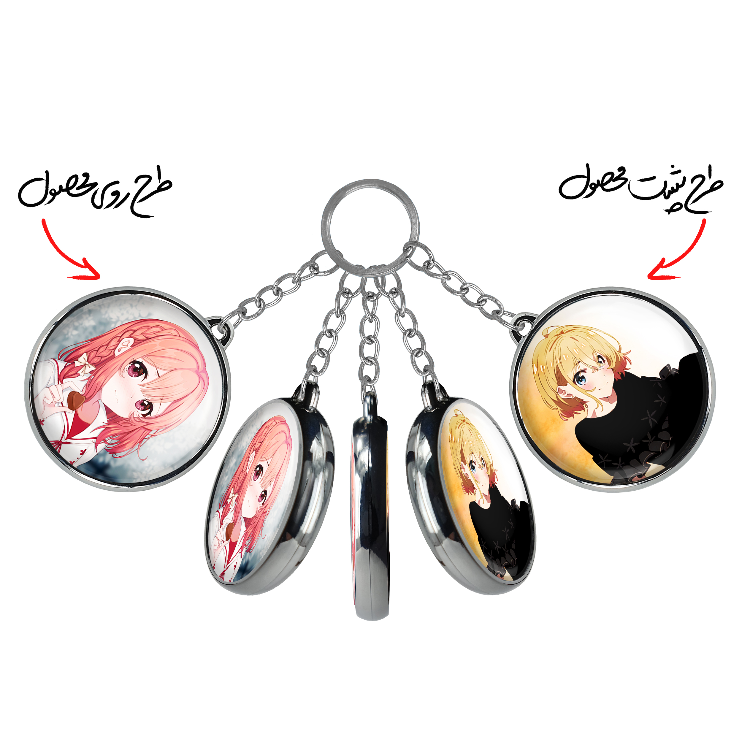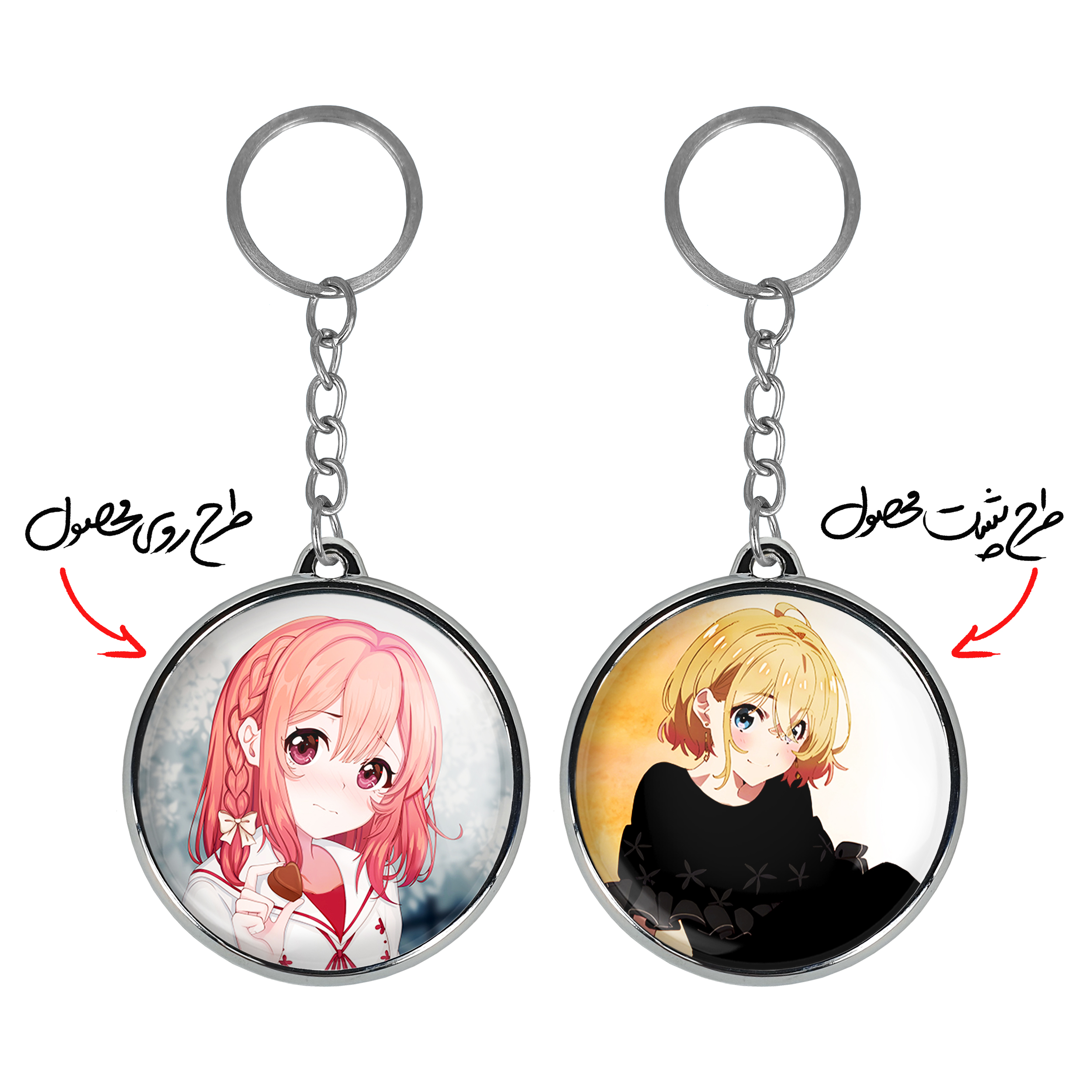 جاکلیدی دوطرفه ساکوراساوا انیمه کانوجواوکاری خندالو محصولی کاربردی و جدید است که در هر دو سمت محصول، تصویری متفاوت اما از یک موضوع چاپ شده و تفاوت اصلی آن با جاکلیدی های یک طرفه در همین است که هر دو سمت پشت و روی جاکلیدی، طرحی دیدنی و جذاب دارد.