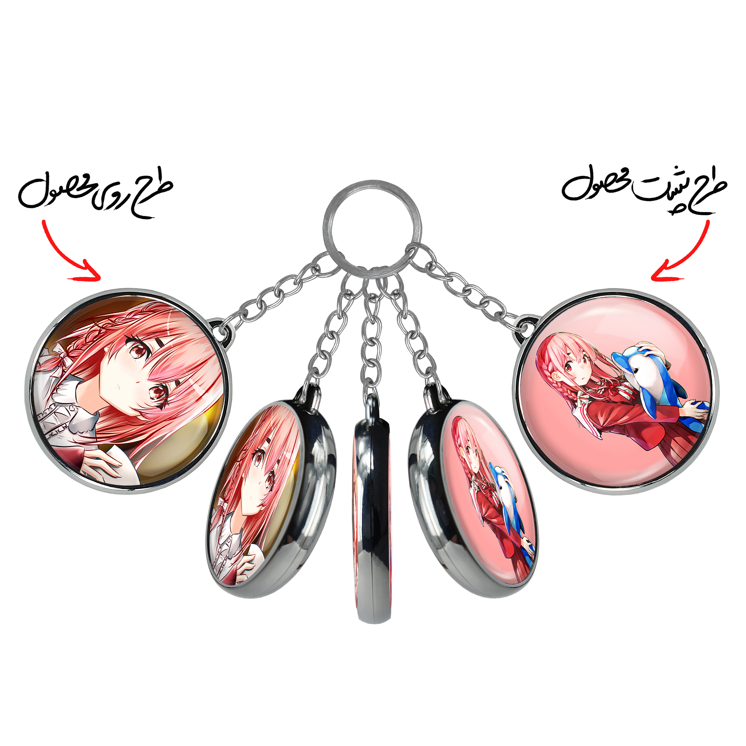 جاکلیدی دوطرفه ساکوراساوا انیمه کانوجواوکاری خندالو محصولی کاربردی و جدید است که در هر دو سمت محصول، تصویری متفاوت اما از یک موضوع چاپ شده و تفاوت اصلی آن با جاکلیدی های یک طرفه در همین است که هر دو سمت پشت و روی جاکلیدی، طرحی دیدنی و جذاب دارد.