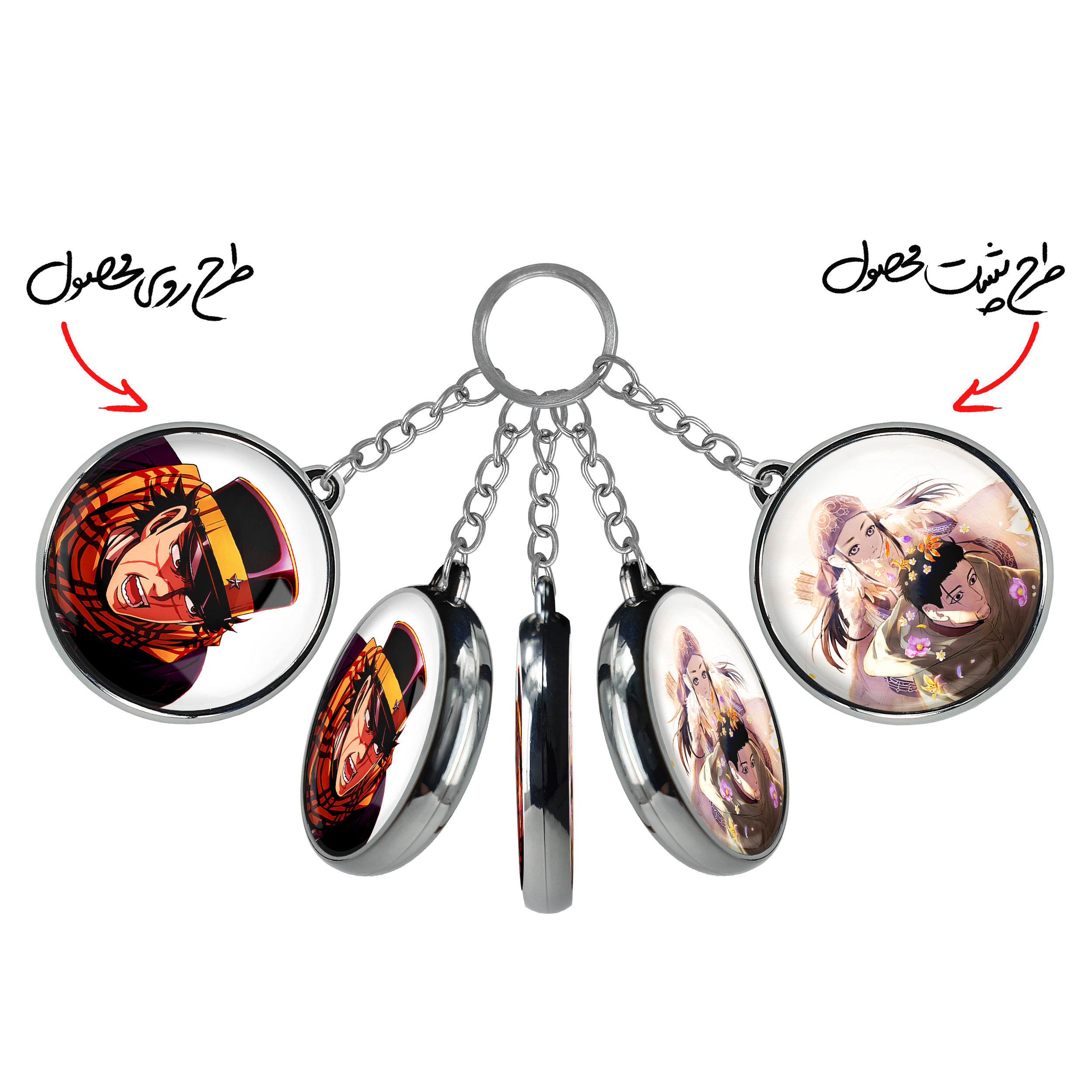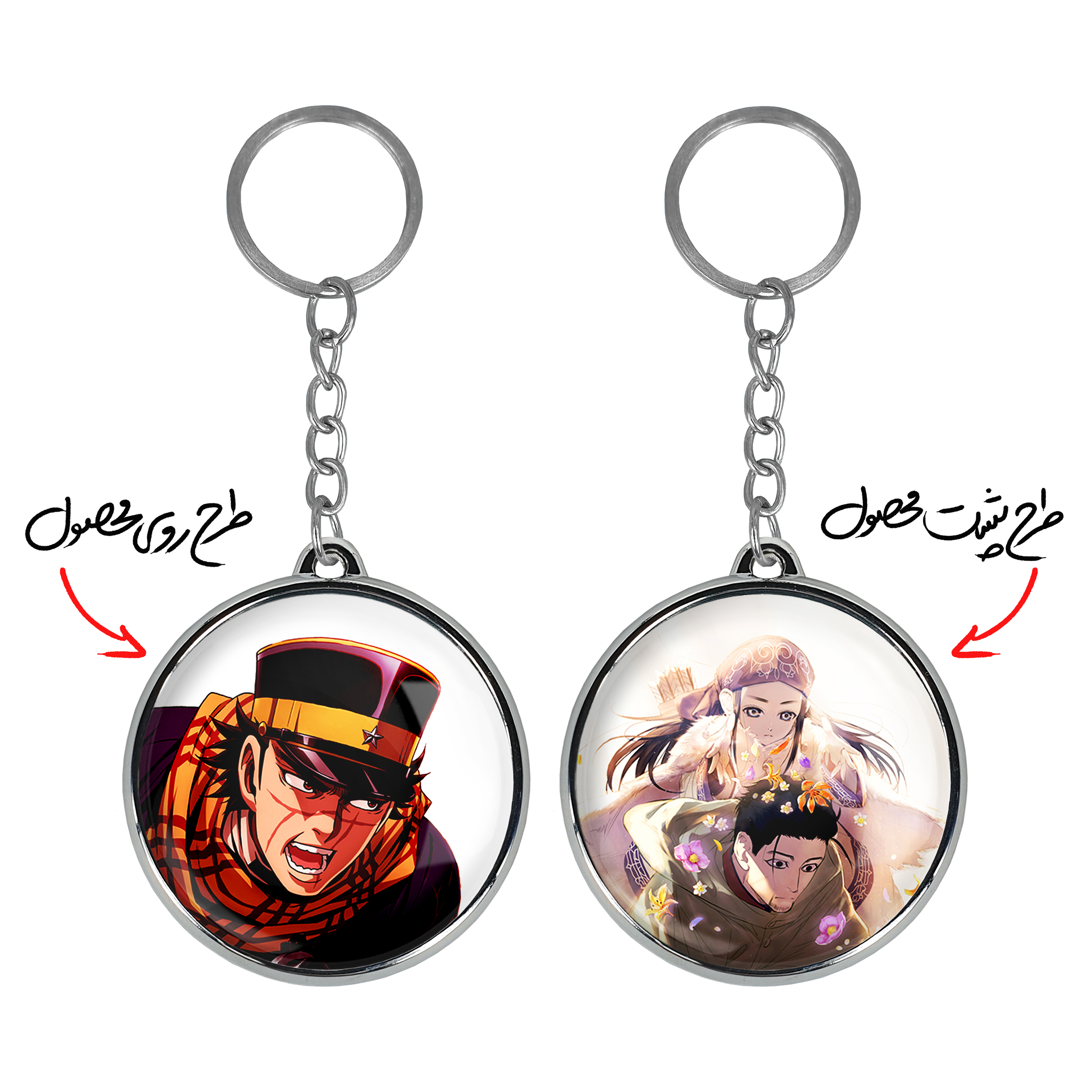 جاکلیدی دوطرفه سایچی انیمه کامویی طلایی Golden Kamuyخندالو محصولی کاربردی و جدید است که در هر دو سمت محصول، تصویری متفاوت اما از یک موضوع چاپ شده و تفاوت اصلی آن با جاکلیدی های یک طرفه در همین است که هر دو سمت پشت و روی جاکلیدی، طرحی دیدنی و جذاب دارد.