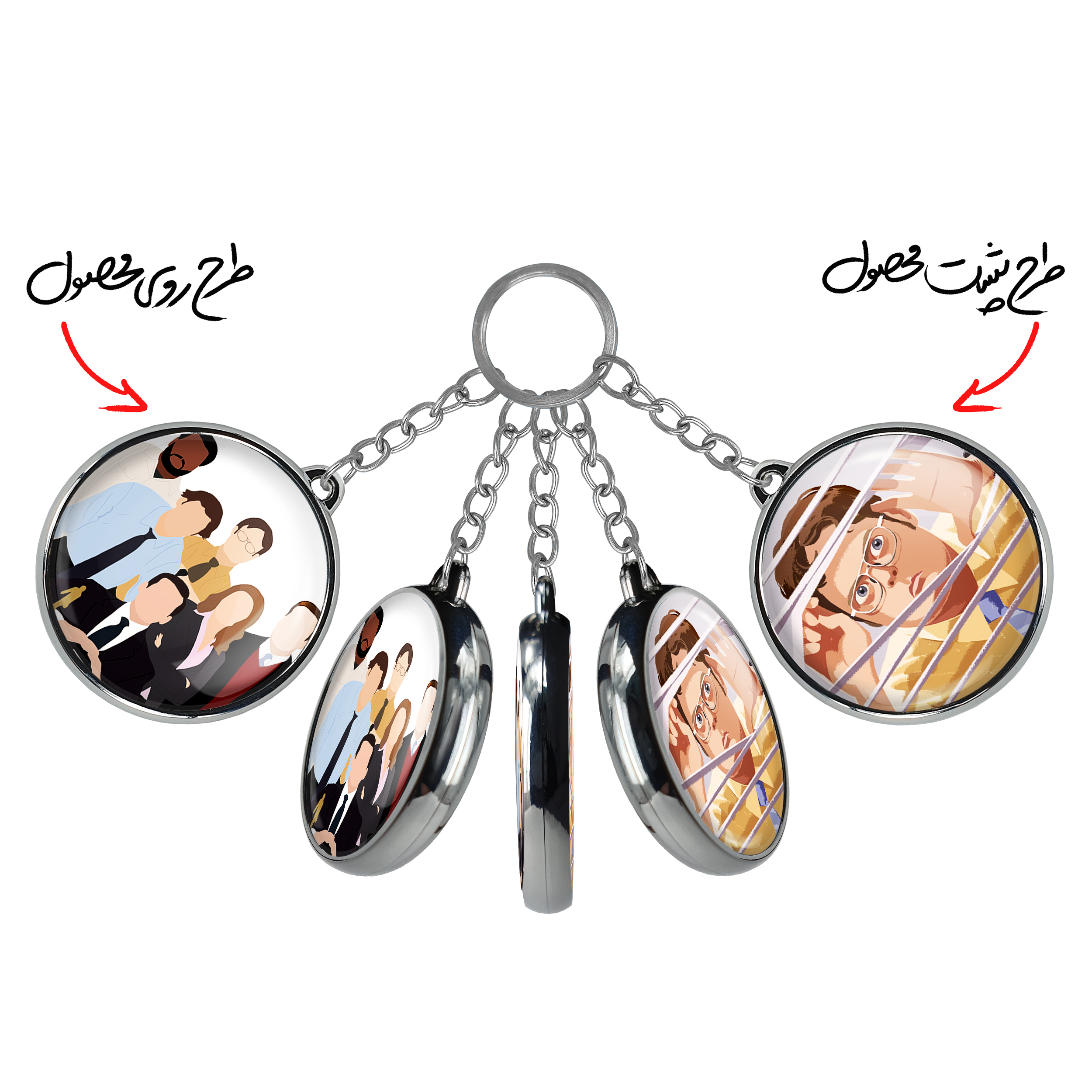 جاکلیدی دوطرفه سریال آفیس The Office خندالو محصولی کاربردی و جدید است که در هر دو سمت محصول، تصویری متفاوت اما از یک موضوع چاپ شده و تفاوت اصلی آن با جاکلیدی های یک طرفه در همین است که هر دو سمت پشت و روی جاکلیدی، طرحی دیدنی و جذاب دارد. همچنین رینگ بکار برده شده برای دور طرح ها آبکاری کروم درجه یک و رنگ ثابت است و برخلاف سایر محصولات مشابه، از رنگ های متفرقه و یا سفید استفاده نشده، که این مهم، زیبایی محصول نهایی را چند برابر کرده است. جاکلیدی های دوطرفه سریال آفیس The Office با استفاده از روکش سلفون براق ضدخش تولید شده که خاصیت ضدخش بودن آن عمر مفید استفاده از جاکلیدی ها را افزایش میدهد. چاپ جاکلیدی ها با دستگاه های استاندارد و با بهترین سطح کیفیت صورت گرفته و طرح با شفافیتی مثال زدنی و با سلفون چسبی تولید شده است که باعث شده محصول نهایی بدون شکست نور دیده شود. همچنین بسته بندی جذاب و مینیمال جاکلیدی دوطرفه سریال آفیس The Office ، آنها را محصولی مناسب هدیه کرده است. زنجیر و حلقه بکار برده شده در جاکلیدی خندالو از نوع حلقه ضخیم و محکم بوده و حین استفاده آسیب نمی بیند.