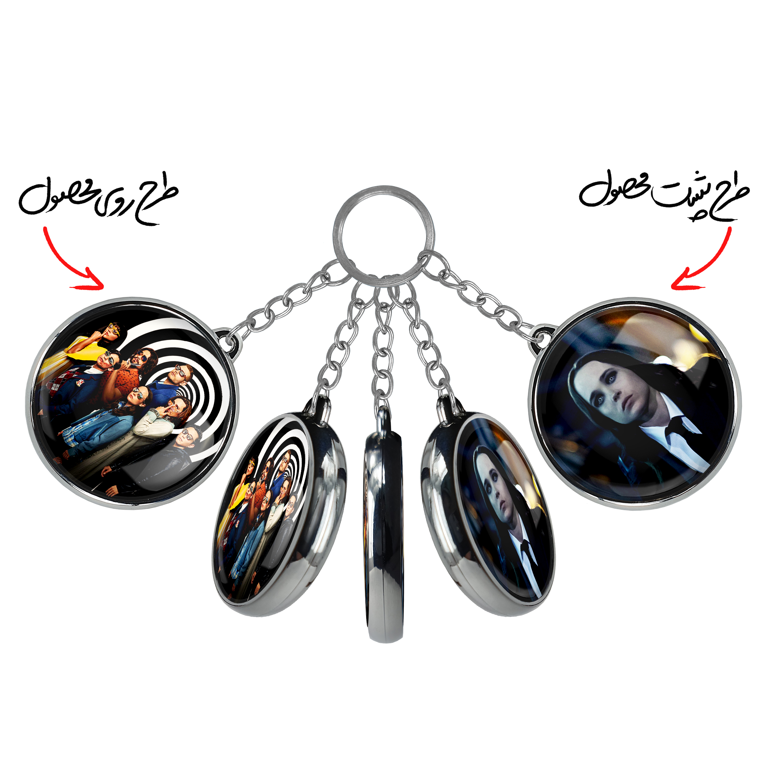جاکلیدی دوطرفه سریال آکادمی آمبرلا The Umberella Academyخندالو محصولی کاربردی و جدید است که در هر دو سمت محصول، تصویری متفاوت اما از یک موضوع چاپ شده و تفاوت اصلی آن با جاکلیدی های یک طرفه در همین است که هر دو سمت پشت و روی جاکلیدی، طرحی دیدنی و جذاب دارد.