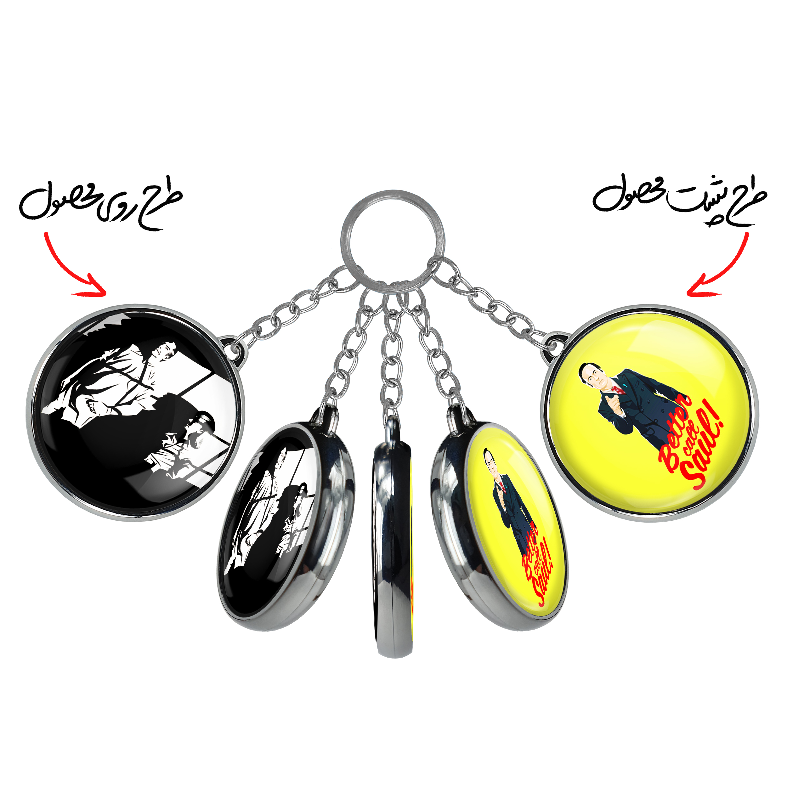 جاکلیدی دوطرفه سریال بهتره با سال تماس بگیری Better Call Saulخندالو محصولی کاربردی و جدید است که در هر دو سمت محصول، تصویری متفاوت اما از یک موضوع چاپ شده و تفاوت اصلی آن با جاکلیدی های یک طرفه در همین است که هر دو سمت پشت و روی جاکلیدی، طرحی دیدنی و جذاب دارد.