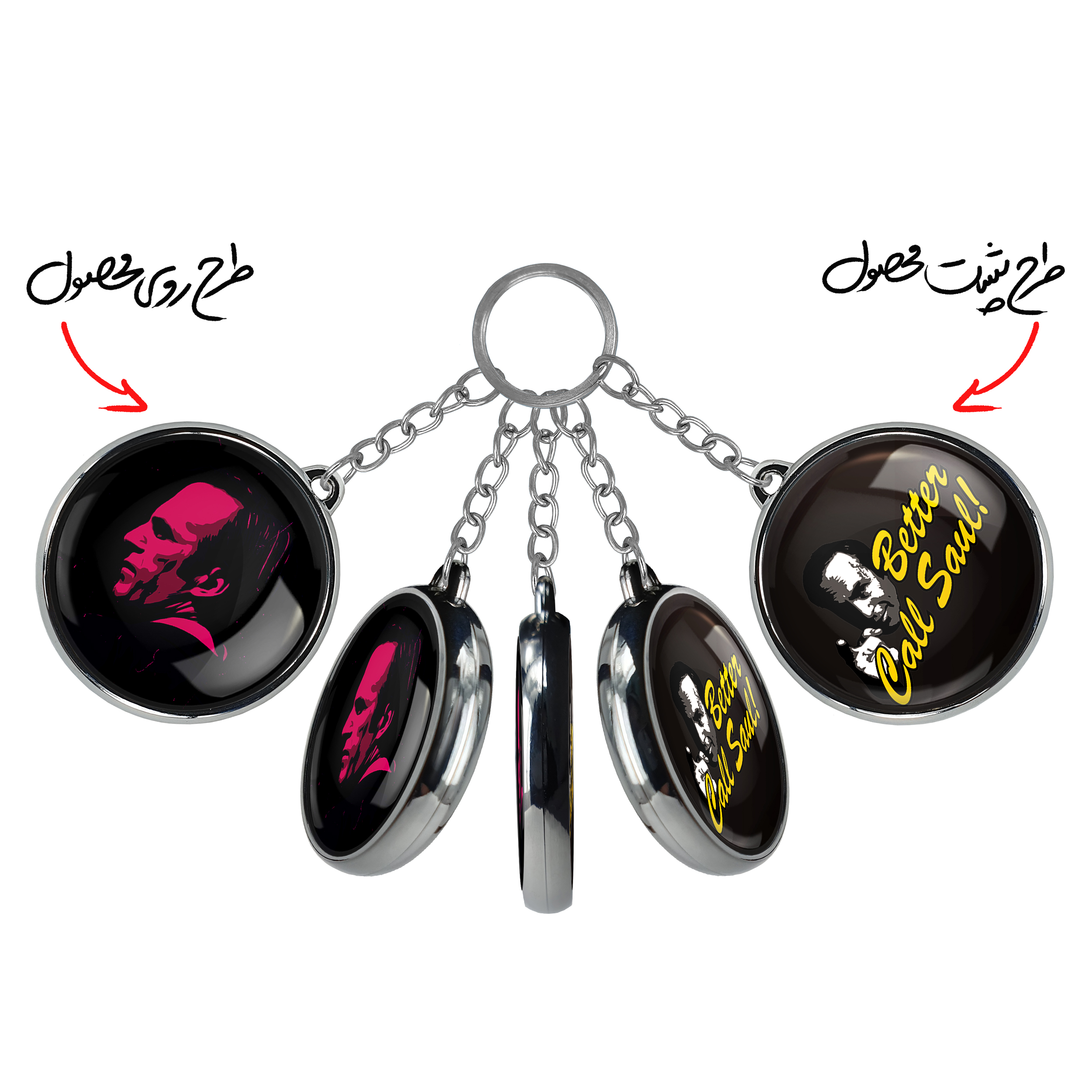 جاکلیدی دوطرفه سریال بهتره با سال تماس بگیری Better Call Saulخندالو محصولی کاربردی و جدید است که در هر دو سمت محصول، تصویری متفاوت اما از یک موضوع چاپ شده و تفاوت اصلی آن با جاکلیدی های یک طرفه در همین است که هر دو سمت پشت و روی جاکلیدی، طرحی دیدنی و جذاب دارد.