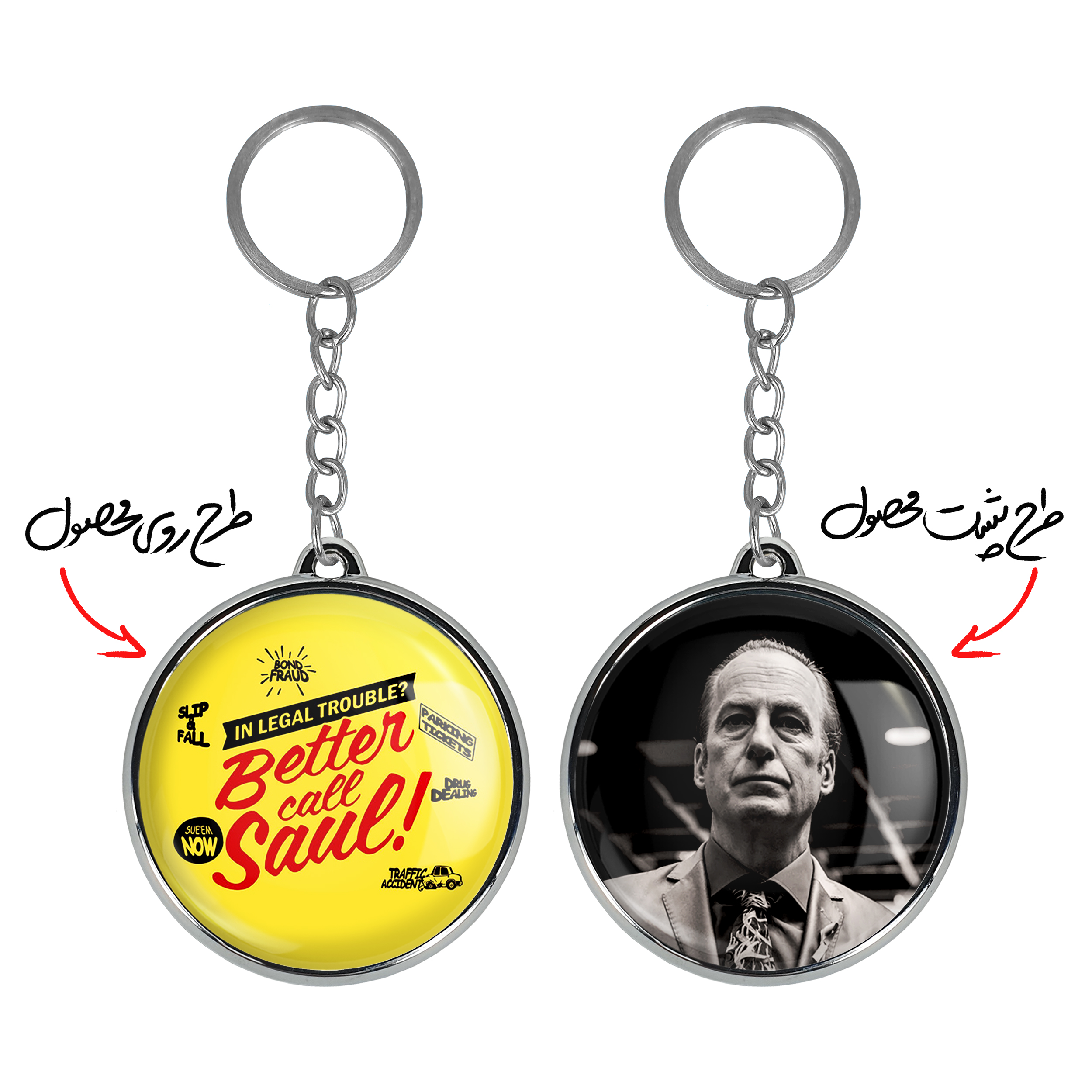جاکلیدی دوطرفه سریال بهتره با سال تماس بگیری Better Call Saulخندالو محصولی کاربردی و جدید است که در هر دو سمت محصول، تصویری متفاوت اما از یک موضوع چاپ شده و تفاوت اصلی آن با جاکلیدی های یک طرفه در همین است که هر دو سمت پشت و روی جاکلیدی، طرحی دیدنی و جذاب دارد.