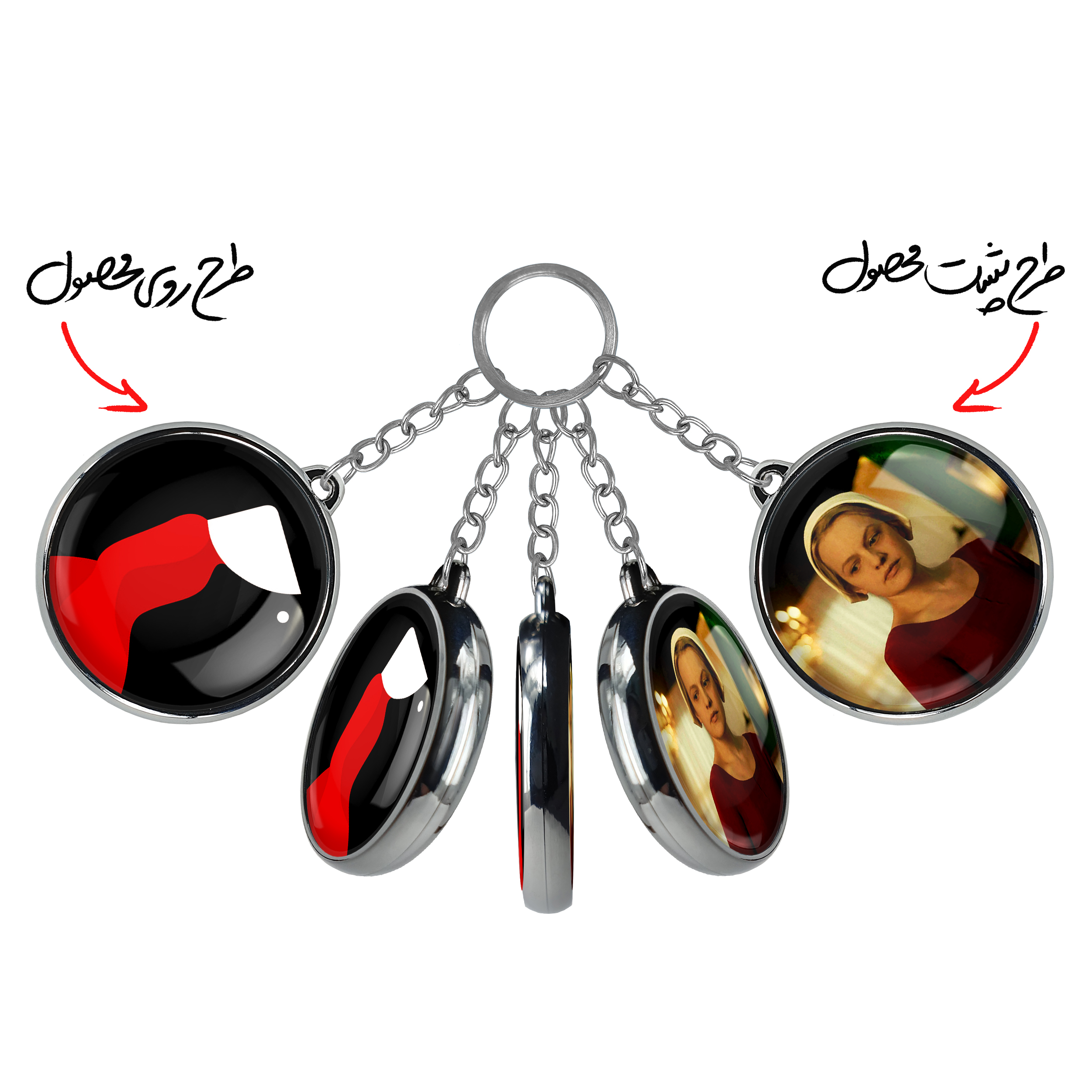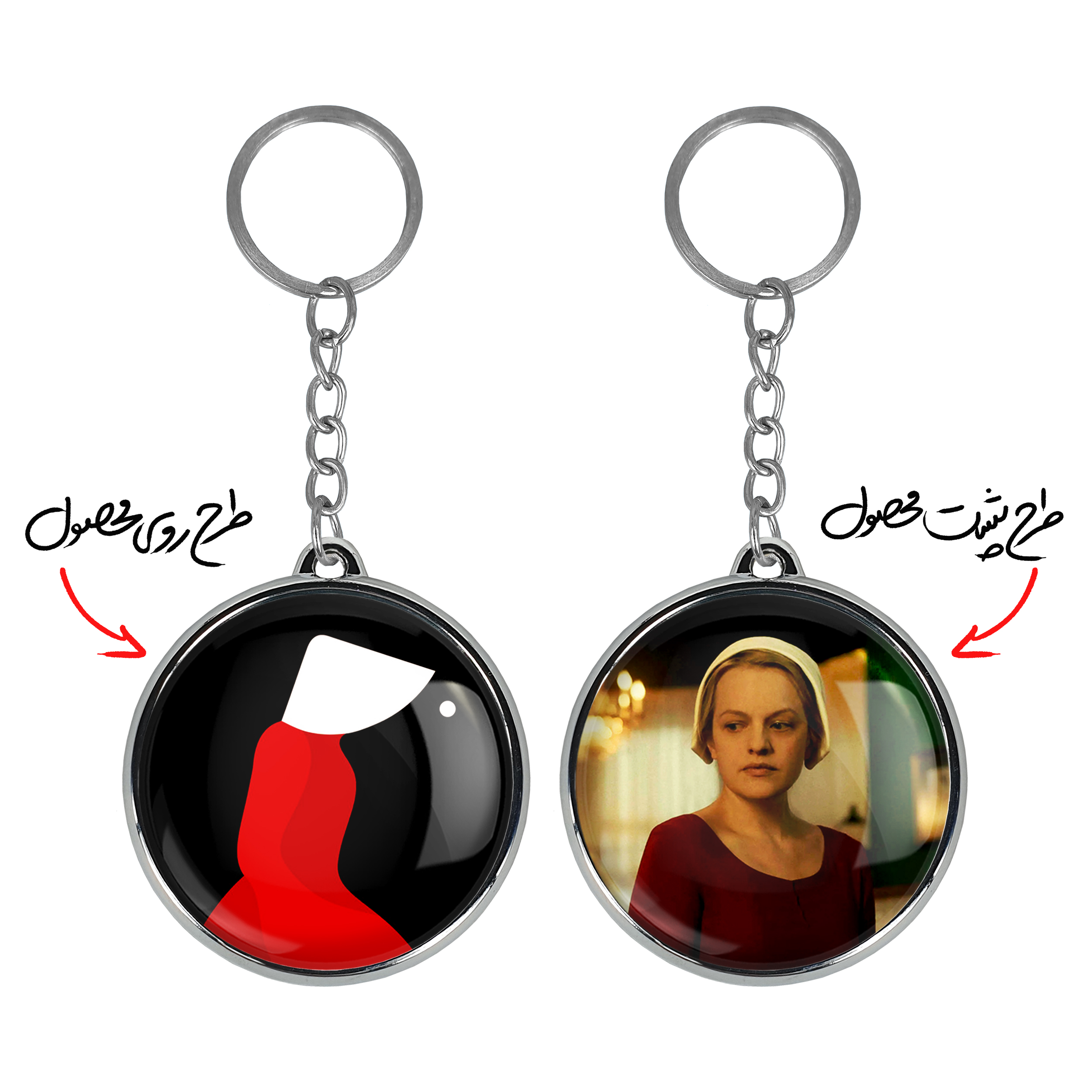جاکلیدی دوطرفه سریال سرگذشت یک ندیمه The Handmaid’s Taleخندالو محصولی کاربردی و جدید است که در هر دو سمت محصول، تصویری متفاوت اما از یک موضوع چاپ شده و تفاوت اصلی آن با جاکلیدی های یک طرفه در همین است که هر دو سمت پشت و روی جاکلیدی، طرحی دیدنی و جذاب دارد.