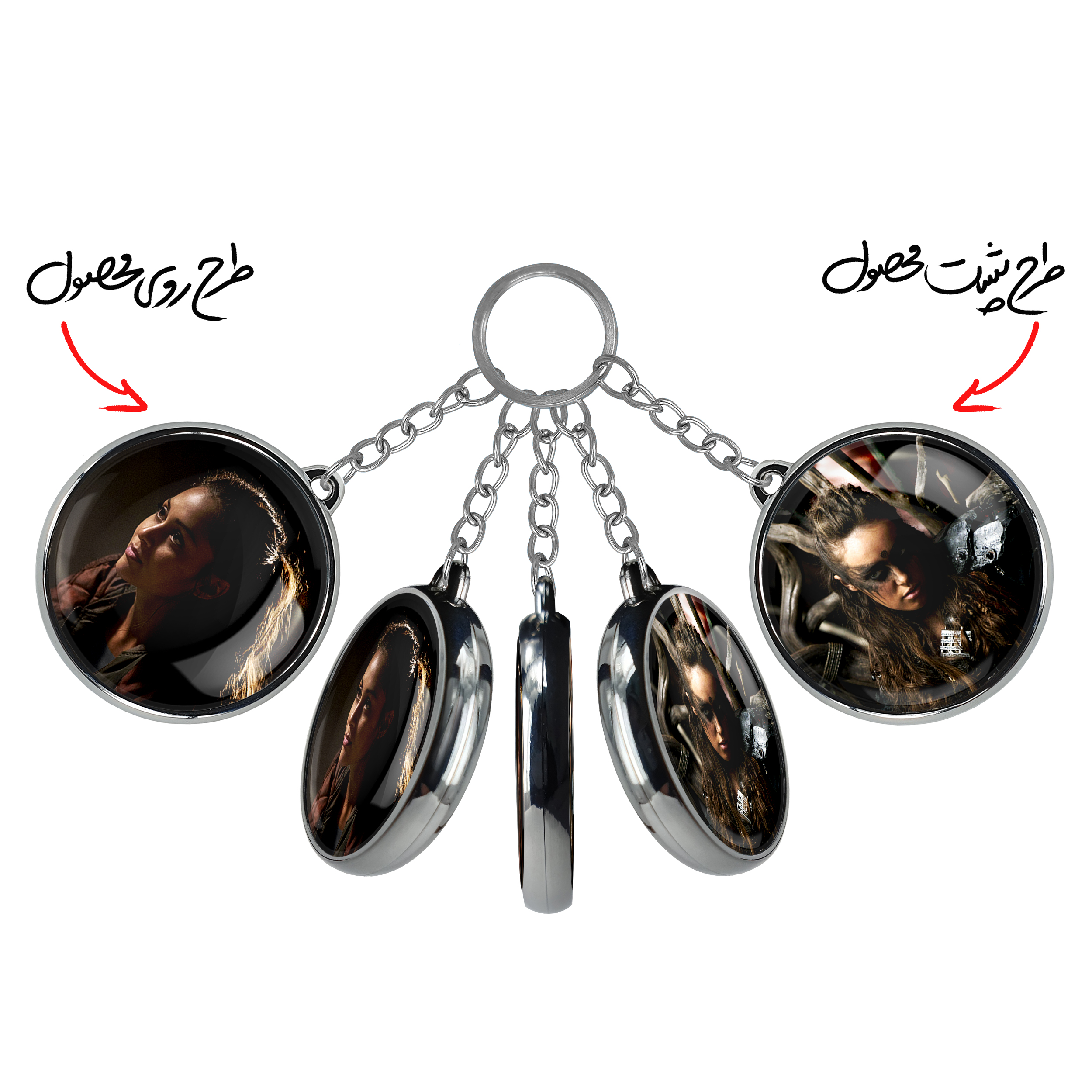 جاکلیدی دوطرفه سریال صد نفر The 100خندالو محصولی کاربردی و جدید است که در هر دو سمت محصول، تصویری متفاوت اما از یک موضوع چاپ شده و تفاوت اصلی آن با جاکلیدی های یک طرفه در همین است که هر دو سمت پشت و روی جاکلیدی، طرحی دیدنی و جذاب دارد. همچنین رینگ بکار برده شده برای دور طرح ها آبکاری کروم درجه یک و رنگ ثابت است و برخلاف سایر محصولات مشابه، از رنگ های متفرقه و یا سفید استفاده نشده، که این مهم، زیبایی محصول نهایی را چند برابر کرده است. جاکلیدی های دوطرفه سریال صد نفر The 100با استفاده از روکش سلفون براق ضدخش تولید شده که خاصیت ضدخش بودن آن عمر مفید استفاده از جاکلیدی ها را افزایش میدهد. چاپ جاکلیدی ها با دستگاه های استاندارد و با بهترین سطح کیفیت صورت گرفته و طرح با شفافیتی مثال زدنی و با سلفون چسبی تولید شده است که باعث شده محصول نهایی بدون شکست نور دیده شود. همچنین بسته بندی جذاب و مینیمال جاکلیدی دوطرفه سریال صد نفر The 100، آنها را محصولی مناسب هدیه کرده است. زنجیر و حلقه بکار برده شده در جاکلیدی خندالو از نوع حلقه ضخیم و محکم بوده و حین استفاده آسیب نمی بیند.