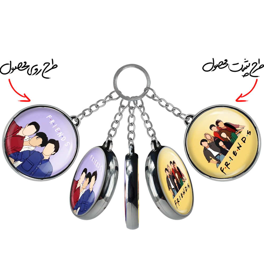 جاکلیدی دوطرفه سریال فرندز Friends خندالو محصولی کاربردی و جدید است که در هر دو سمت محصول، تصویری متفاوت اما از یک موضوع چاپ شده و تفاوت اصلی آن با جاکلیدی های یک طرفه در همین است که هر دو سمت پشت و روی جاکلیدی، طرحی دیدنی و جذاب دارد. همچنین رینگ بکار برده شده برای دور طرح ها آبکاری کروم درجه یک و رنگ ثابت است و برخلاف سایر محصولات مشابه، از رنگ های متفرقه و یا سفید استفاده نشده، که این مهم، زیبایی محصول نهایی را چند برابر کرده است. جاکلیدی های دوطرفه سریال فرندز Friends با استفاده از روکش سلفون براق ضدخش تولید شده که خاصیت ضدخش بودن آن عمر مفید استفاده از جاکلیدی ها را افزایش میدهد. چاپ جاکلیدی ها با دستگاه های استاندارد و با بهترین سطح کیفیت صورت گرفته و طرح با شفافیتی مثال زدنی و با سلفون چسبی تولید شده است که باعث شده محصول نهایی بدون شکست نور دیده شود. همچنین بسته بندی جذاب و مینیمال جاکلیدی دوطرفه سریال فرندز Friends ، آنها را محصولی مناسب هدیه کرده است. زنجیر و حلقه بکار برده شده در جاکلیدی خندالو از نوع حلقه ضخیم و محکم بوده و حین استفاده آسیب نمی بیند.